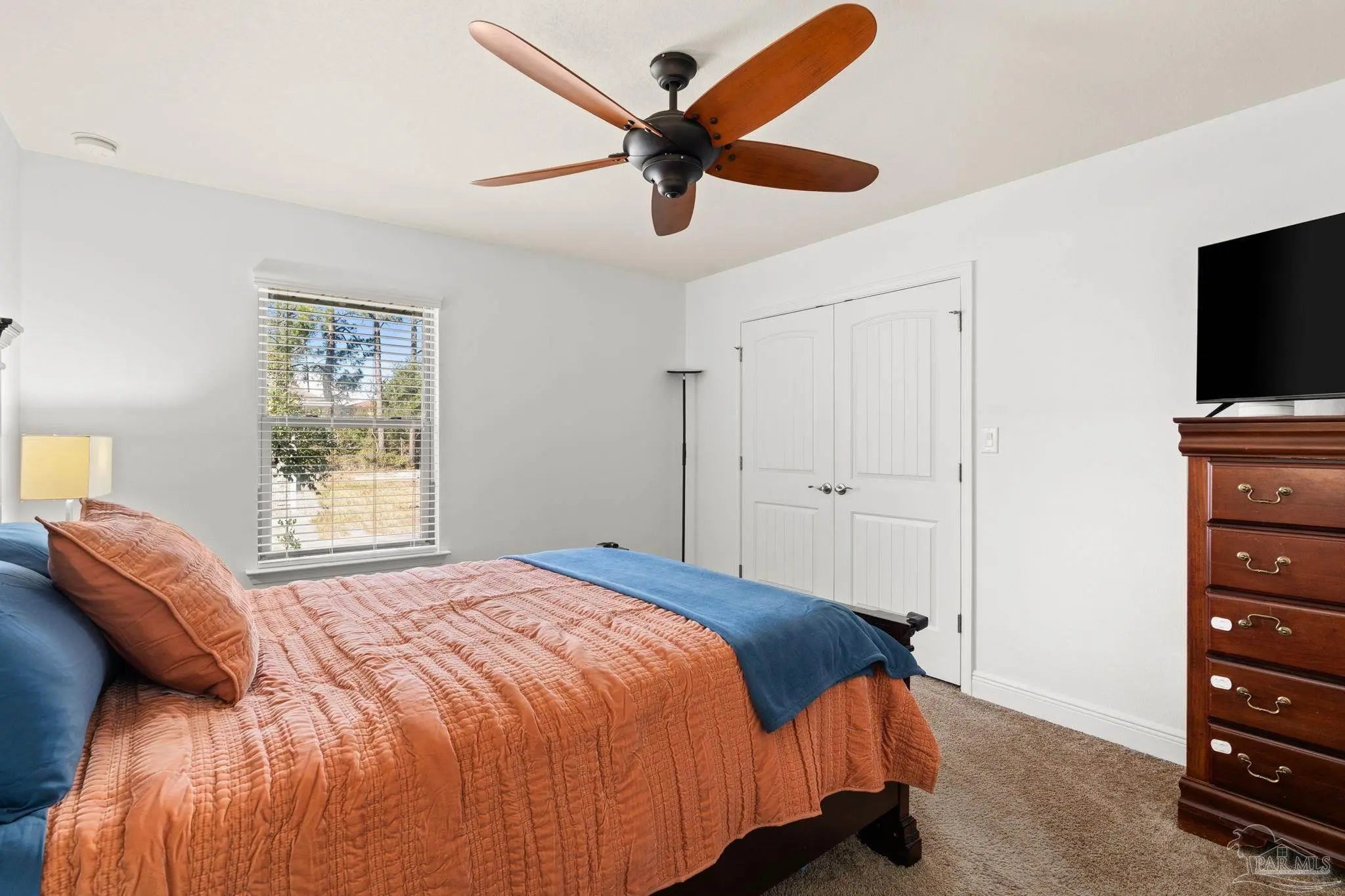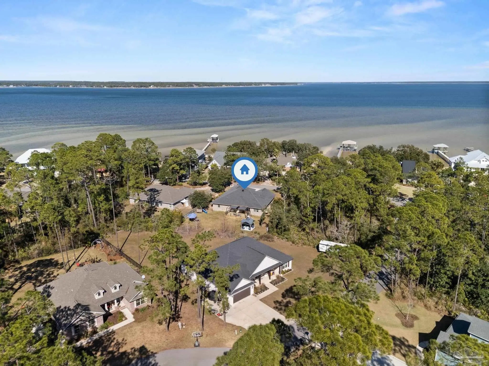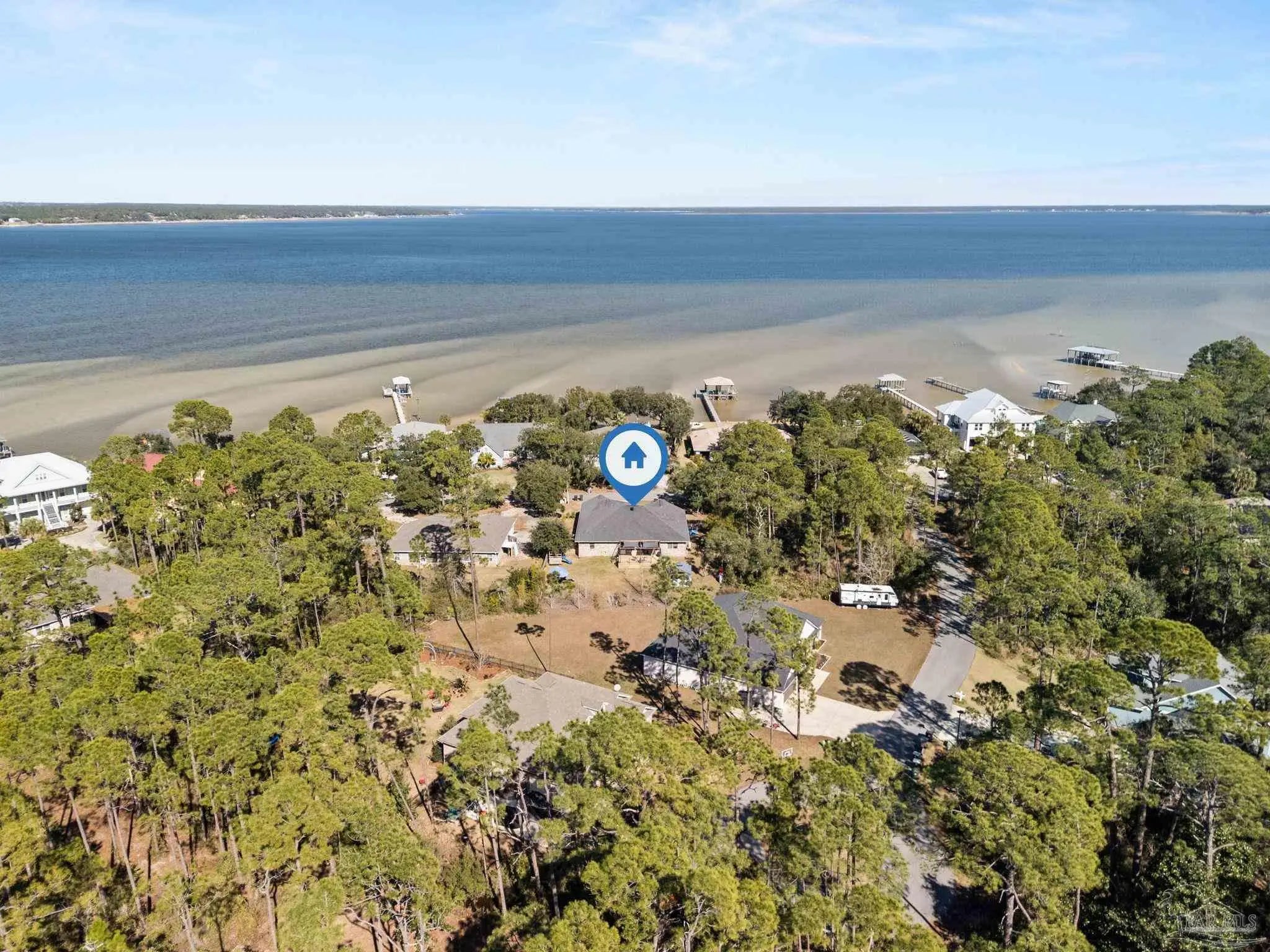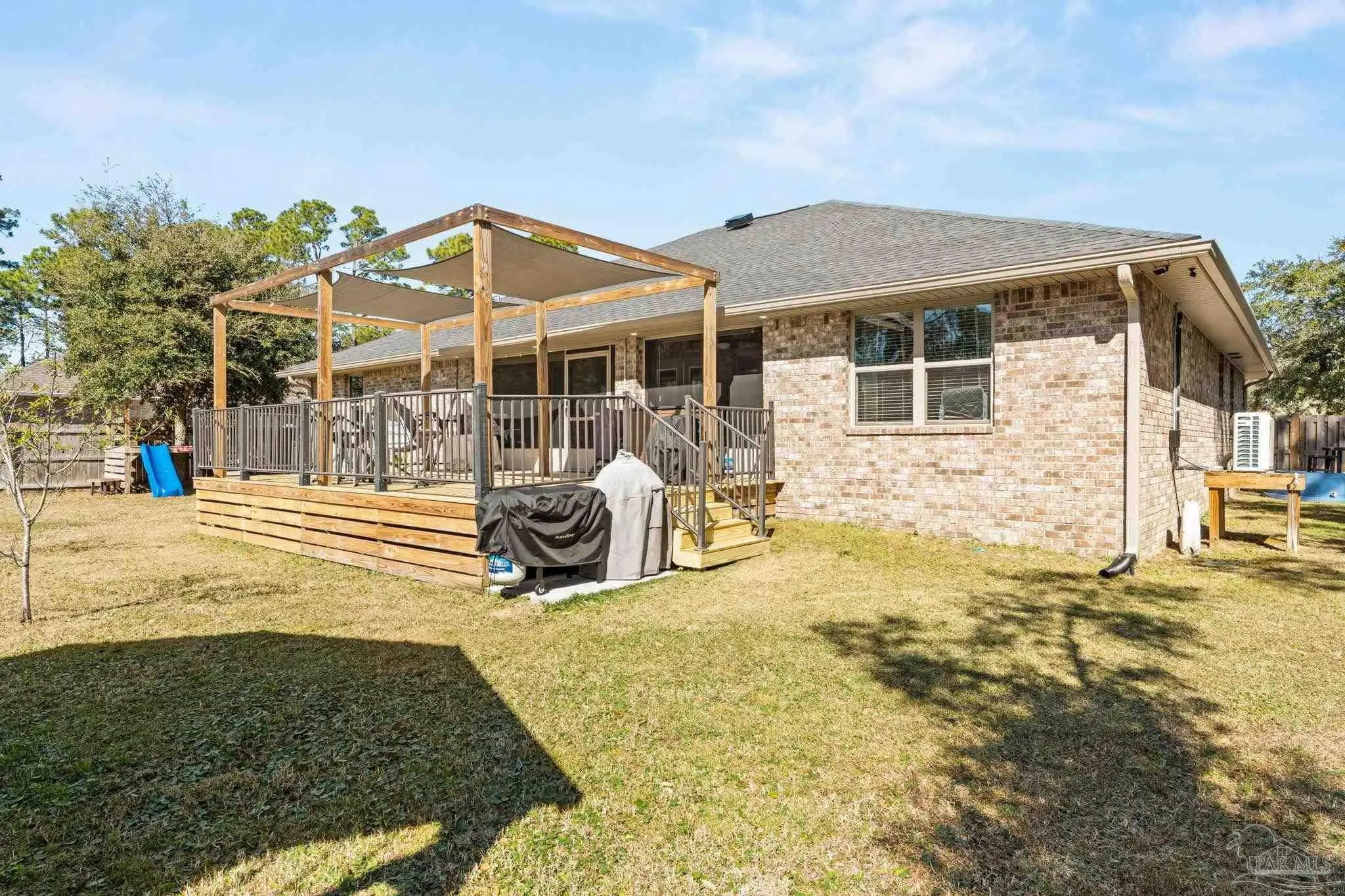 Discover this beautifully maintained all-brick residence situated within the subdivision of Innerarity Island. This inviting home offers a perfect blend of comfort, functionality, and charm, designed for relaxed living and effortless entertaining. Step inside to an open-concept layout featuring a spacious great room and dining area combination, enhanced by a large window that floods the space with natural light. The kitchen is designed with a breakfast bar, newer appliances and a cozy breakfast nook, creating the perfect flow for gatherings or casual mornings. This home boasts four bedrooms and three full bathrooms, plus a hidden bonus/media room cleverly tucked behind a custom built-in bookshelf — an ideal space for movie nights or a quiet retreat. The split floorplan ensures privacy, with the primary suite situated on the east side of the home. This serene retreat features dual closets and a bathroom complete with a double vanity, floor-to-ceiling tiled shower, private water closet, and a large linen closet. On the opposite side of the home, you’ll find two guest bedrooms and a fully remodeled bathroom showcasing a new tub with tiled surround, updated mirrors, and modern lighting. The fourth bedroom is located on the opposite side of the kitchen and offers its own ensuite bathroom, making it perfect for guests, multi-generational living, or a private office. The home also offers a three-car garage providing ample storage and parking- enhanced with a 50 amp plug for an RV and a 30 amp drop for an electric vehicle charger. The property is partially fenced along the front, the yard is equipped with transfer switch for a generator, zoned irrigation, and landscaped accented with fruit trees and hummingbird friendly plants. A charming gazebo provides the perfect spot to unwind by the fire, while the green space behind the property offers additional fruit trees planted and an easy path to your welcoming neighbor.