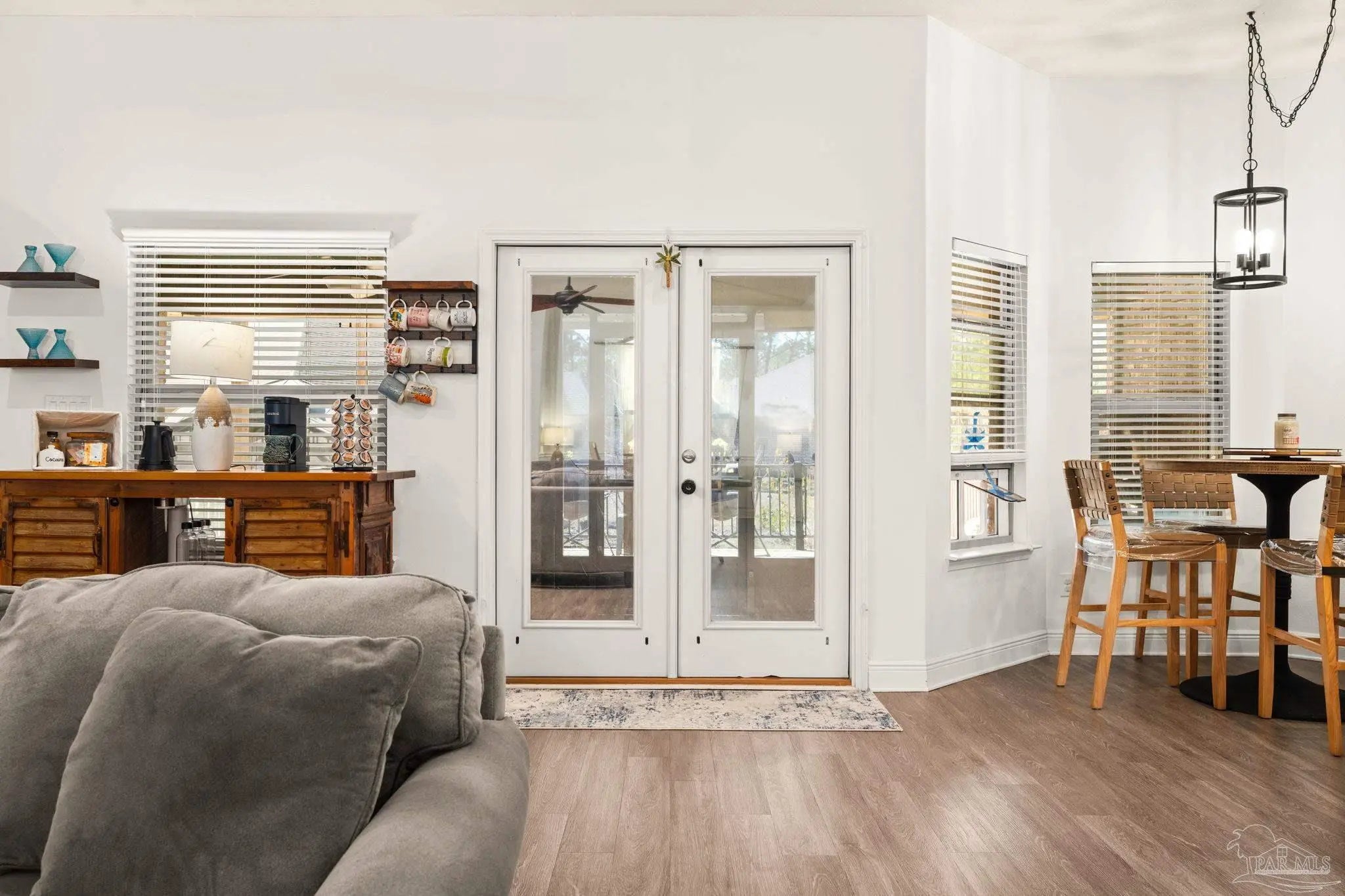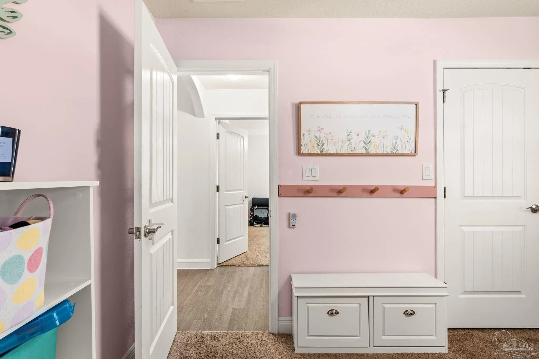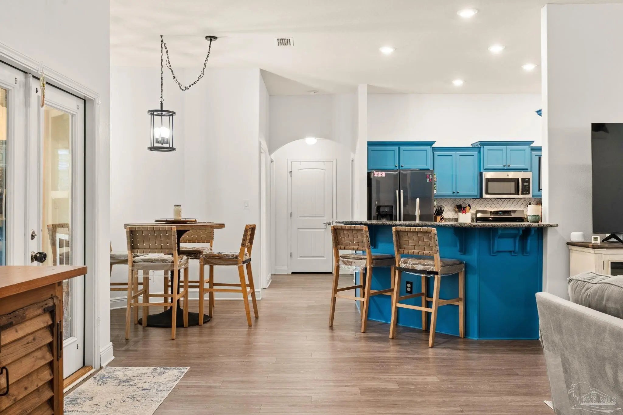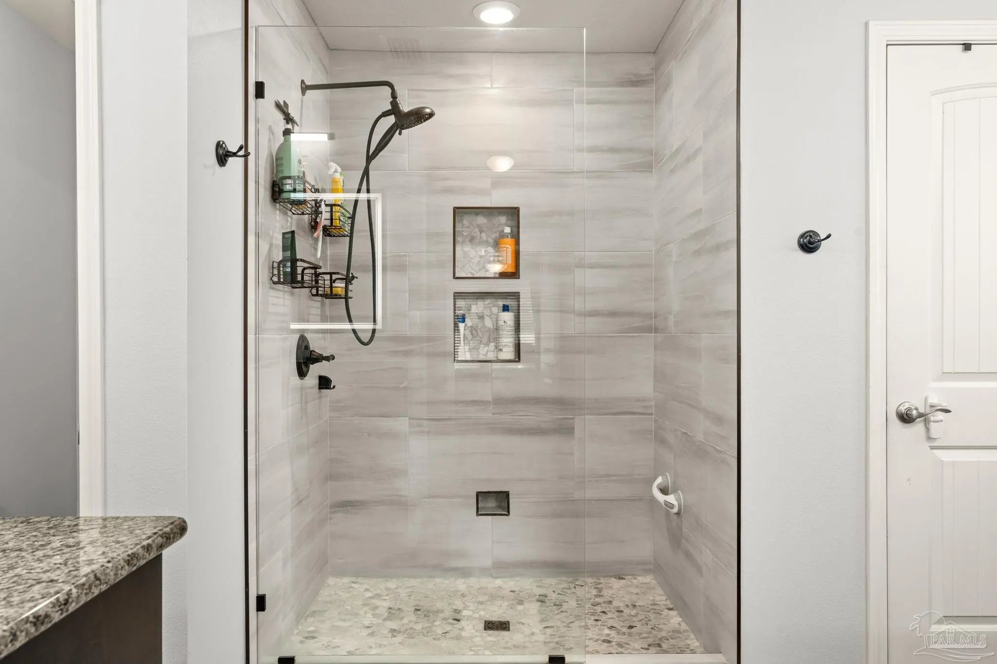 Discover this beautifully maintained all-brick residence situated within the subdivision of Innerarity Island. This inviting home offers a perfect blend of comfort, functionality, and charm, designed for relaxed living and effortless entertaining. Step inside to an open-concept layout featuring a spacious great room and dining area combination, enhanced by a large window that floods the space with natural light. The kitchen is designed with a breakfast bar, newer appliances and a cozy breakfast nook, creating the perfect flow for gatherings or casual mornings. This home boasts four bedrooms and three full bathrooms, plus a hidden bonus/media room cleverly tucked behind a custom built-in bookshelf — an ideal space for movie nights or a quiet retreat. The split floorplan ensures privacy, with the primary suite situated on the east side of the home. This serene retreat features dual closets and a bathroom complete with a double vanity, floor-to-ceiling tiled shower, private water closet, and a large linen closet. On the opposite side of the home, you’ll find two guest bedrooms and a fully remodeled bathroom showcasing a new tub with tiled surround, updated mirrors, and modern lighting. The fourth bedroom is located on the opposite side of the kitchen and offers its own ensuite bathroom, making it perfect for guests, multi-generational living, or a private office. The home also offers a three-car garage providing ample storage and parking- enhanced with a 50 amp plug for an RV and a 30 amp drop for an electric vehicle charger. The property is partially fenced along the front, the yard is equipped with transfer switch for a generator, zoned irrigation, and landscaped accented with fruit trees and hummingbird friendly plants. A charming gazebo provides the perfect spot to unwind by the fire, while the green space behind the property offers additional fruit trees planted and an easy path to your welcoming neighbor.