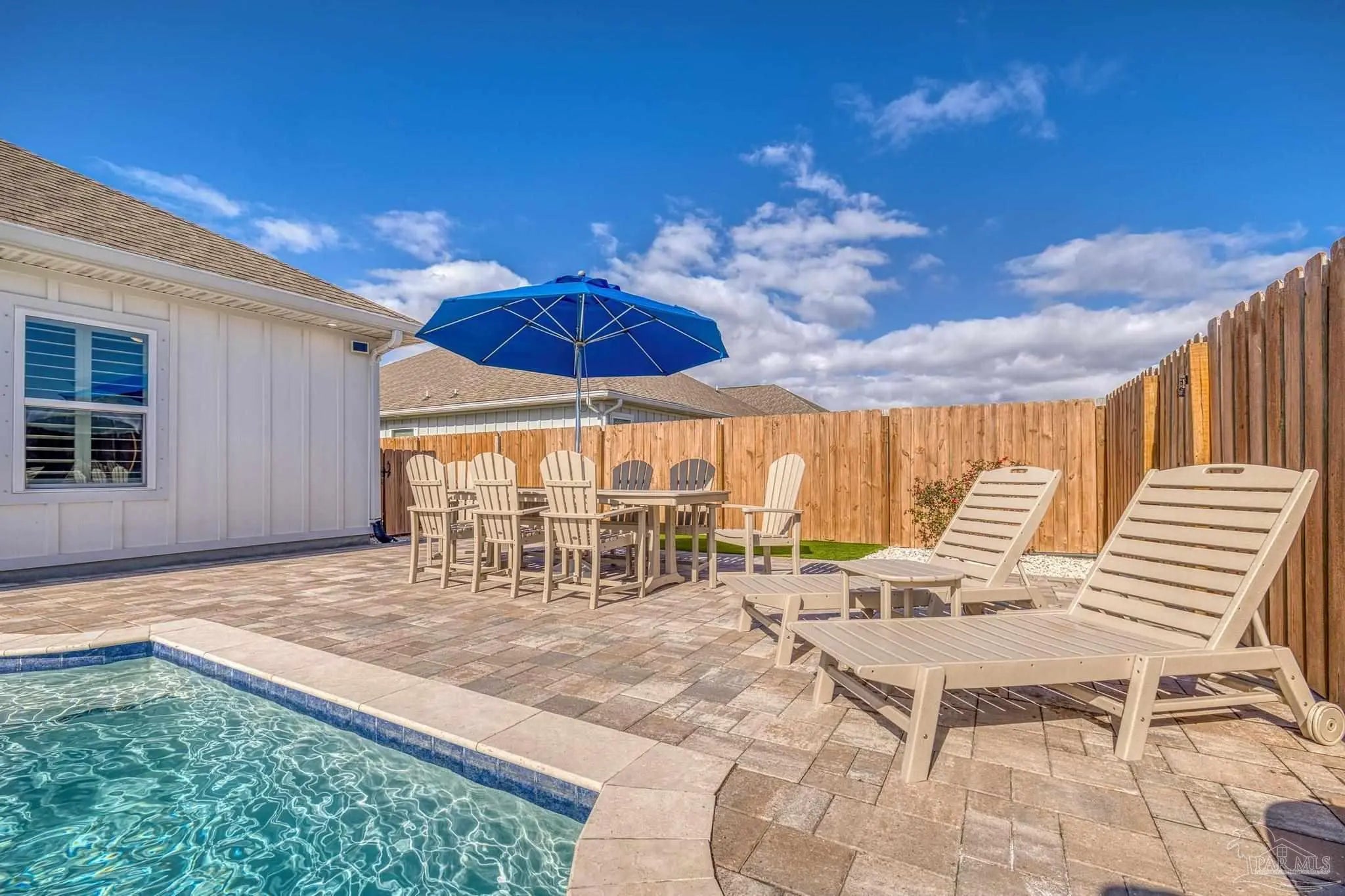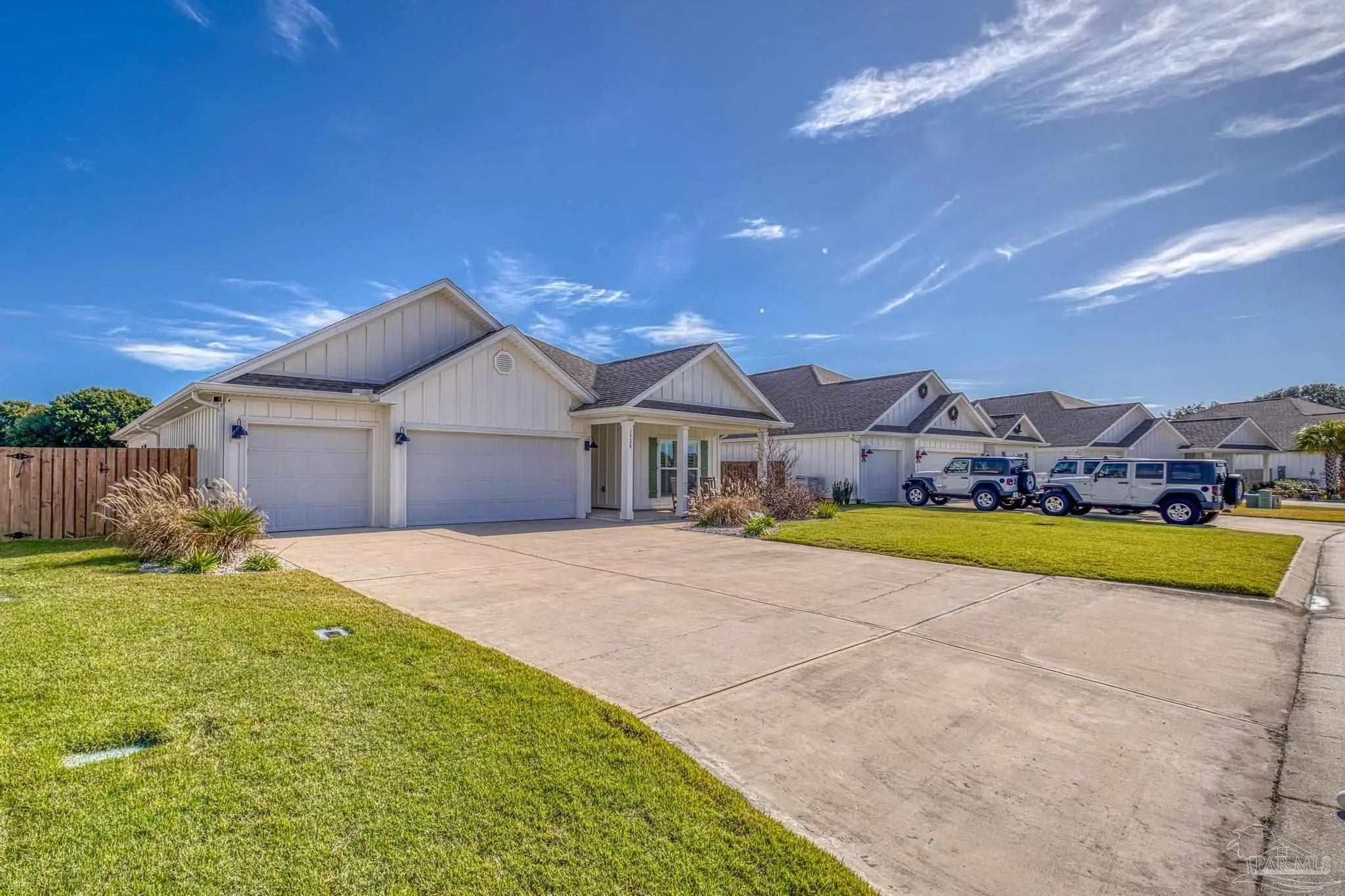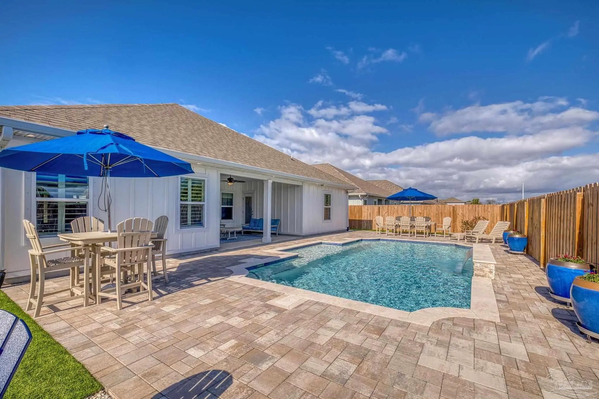 Waiting for a POOL HOME in the Tiger Point Area of Gulf Breeze? Wait no more! Discover your dream NW Florida lifestyle in this immaculate BETTER THAN NEW home with sparkling salt-water pool close to Golf, Shopping, Hospital, 3-Mile Bridge to Pensacola and of course - Pensacola Beach!! This 4-bedroom 3-bath 3-car garage residence, offers a 3-way split floorplan, all hard floors, all granite countertops, large open kitchen, easy care backyard w/high end synthetic grass and WOW - that salt water in-ground - sparkling pool! Step inside the front from the covered porch to a bright entry foyer with the view of the patio, backyard and pool, then enter the impressive, open-concept design featuring high box style ceilings that enhances the natural light. There is a large dining room to the left, great room in the center and open kitchen complete with granite countertops, stainless appliances, center island with lots of additional storage, large pantry and laundry room with access to the 3-car garage. The main suite is on the back of the home with a box ceiling and a view of the back yard - since the home faces west, it is cooler in the afternoon heat of the day. The bath - what can I say - double vanity, granite countertops, large closet, separate shower, garden tub and water closet - AKA Thinking Room. There is a guest suite also at the back of the home with bath which is also a pool bath since it is adjacent to the back door to the patio. Enjoy the Florida Lifestyle either on the back patio watching tv, sitting by the fire pit or take a swim in your pool. The backyard faces East - and there are no neighbors behind - which is perfect for watching the sunrise, relaxing after a day at the beach, hosting summer BBQs, or simply enjoying the tranquil NW Florida evenings. Neighborhood allows for short term rentals making this a perfect turn-key investment opportunity or 2nd home and features a cul-de-sac so no through traffic, a mailbox bank and underground utilities.