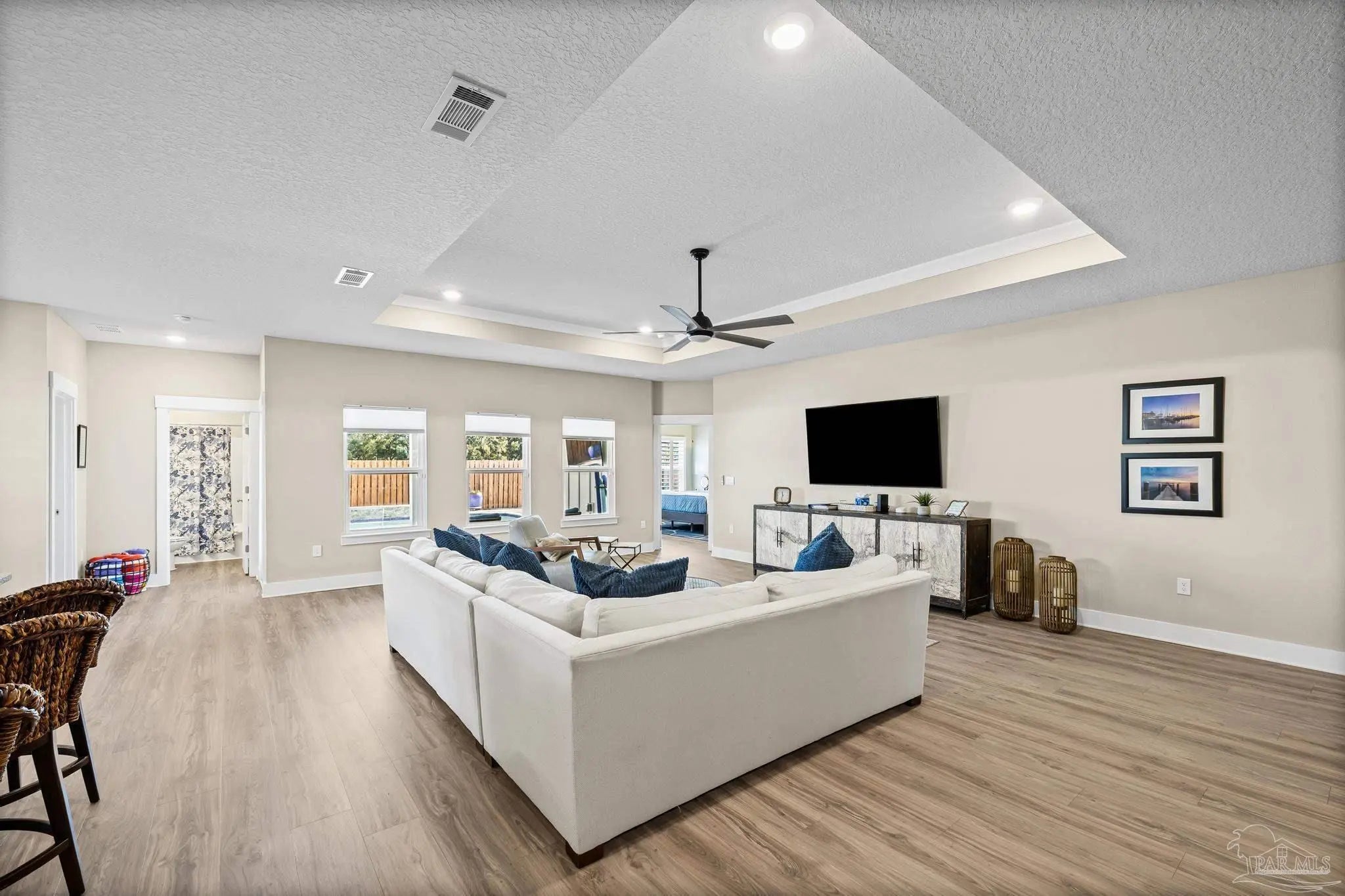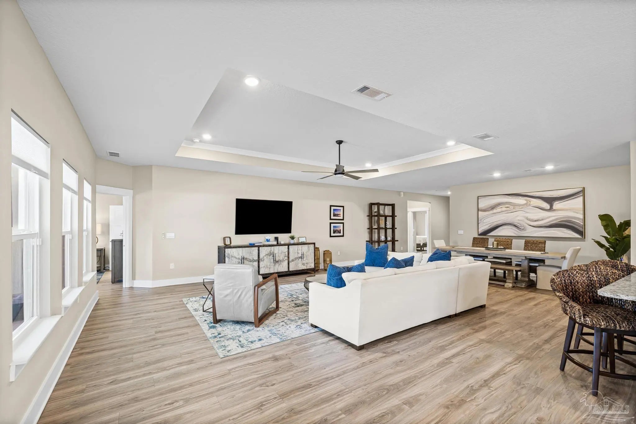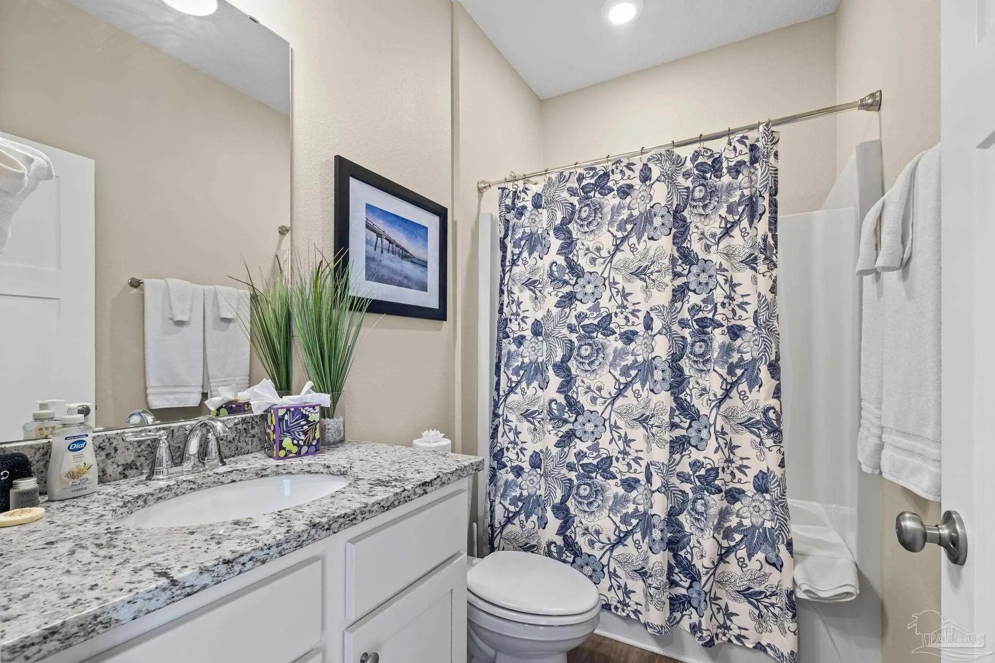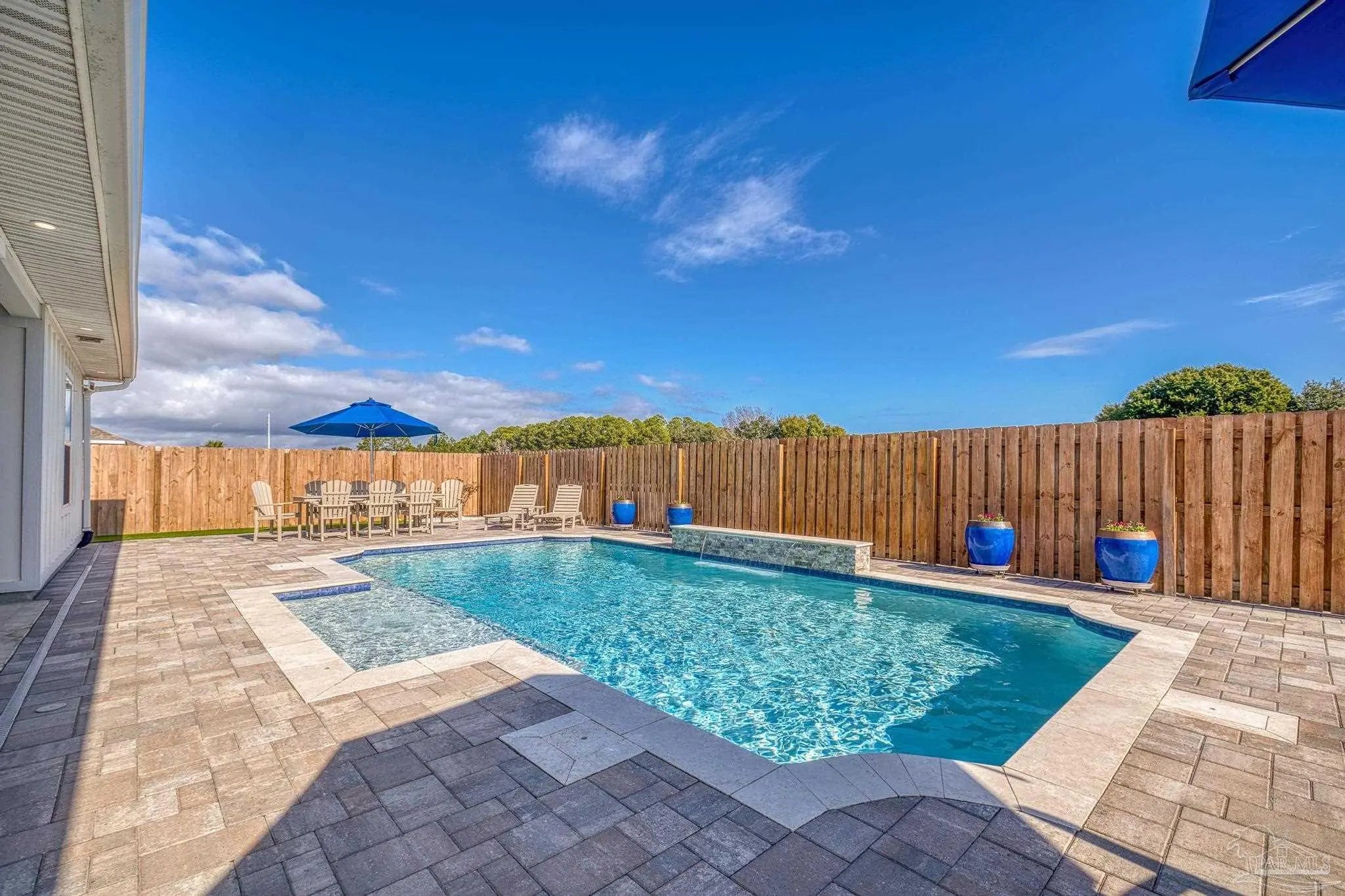 Waiting for a POOL HOME in the Tiger Point Area of Gulf Breeze? Wait no more! Discover your dream NW Florida lifestyle in this immaculate BETTER THAN NEW home with sparkling salt-water pool close to Golf, Shopping, Hospital, 3-Mile Bridge to Pensacola and of course - Pensacola Beach!! This 4-bedroom 3-bath 3-car garage residence, offers a 3-way split floorplan, all hard floors, all granite countertops, large open kitchen, easy care backyard w/high end synthetic grass and WOW - that salt water in-ground - sparkling pool! Step inside the front from the covered porch to a bright entry foyer with the view of the patio, backyard and pool, then enter the impressive, open-concept design featuring high box style ceilings that enhances the natural light. There is a large dining room to the left, great room in the center and open kitchen complete with granite countertops, stainless appliances, center island with lots of additional storage, large pantry and laundry room with access to the 3-car garage. The main suite is on the back of the home with a box ceiling and a view of the back yard - since the home faces west, it is cooler in the afternoon heat of the day. The bath - what can I say - double vanity, granite countertops, large closet, separate shower, garden tub and water closet - AKA Thinking Room. There is a guest suite also at the back of the home with bath which is also a pool bath since it is adjacent to the back door to the patio. Enjoy the Florida Lifestyle either on the back patio watching tv, sitting by the fire pit or take a swim in your pool. The backyard faces East - and there are no neighbors behind - which is perfect for watching the sunrise, relaxing after a day at the beach, hosting summer BBQs, or simply enjoying the tranquil NW Florida evenings. Neighborhood allows for short term rentals making this a perfect turn-key investment opportunity or 2nd home and features a cul-de-sac so no through traffic, a mailbox bank and underground utilities.