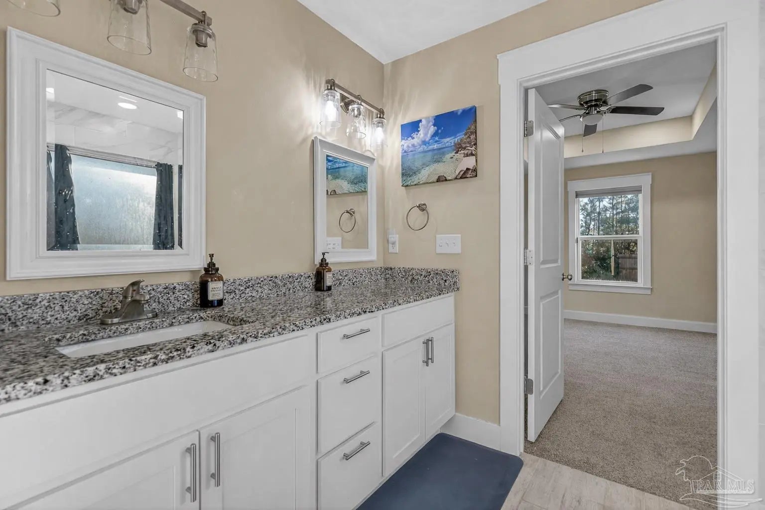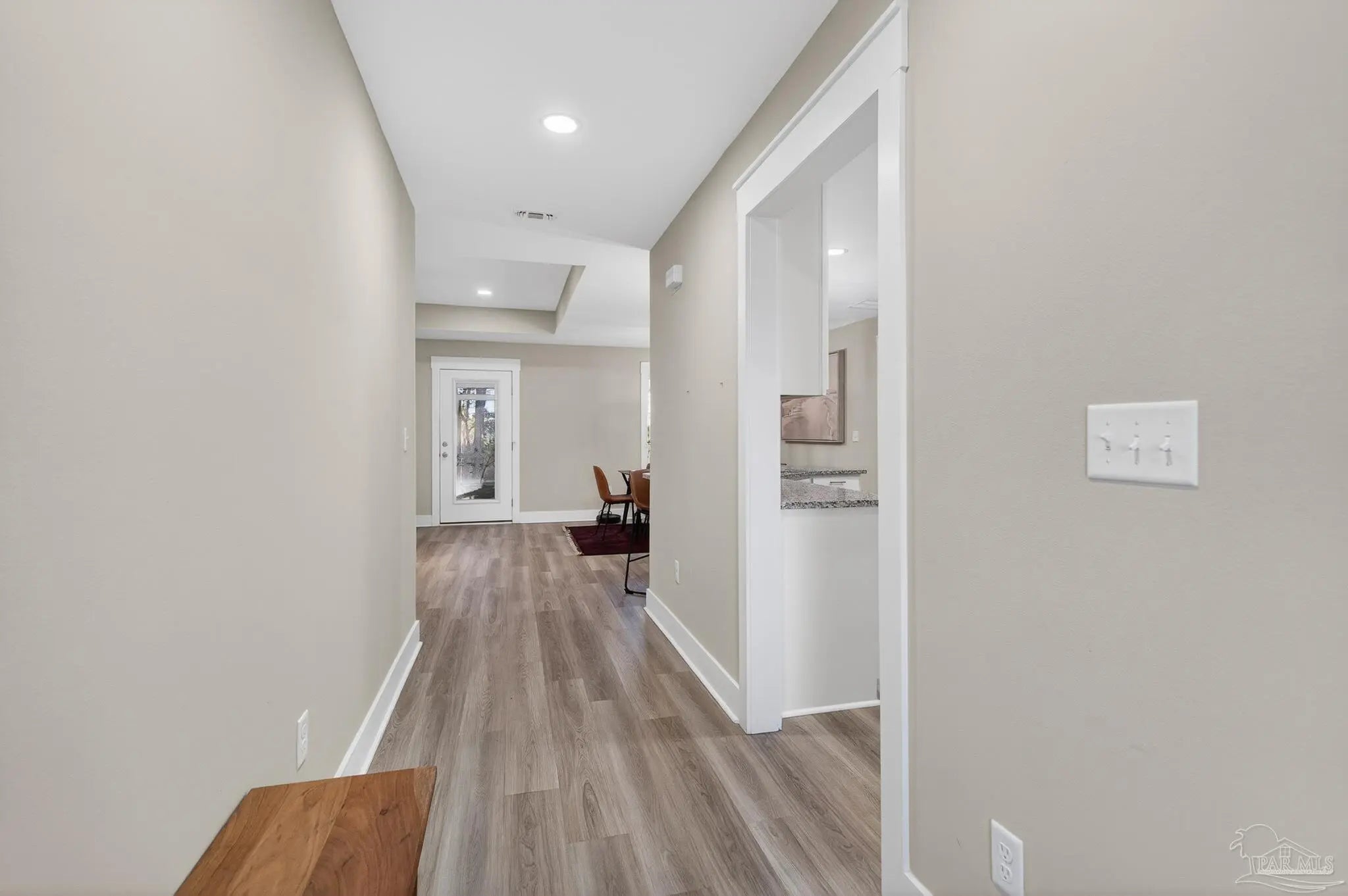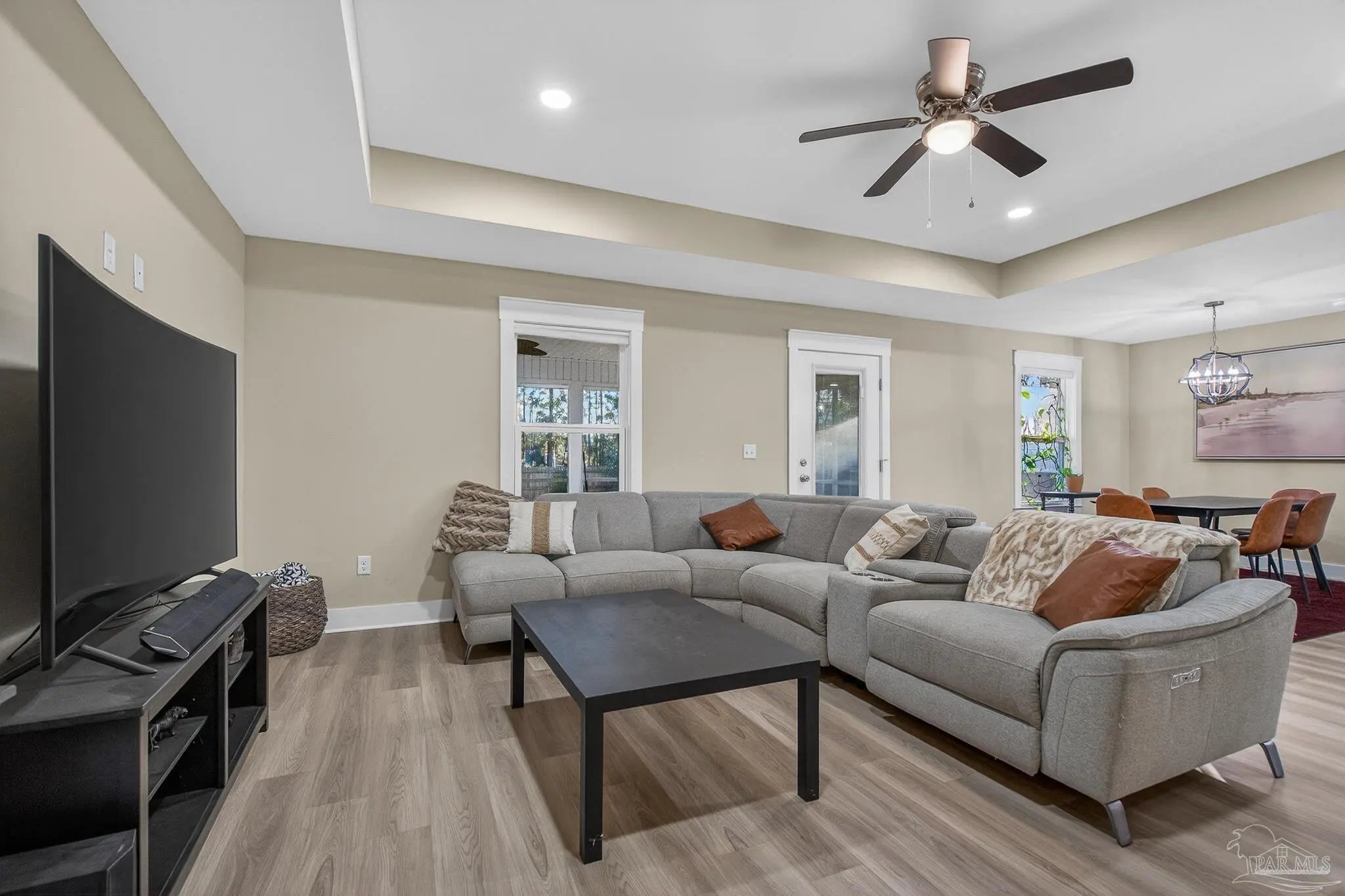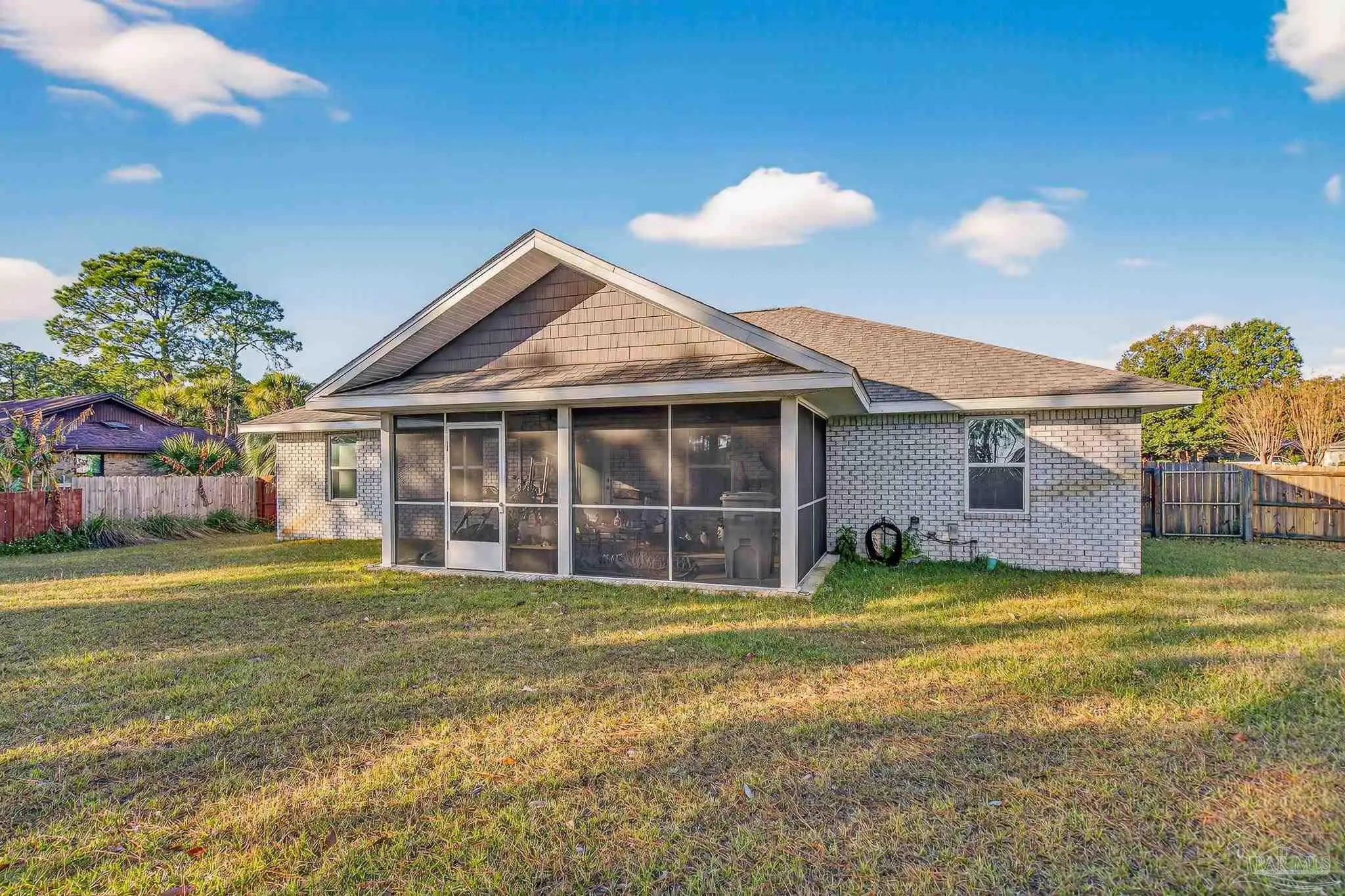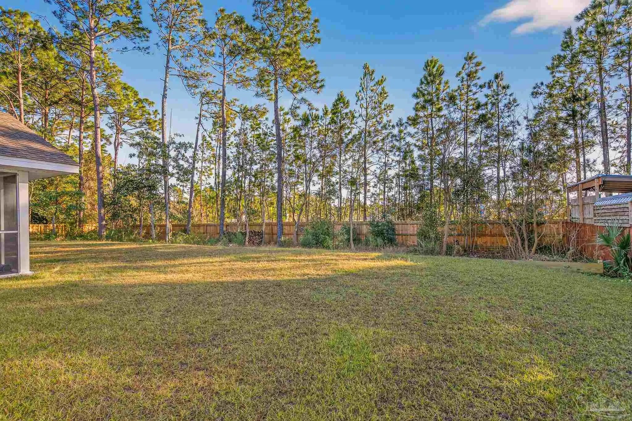 Now for sale in the established Paradise Bay neighborhood! This charming coastal home, built in 2023, offers 4 bedrooms, 2 bathrooms, a 2-car garage, and both front and back porches. Amenities include a well-fed sprinkler system and access to a neighborhood waterfront retreat, perfect for fishing or hosting events. Upon entering, you will notice the home was thoughtfully designed for privacy, with the living room situated at the rear and a split floor-plan layout. Built with pride, the home features wood soft-close shaker-style cabinetry throughout, granite countertops, tiled bathrooms, and quality waterproof vinyl flooring. Impeccably maintained and better than new construction, the home includes owner-added fencing, storage additions, and yard clearing. Conveniently located just minutes from desirable K-12 Gulf Breeze schools, Oriole Beach boat ramp on the Santa Rosa Sound, white sandy beaches, and all nearby shopping and dining. Schedule your private tour today!