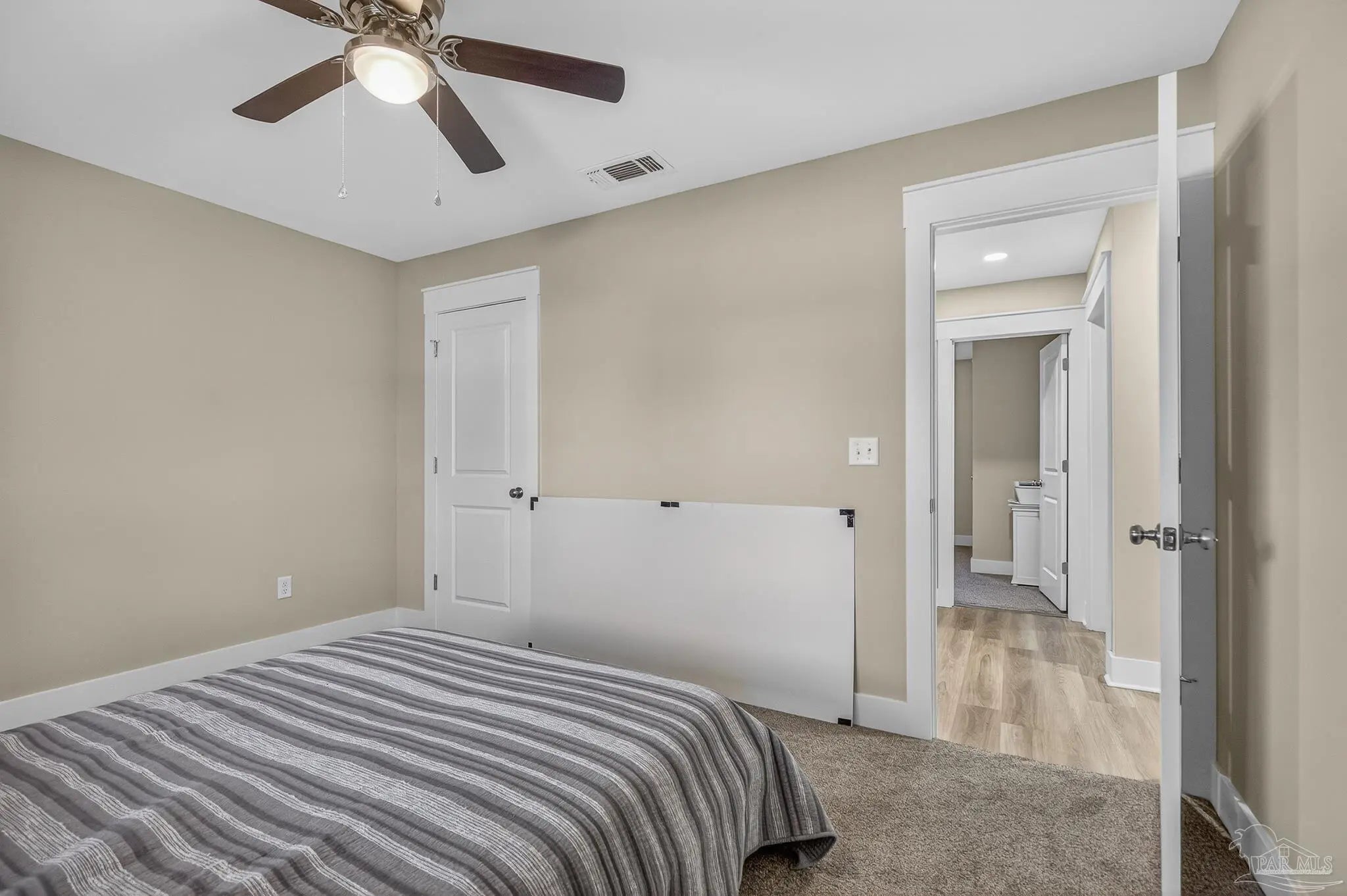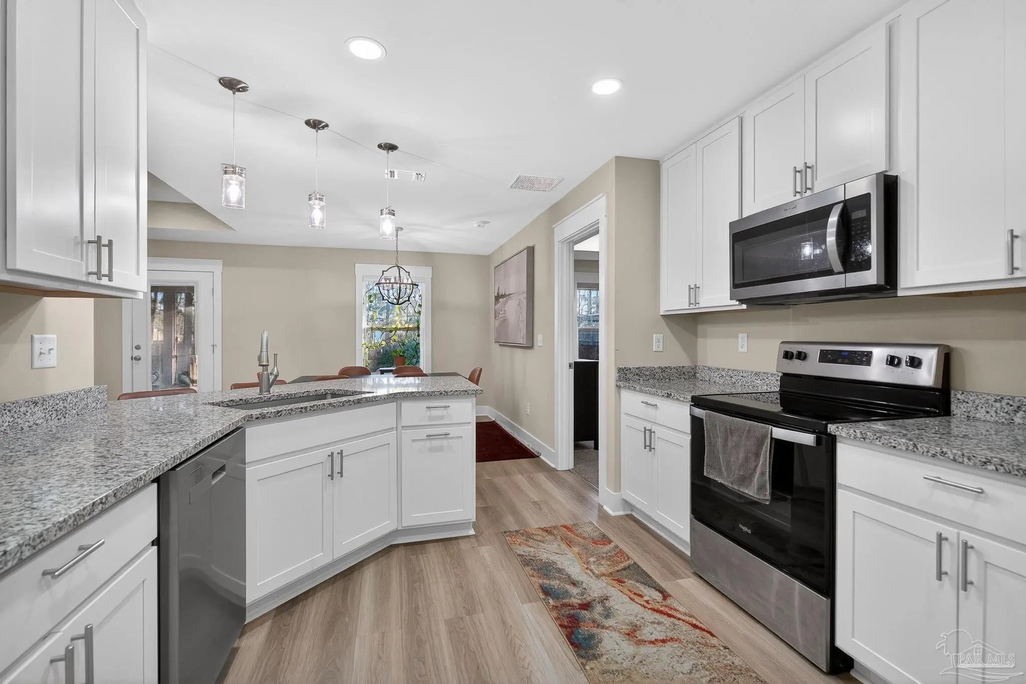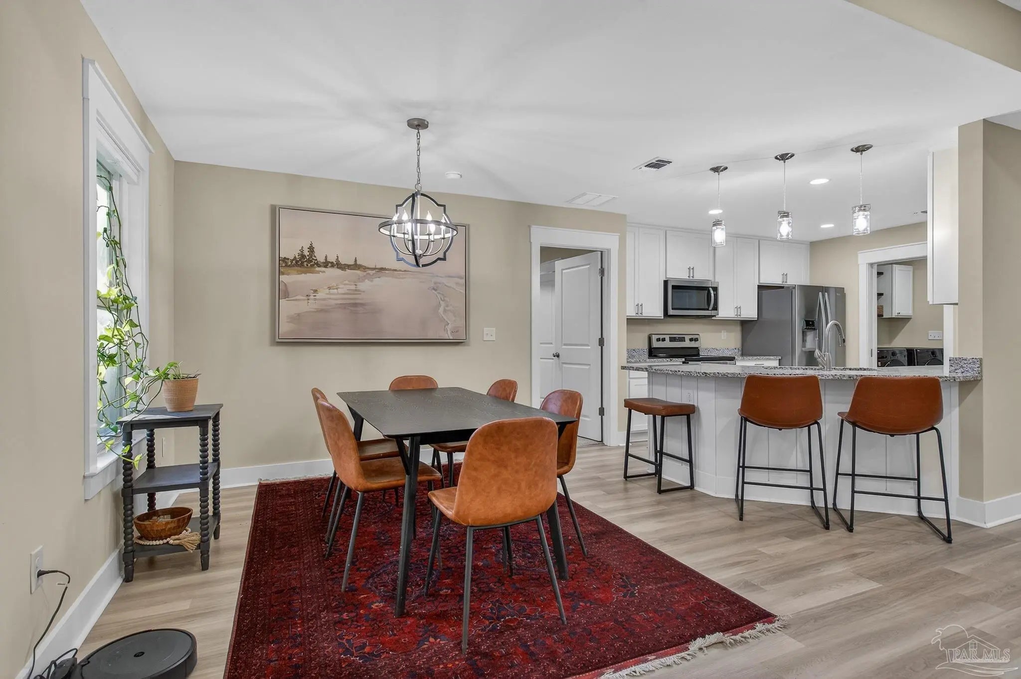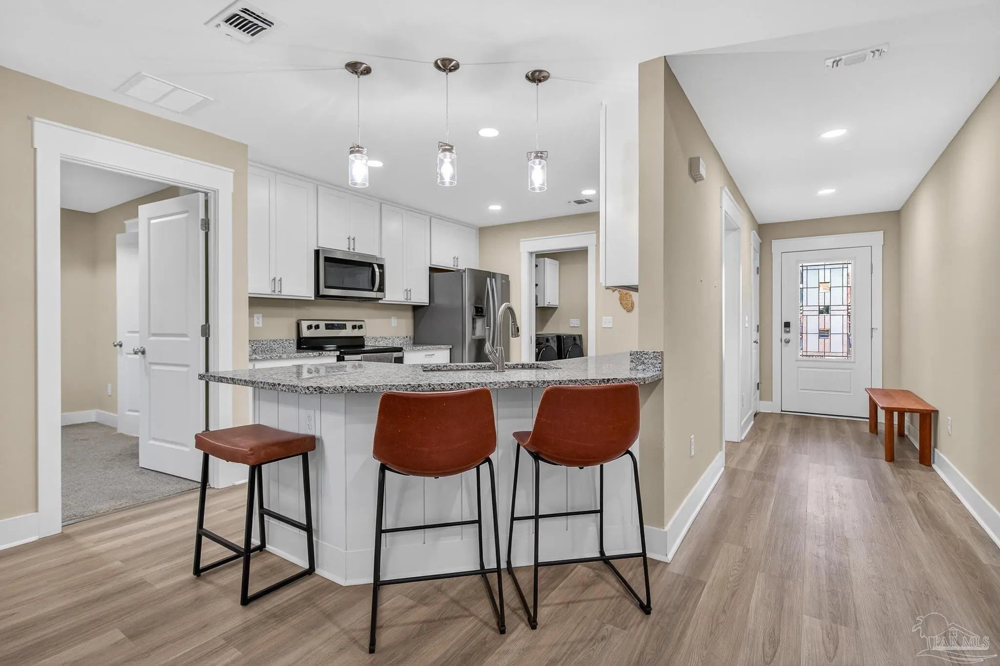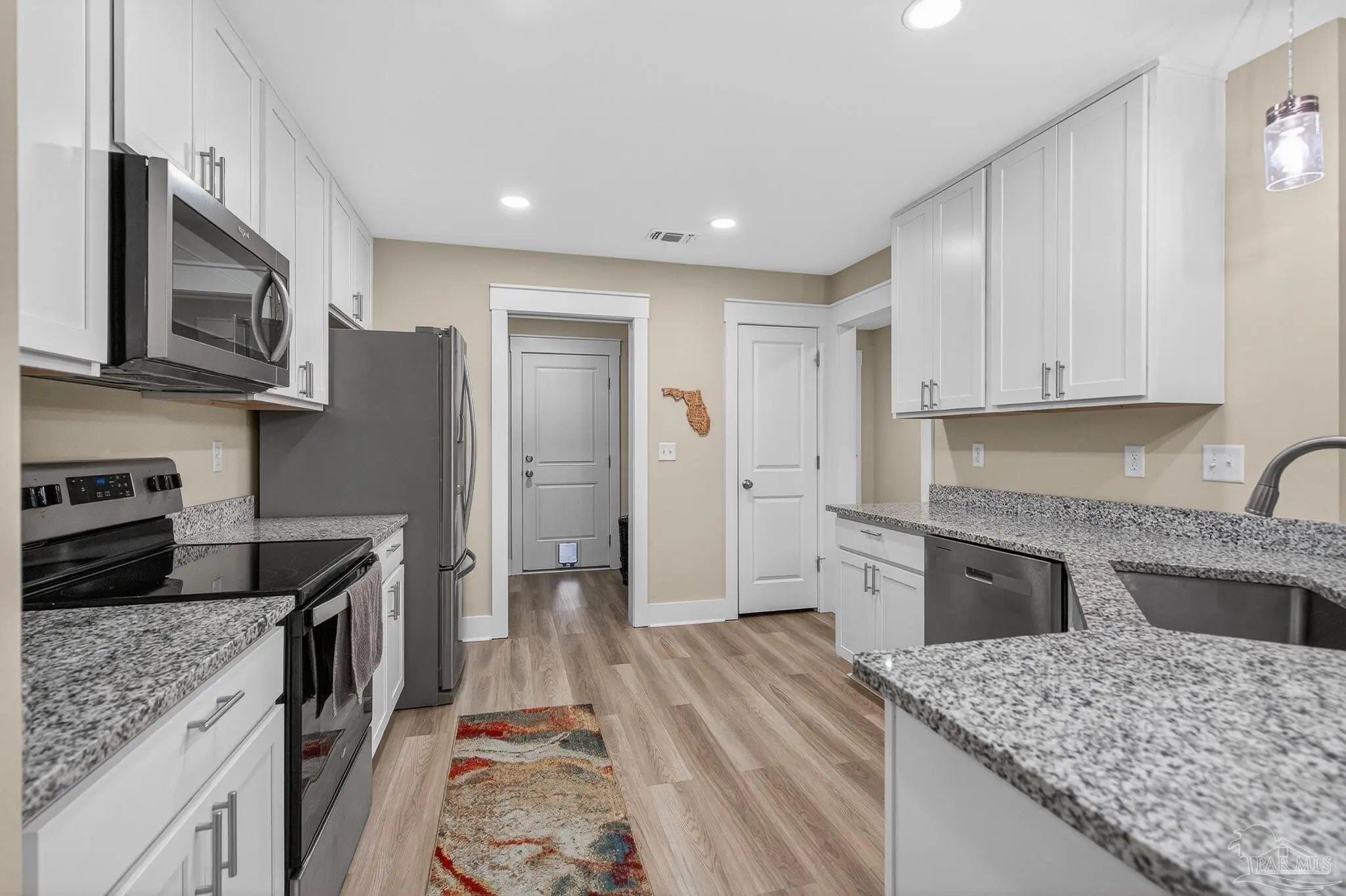 Now for sale in the established Paradise Bay neighborhood! This charming coastal home, built in 2023, offers 4 bedrooms, 2 bathrooms, a 2-car garage, and both front and back porches. Amenities include a well-fed sprinkler system and access to a neighborhood waterfront retreat, perfect for fishing or hosting events. Upon entering, you will notice the home was thoughtfully designed for privacy, with the living room situated at the rear and a split floor-plan layout. Built with pride, the home features wood soft-close shaker-style cabinetry throughout, granite countertops, tiled bathrooms, and quality waterproof vinyl flooring. Impeccably maintained and better than new construction, the home includes owner-added fencing, storage additions, and yard clearing. Conveniently located just minutes from desirable K-12 Gulf Breeze schools, Oriole Beach boat ramp on the Santa Rosa Sound, white sandy beaches, and all nearby shopping and dining. Schedule your private tour today!