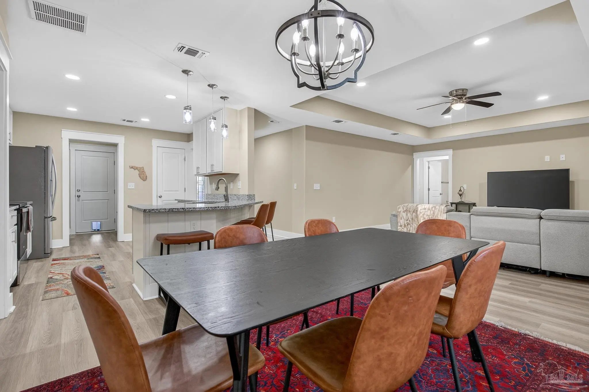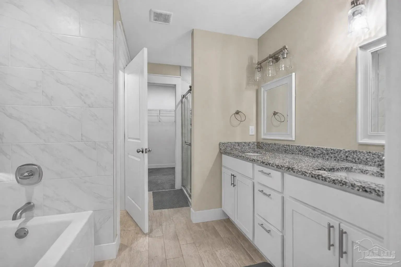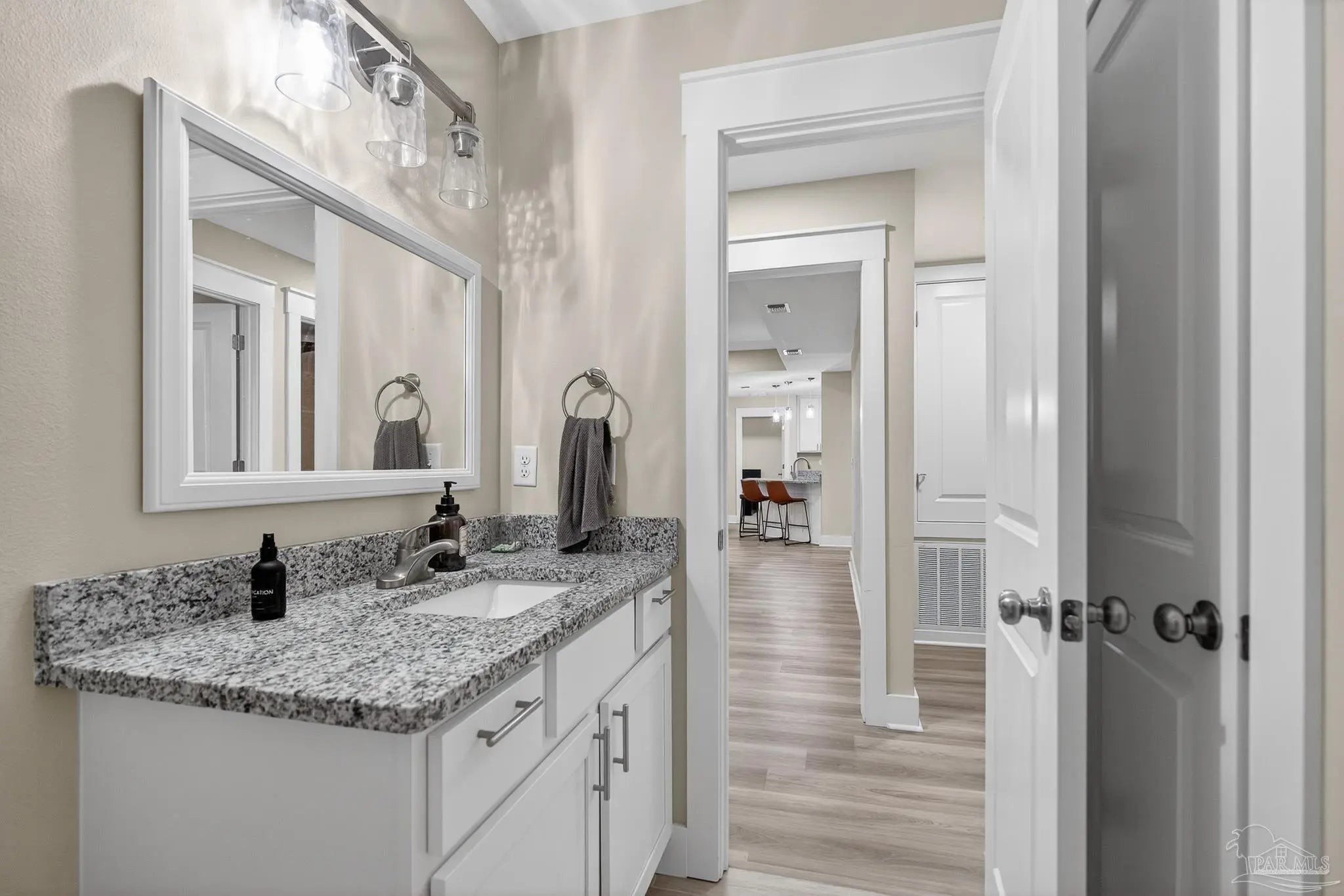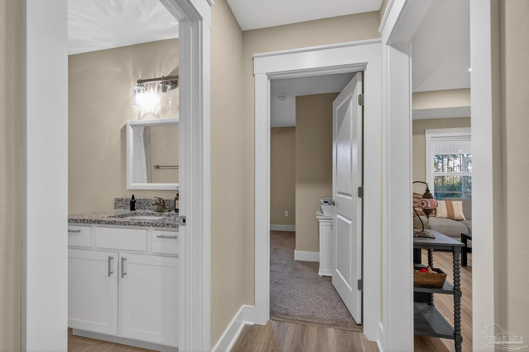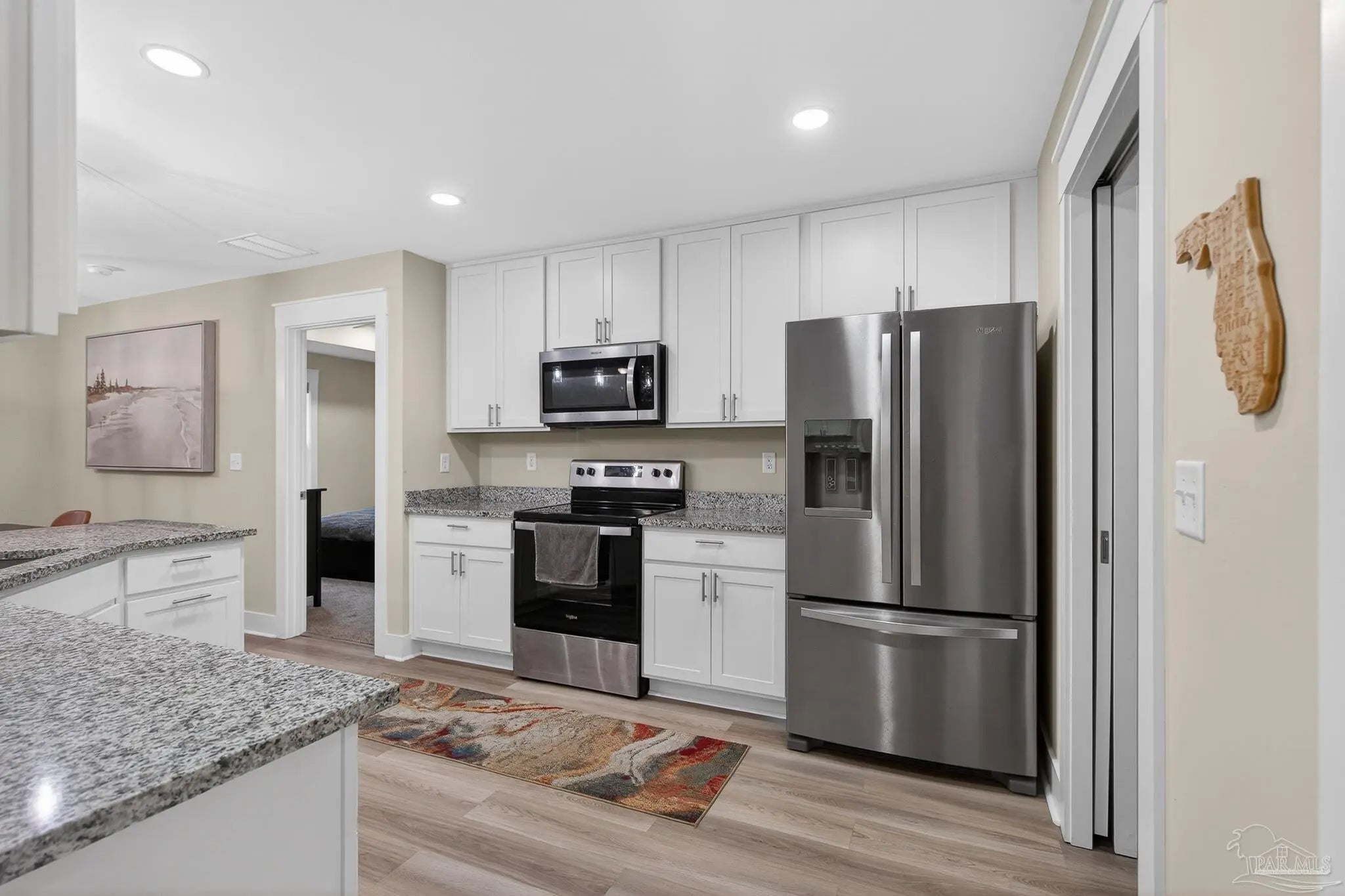 Now for sale in the established Paradise Bay neighborhood! This charming coastal home, built in 2023, offers 4 bedrooms, 2 bathrooms, a 2-car garage, and both front and back porches. Amenities include a well-fed sprinkler system and access to a neighborhood waterfront retreat, perfect for fishing or hosting events. Upon entering, you will notice the home was thoughtfully designed for privacy, with the living room situated at the rear and a split floor-plan layout. Built with pride, the home features wood soft-close shaker-style cabinetry throughout, granite countertops, tiled bathrooms, and quality waterproof vinyl flooring. Impeccably maintained and better than new construction, the home includes owner-added fencing, storage additions, and yard clearing. Conveniently located just minutes from desirable K-12 Gulf Breeze schools, Oriole Beach boat ramp on the Santa Rosa Sound, white sandy beaches, and all nearby shopping and dining. Schedule your private tour today!