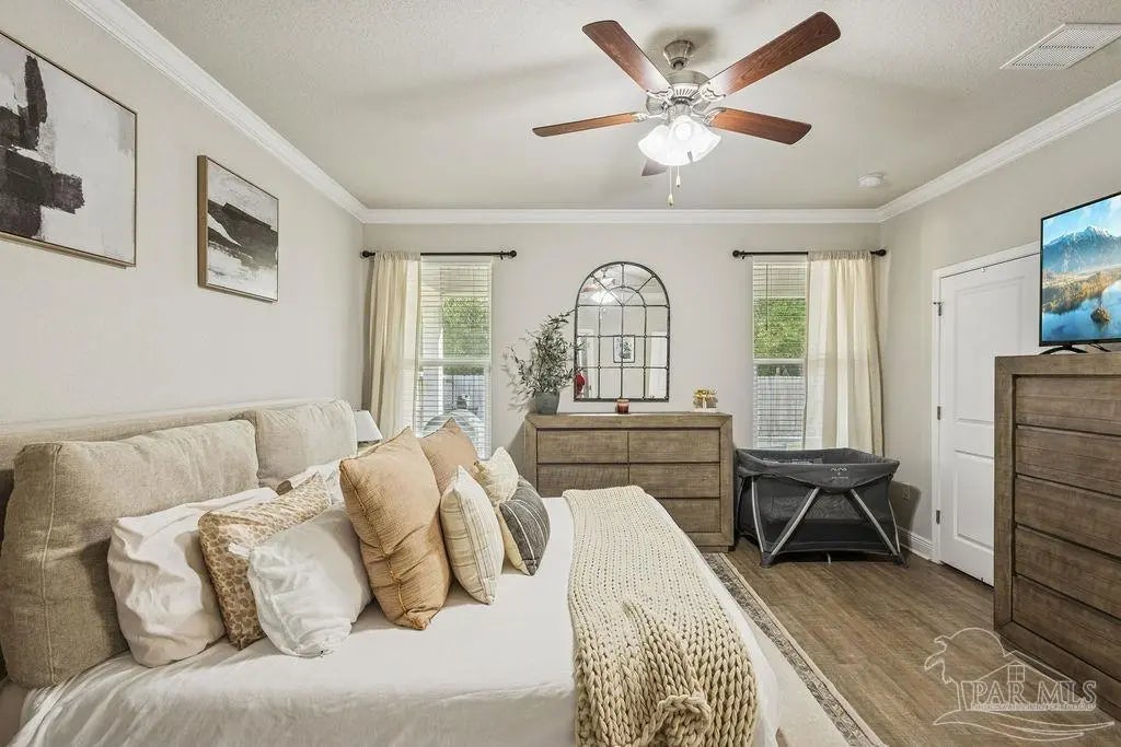 Beautifully maintained 4/3 with space galore at 2309 living sqft! This home is tucked away near quiet cul-de-sac offering the best of both worlds—peaceful living with reduced through-traffic, yet conveniently located just two roads off the south end of Chumuckla Highway, providing quick access to schools, dining, and everyday favorites. Inside, the home welcomes you with a bright open-concept layout that seamlessly connects the living, dining, and kitchen areas—perfect for entertaining or everyday living. Luxury vinyl plank flooring flows through the main living spaces and into the primary suite, while plush carpet adds comfort to the bedrooms. The spacious primary retreat features two closets, including a custom built-in designed specifically for a husband’s closet, blending thoughtful design with function. A large pantry and well-appointed kitchen complete the main level. Upstairs, you’ll find two additional bedrooms, a full bath, and attic storage, offering flexible space for guests, family, or storage needs. Super chic, move-in ready, and impeccably cared for, this home delivers comfort, style, and location in one standout package.