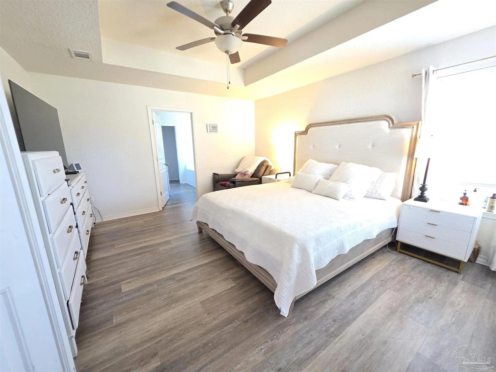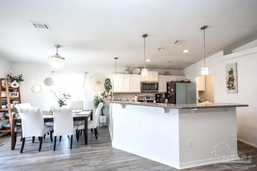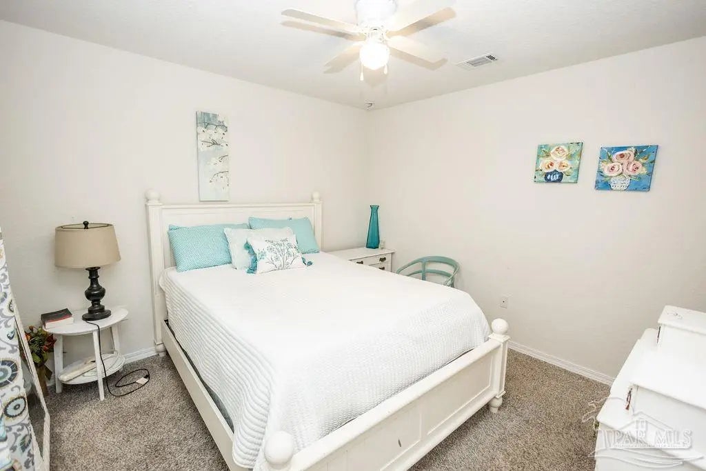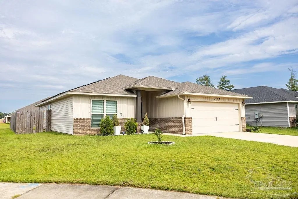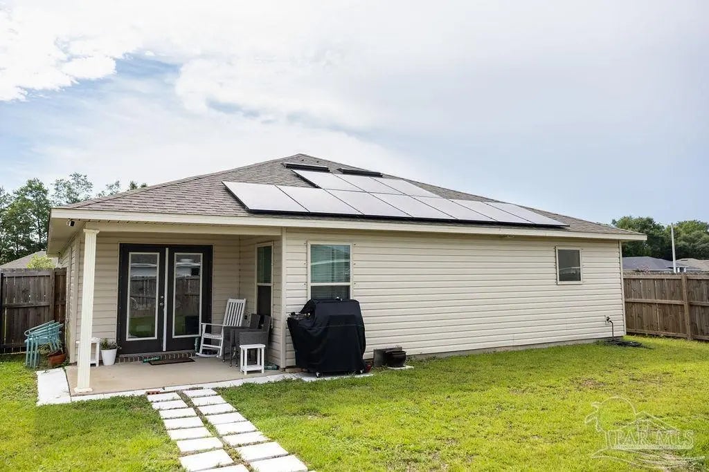 Seller offering concessions for buyer. Welcome beautiful corner lot, this 3-bedroom, 2-bath home in Pace, Florida, offering comfort, space, and major energy savings with fully paid-off solar panels included at closing, resulting in little to no electric bill. Located on a corner lot in a family-friendly neighborhood, this home features an OPEN living area with high cathedral ceilings that create a bright and airy feel. The kitchen includes GRANITE countertops, STAINELESS steel appliances, plenty of cabinet space, and a walk-in pantry, making it ideal for everyday living and entertaining. The primary suite offers a relaxing retreat with a tray ceiling, double vanity, soaking tub, tile shower, and walk-in closet, while two additional bedrooms provide flexibility for family, guests, or a home office. Enjoy outdoor living in the fully fenced backyard with a covered patio, a HOT TUB. This yard is perfect for pets, play, or weekend gatherings. Additional highlights include a two-car garage, community playground, and a convenient location close to top-rated Pace schools, shopping, dining, parks, and easy access to Pensacola and nearby military bases. This energy-efficient home is ideal for buyers looking for low utility costs, a great location, and a home ready to enjoy from day one.