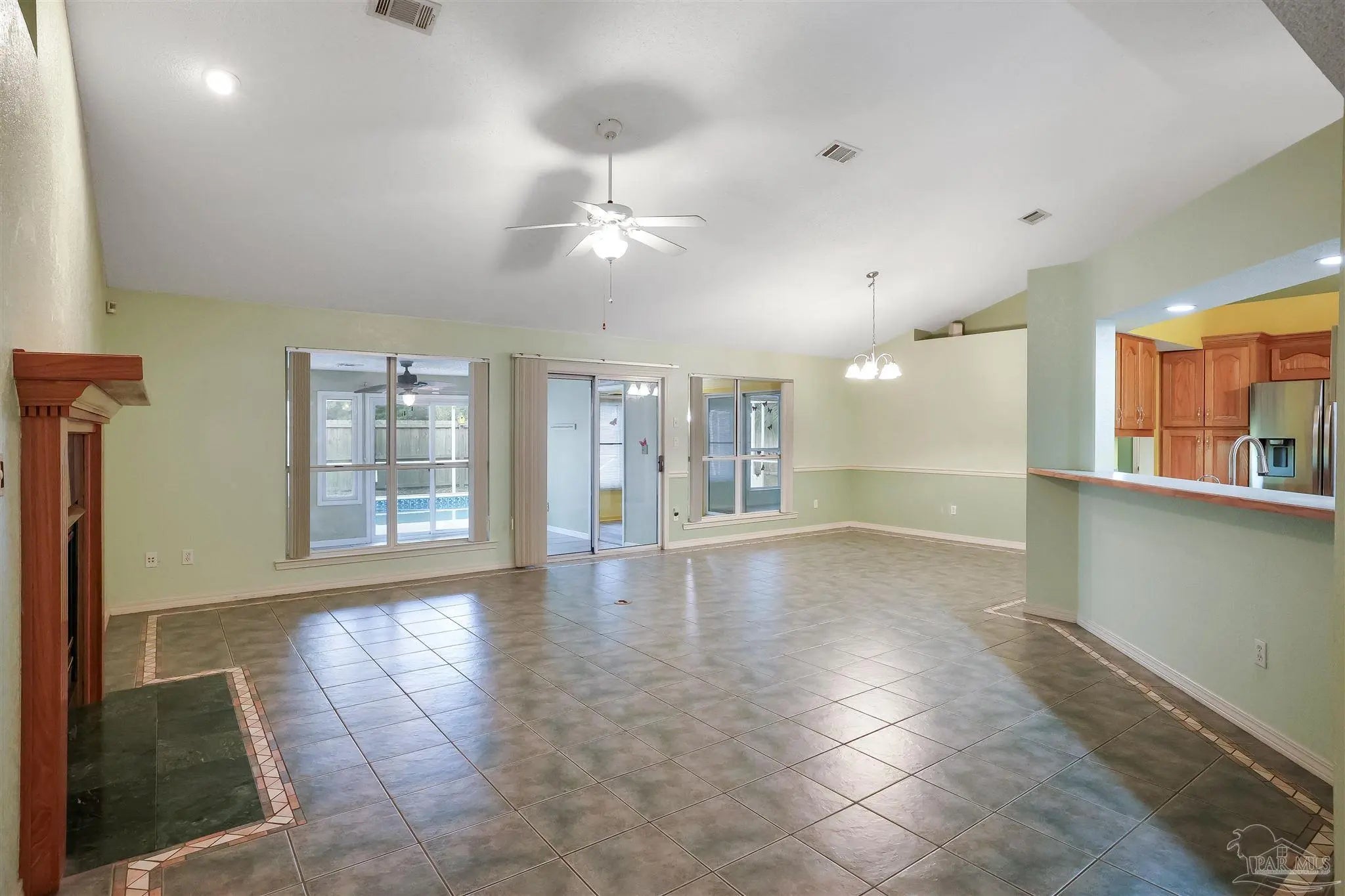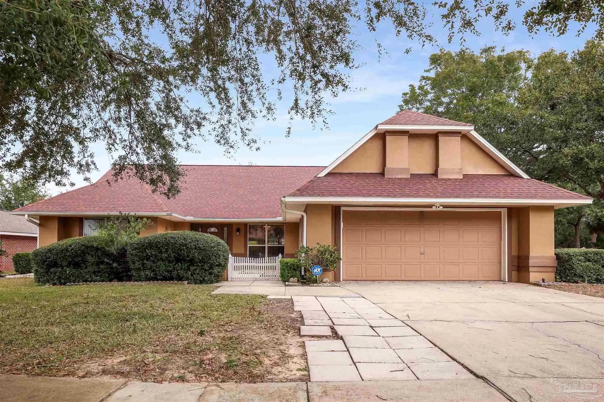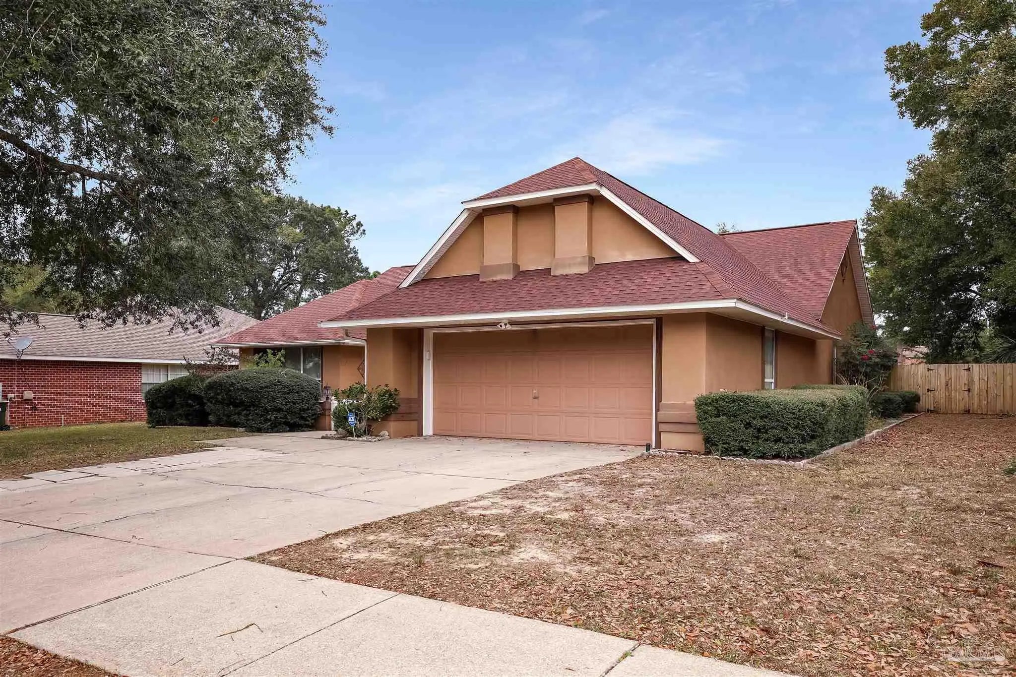 Tucked beneath mature trees in an established Pensacola neighborhood, this inviting pool home offers space, character, and indoor-outdoor living designed for everyday comfort and entertaining. A charming front elevation with well-maintained landscaping and a welcoming entry courtyard sets the tone from the moment you arrive. Inside, the home opens to a spacious living area with vaulted ceilings, tile flooring throughout the main living spaces, and abundant natural light. Multiple sliding glass doors and large windows create a seamless connection to the screened pool enclosure, making the home feel bright and open. The layout offers flexibility with generous living and dining areas, perfect for gatherings or relaxed daily living. The kitchen features ample cabinetry, a center island, stainless steel appliances, and plenty of counter space, all positioned to overlook the main living areas—ideal for entertaining while staying connected. Just off the kitchen, a dedicated laundry room provides additional storage and functionality. The primary suite offers a peaceful retreat with direct access to the pool area and a spacious en suite bathroom. The bath includes a soaking tub, separate shower with glass block detailing, dual vanities, and abundant storage, creating a spa-like feel. Additional bedrooms are well-sized and thoughtfully positioned to provide privacy for family or guests. Out back, the screened-in pool area is the true highlight—an expansive space designed for Florida living. Whether enjoying morning coffee, hosting weekend cookouts, or relaxing poolside, the enclosure provides year-round usability. A fenced backyard adds privacy and security, while the covered areas offer shade and versatility. Located just minutes from shopping, dining, golf, and Pensacola’s white-sand beaches, 2300 Caddy Shack Drive combines comfort, space, and location in one complete package. This is a home designed to be lived in and enjoyed—inside and out.