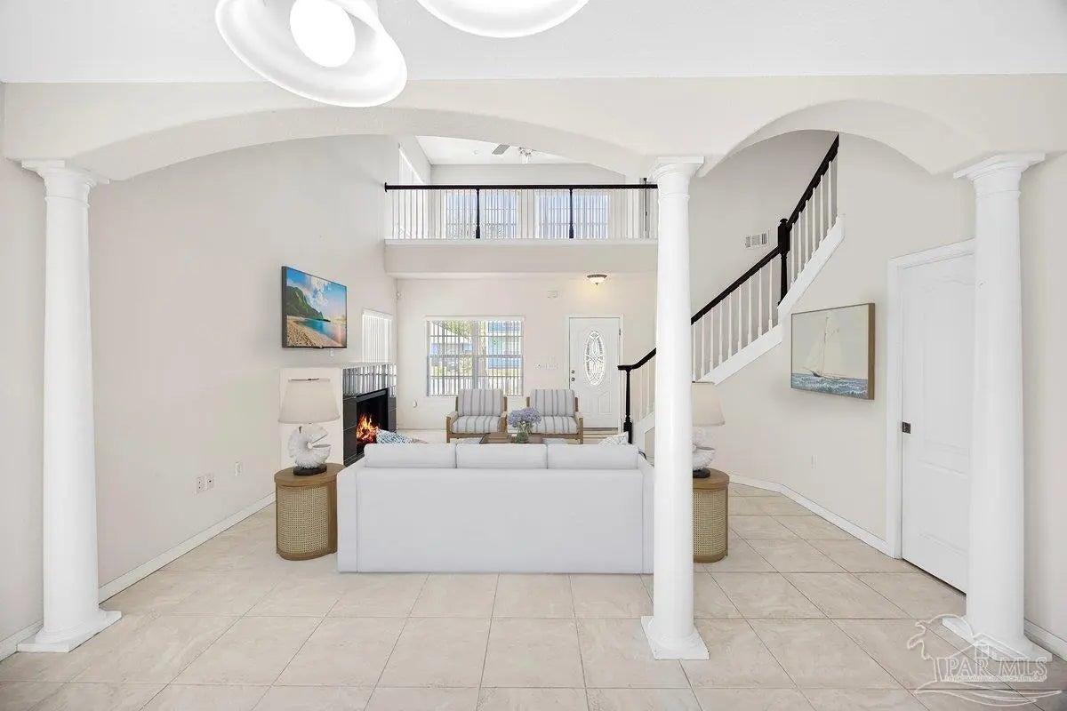 WELCOME HOME to your beautiful southern dream oasis with calm coastal breezes of the quiet and serene Innerarity Point. You have easy access to the calm waters of the Intercoastal, Perdido Bay, Johnson Beach, & Perdido Key Beach as well as several boat launches in the area. NAS Pensacola is just minutes away and if you like The Blue Angels you're in for a treat as you can see from your balcony. This beautiful 3 bedroom 3 and half bath home welcomes you from the moment you pull up. There's one bedroom on the bottom floor & two bedrooms on the second floor with each bedroom has its own en-suite with an additional half bathroom on the bottom floor. Upstairs you find a very large master suite that connects with a loft to use as an at-home gym, study room, a place to enjoy your morning coffee or evening relaxation. The roof is 2020, HVAC is 2022, water heater is 2022, and the water filtration system is 2022. The Cathedral-style ceilings show off the vastness of the living room. There is a master bedroom located on the main floor!! The house is virtually staged. The community has a 25' access to the bay to enjoy fishing, canoeing, paddle boarding or sunsets over the bay just steps away. Schedule your showing now before this beautiful home is gone!