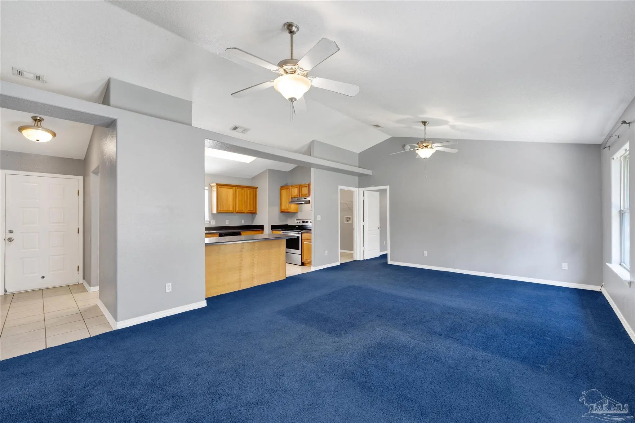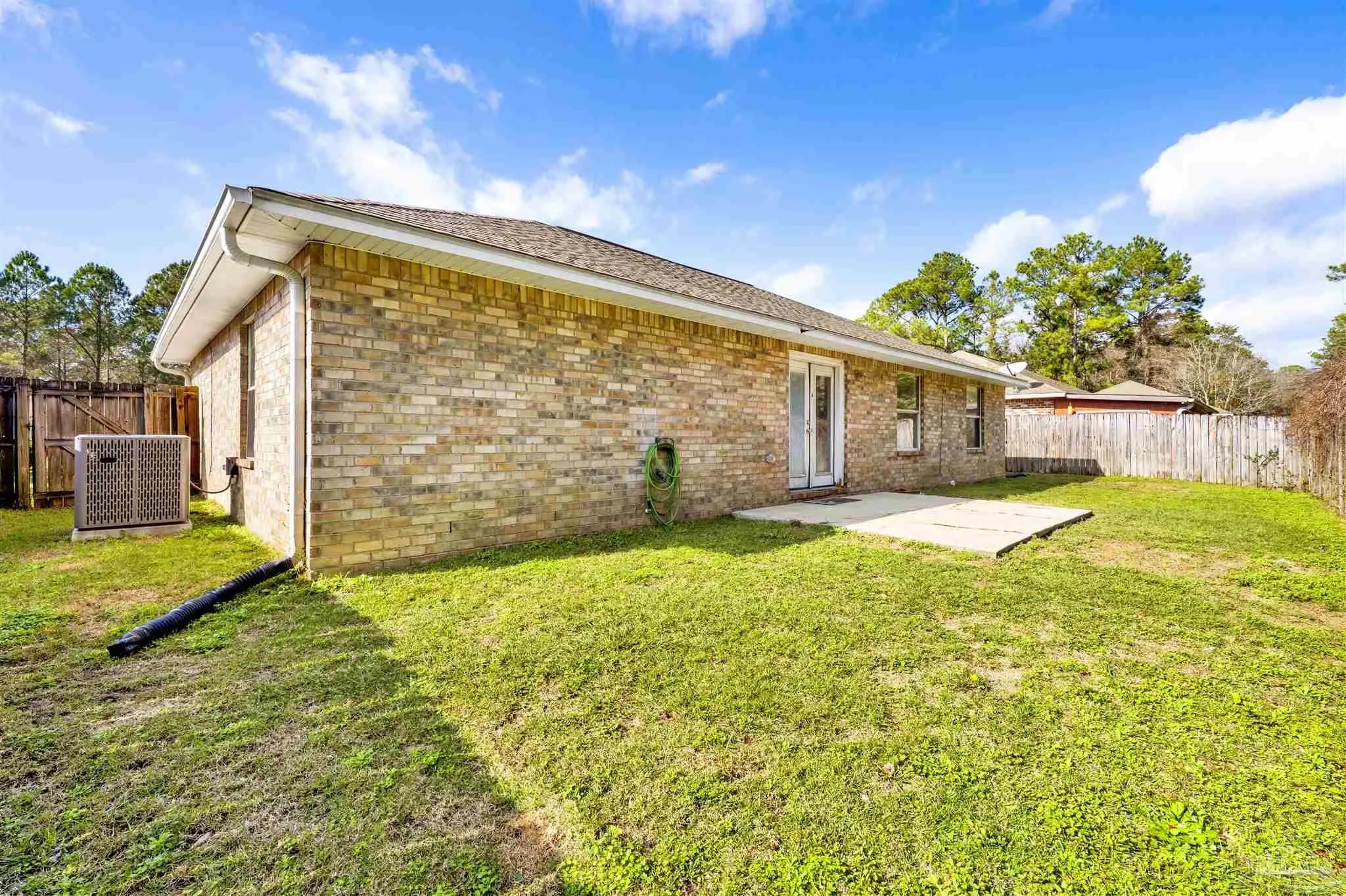 Conveniently located close to NAS Pensacola, shopping, and dining, this 3-bedroom, 2-bath home offers comfort, space, and value — plus seller concessions to help make it yours. From the foyer, step into an open and spacious great room featuring vaulted ceilings, carpeted floors, decorative plant ledges, and double glass doors that lead to the backyard, filling the space with natural light. The adjacent kitchen is both functional and inviting with tile flooring, a peninsula with breakfast bar, pantry, and stainless steel appliances — perfect for everyday living and casual entertaining. A split-bedroom floor plan provides added privacy for the primary suite, which features carpeted flooring, a tray ceiling, and a walk-in closet. The primary bath includes tile flooring and a tub/shower combo. The additional bedrooms are nicely sized with ceiling fans and ample closet space, while the second full bath offers tile flooring, a single vanity, and a tub/shower combo. An inside laundry room adds convenience and provides access to the two-car garage. Enjoy outdoor living in the privacy-fenced backyard, complete with an open patio ideal for relaxing evenings or backyard BBQs. This home’s location, layout, and seller concessions make it an excellent opportunity you won’t want to miss.