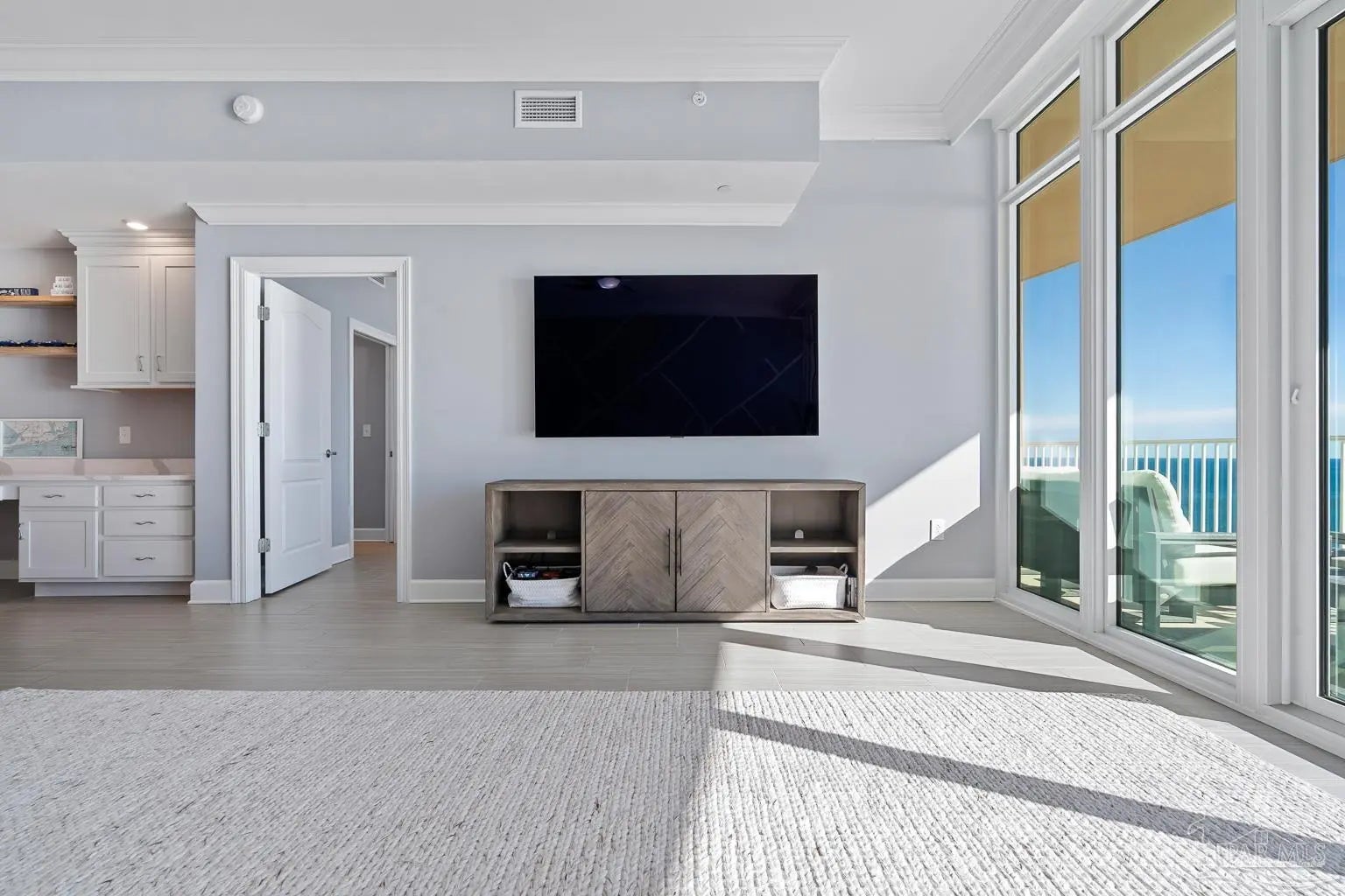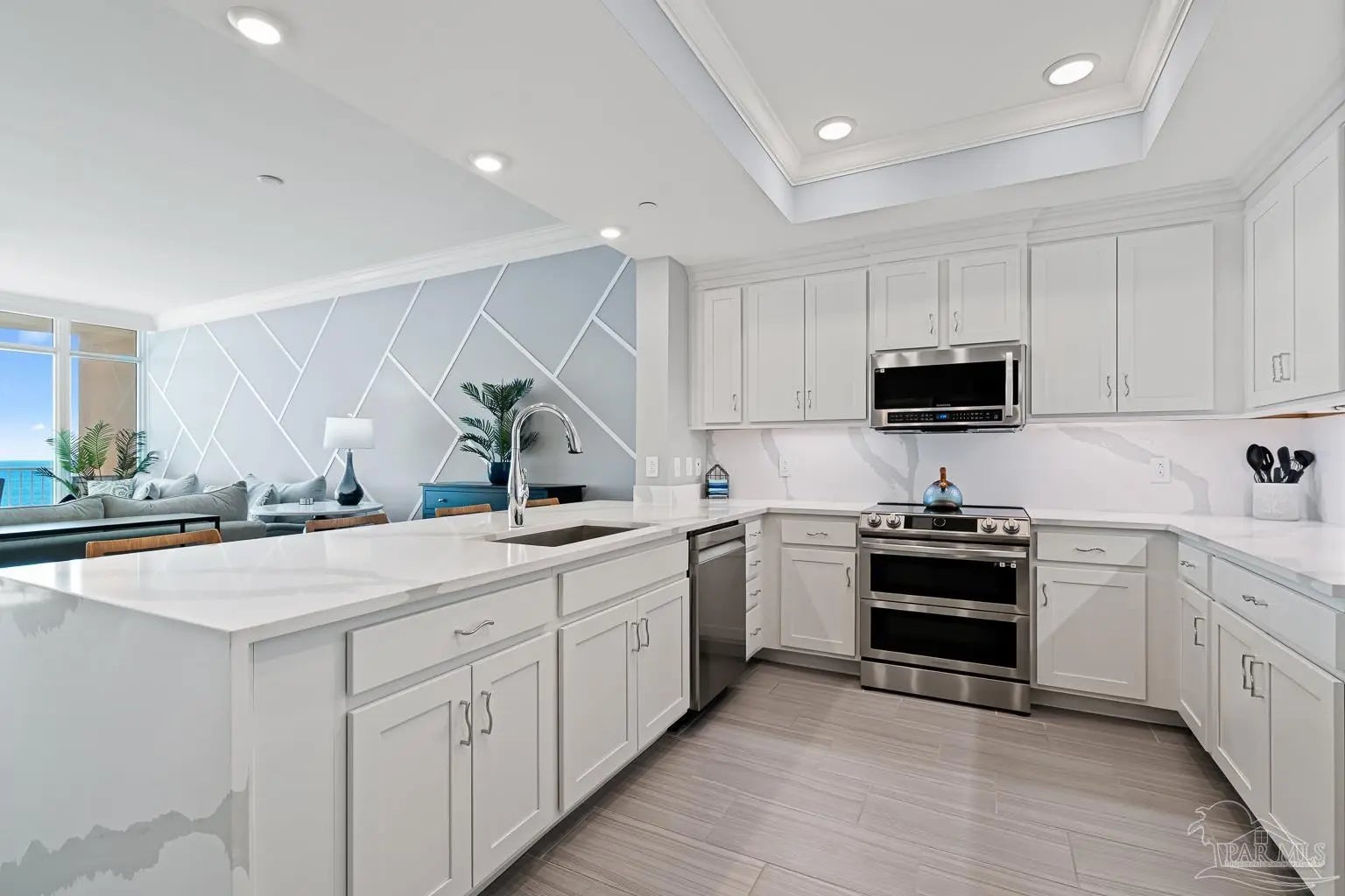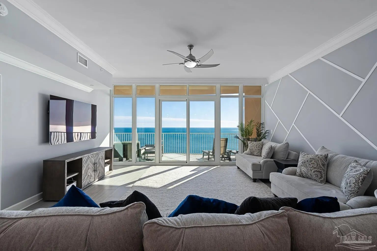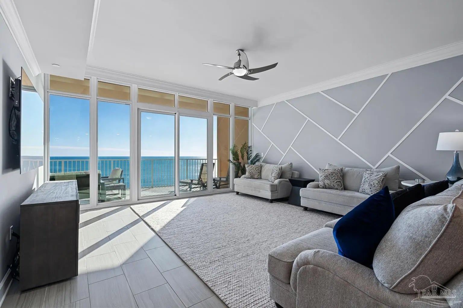 Phoenix Gulf Towers 1803 is a fully reimagined residence that blends thoughtful design and premium finishes with an irreplaceable, unobstructed west-facing sunset view. With over $120K in upgrades at the time of construction in 2023, every inch of this condo has been refined for quality, longevity, and elegance, including a striking geometric accent wall spanning the entire living room, which adds architectural interest and a designer focal point. The spacious floor plan sleeps 8–10, with a king bed in the primary suite, two queens in one guest room, and a full bed plus queen sleeper loveseat in the other guest room, ideal for year-round living or use as a second home or rental investment. Plank porcelain tile flooring throughout is complemented by solid wood doors and soft-close cabinetry. Silestone quartz countertops are found in the kitchen, bathrooms, and the built-in desk, accented by a full-height quartz kitchen backsplash and waterfall edge. The kitchen has smart appliances with induction range, double oven, stainless undermount sink, under-cabinet and recessed lighting, and custom counter-height breakfast bar with hidden supports. Bathrooms feature a redesigned primary layout, custom showers, comfort-height skirted toilets, high-end fixtures, and pocket doors. Additional highlights include an HVAC with built-in dehumidifier, surround sound pre-wiring, ethernet/USB outlets, recessed lighting, premium ceiling fans, and an owner’s closet near the elevators. Impact-resistant floor-to-ceiling doors lead onto the oversized balcony to experience the true differentiator - an unobstructed, unforgettable evening sunset display that cannot be replicated. Luxury amenities include two outdoor pools with lazy rivers and waterslides, two heated indoor pools, hot tubs, two fitness rooms, and ample covered parking. For buyers seeking an upgraded, never-rented Gulf-front condo with refined architectural details and views that truly set it apart - this residence stands alone.