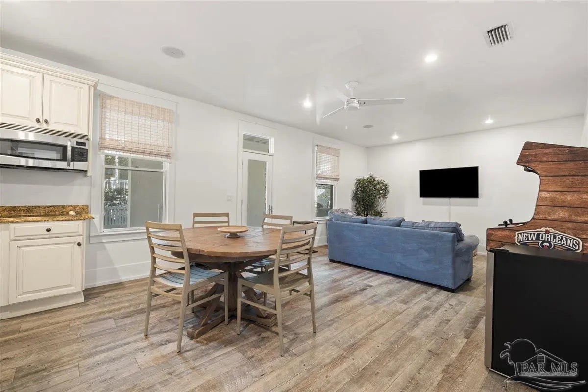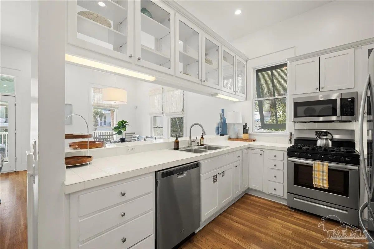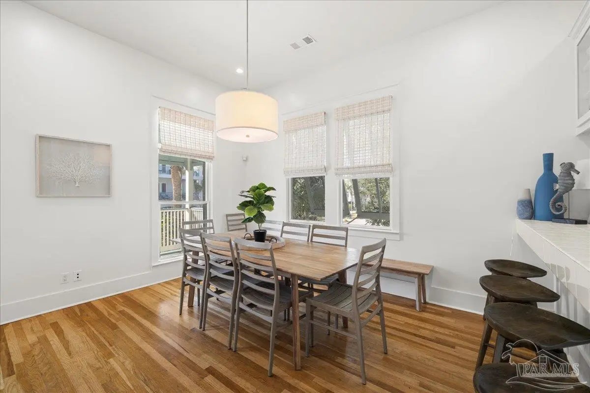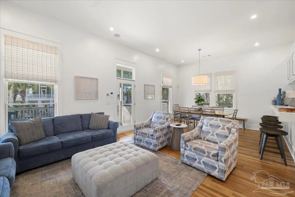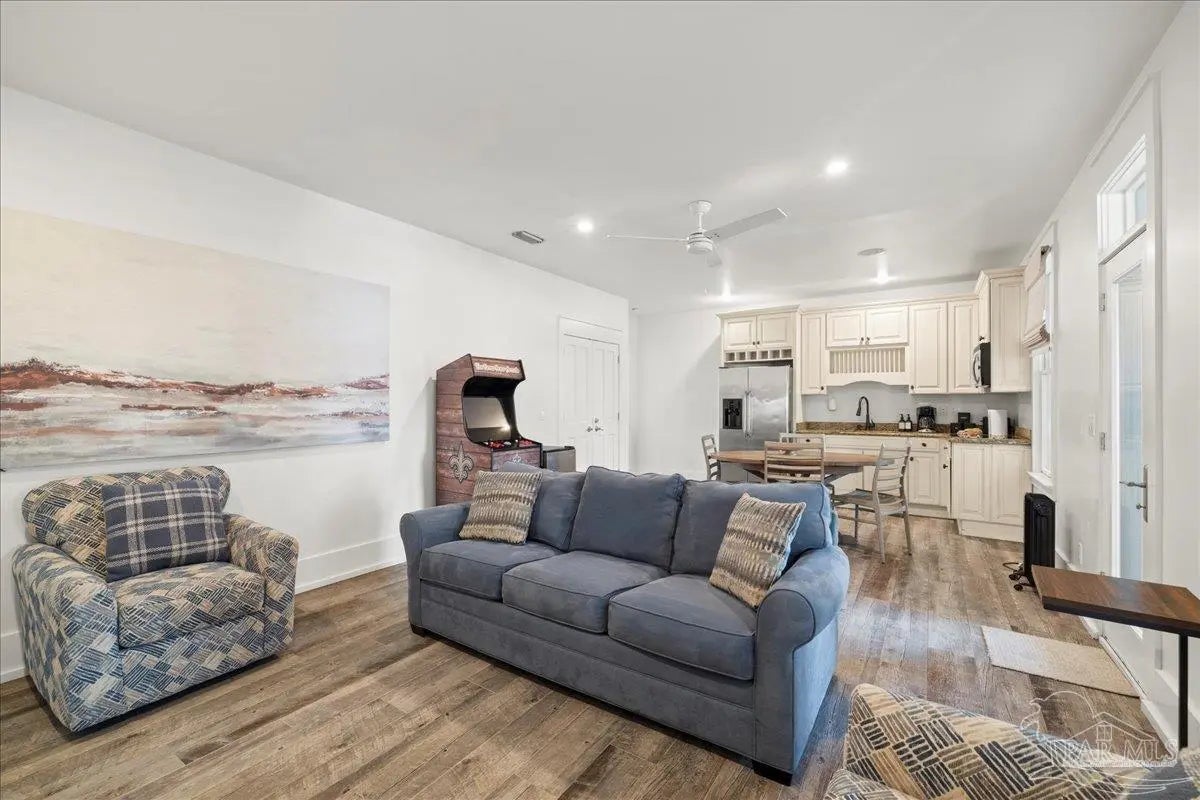 Step into effortless coastal living with this beautifully designed two-story home offering 5 bedrooms and 4 bathrooms—plenty of room for family, friends, or guests. Each level features its own beautiful kitchen and lots of entertaining space, giving you incredible flexibility for multi-generational living, hosting, or rental potential! The thoughtful layout blends comfort and function, making every day feel easy and inviting. A single-car garage and included golf cart make trips around the neighborhood or down to the beach a breeze. Enjoy access to the community pool and the rare convenience of being within walking distance to the beach. Easy access to shopping, dining, and the WATER!