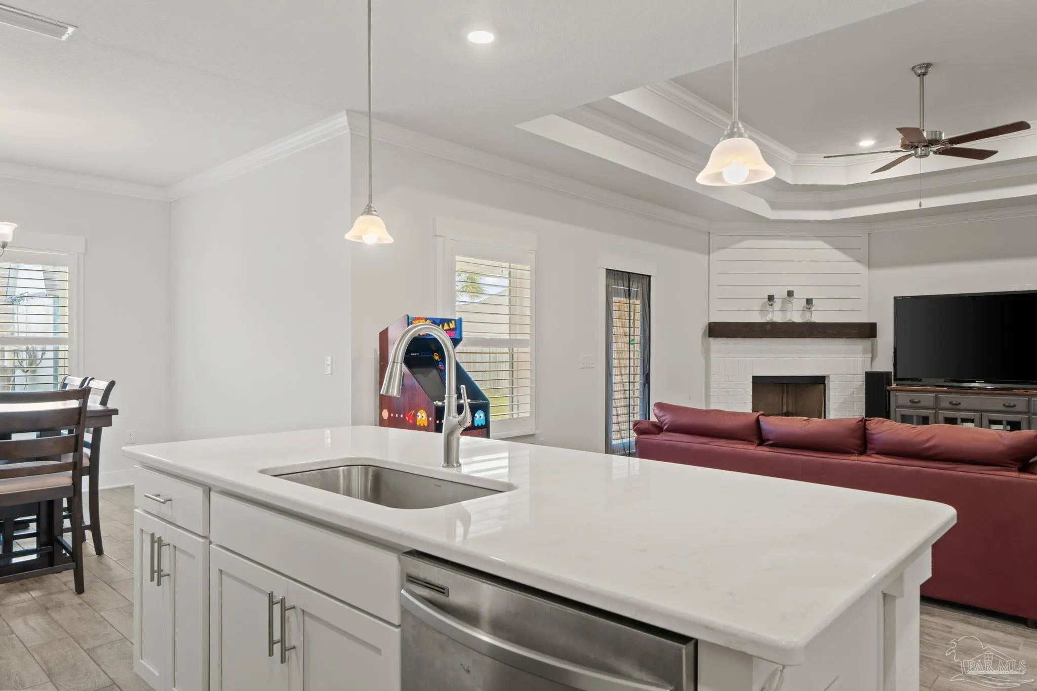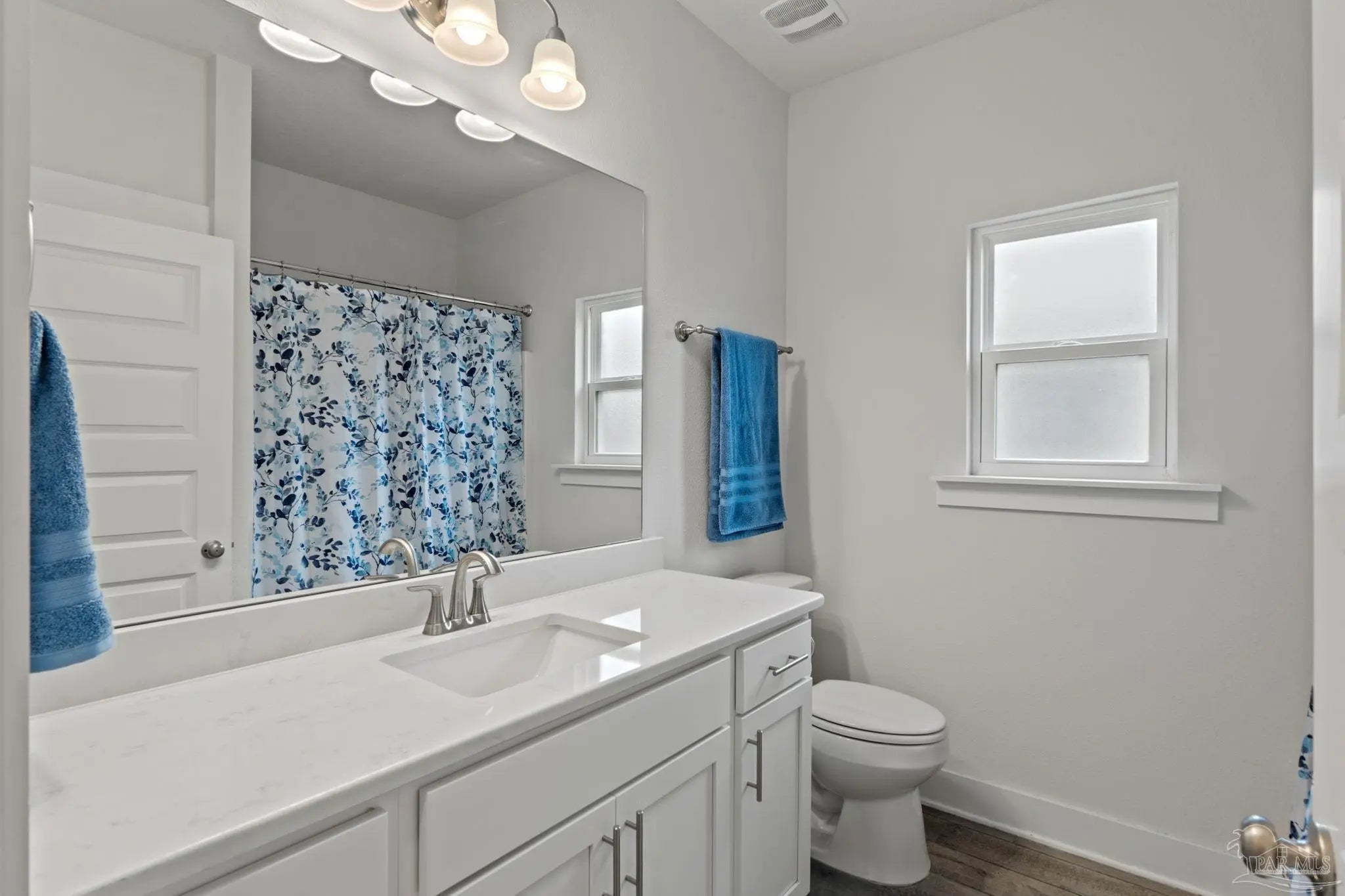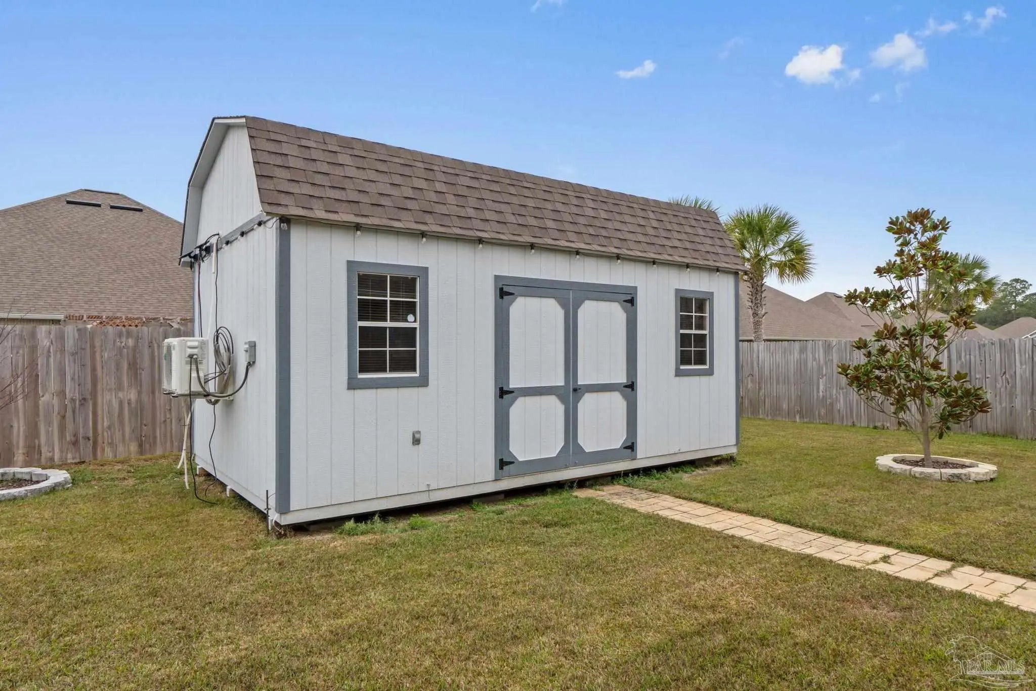 Welcome to this well-maintained home located in the desirable neighborhood of Nature's Cove neighborhood in Gulf Breeze. This inviting property offers an open, split floor plan designed for both comfort and functionality. The kitchen seamlessly opens to the main living area, creating an ideal layout for everyday living and entertaining. Step outside to a fully fenced backyard complete with a 12x20 workshop equipped with a mini-split system, ceiling fan, and electrical outlets, perfect for hobbies, storage, or even a work out room. Interior highlights include wood-like tile flooring, plantation blinds, quartz countertops, stone back splash, stainless steel appliances, and a single-basin sink. Upstairs you will find a large bonus room providing flexible additional living space. All bedrooms are generously sized and feature walk-in closets. Conveniently located near the sugar-white beaches of Navarre Beach and Pensacola Beach, this home offers both comfort and an exceptional coastal lifestyle. Call today for more information or to schedule a private showing.