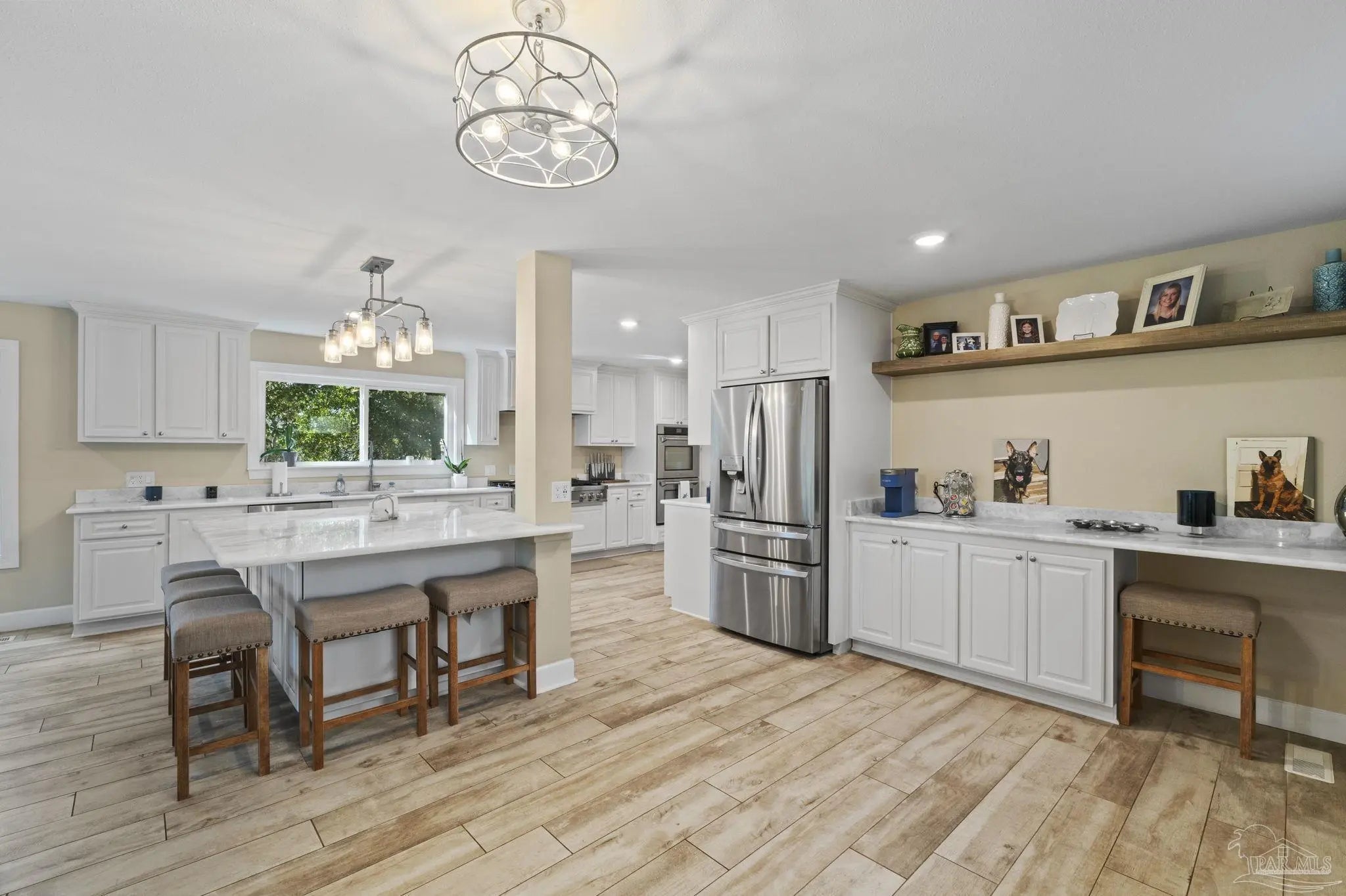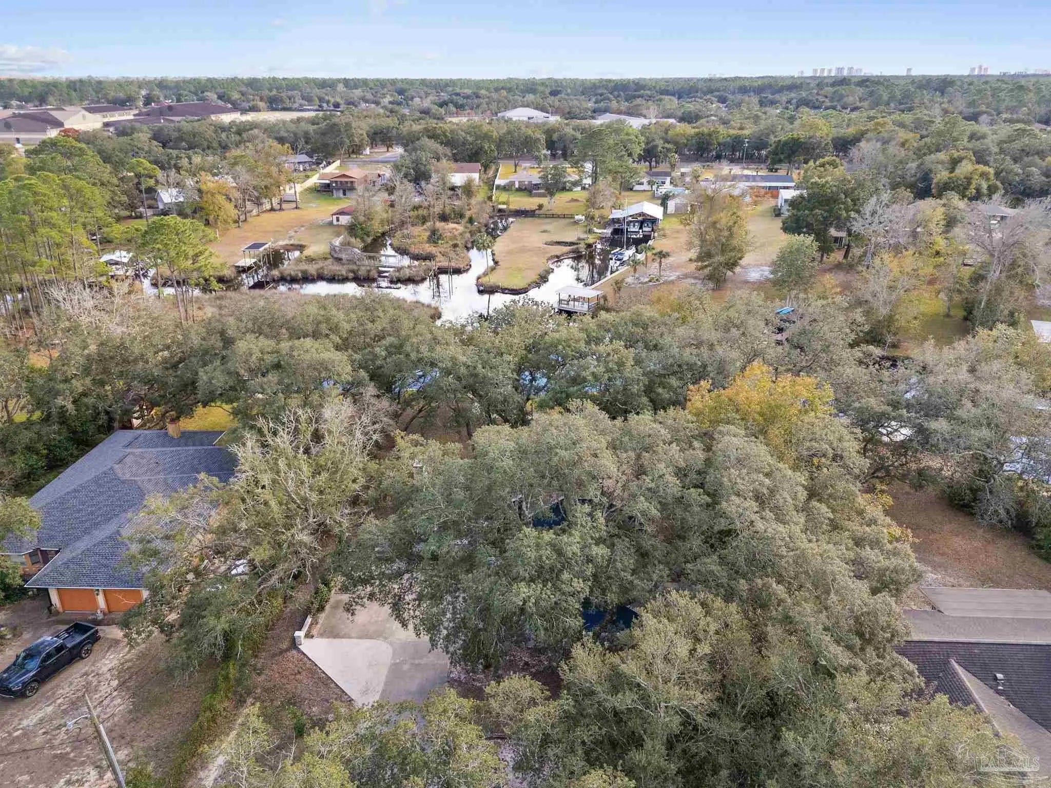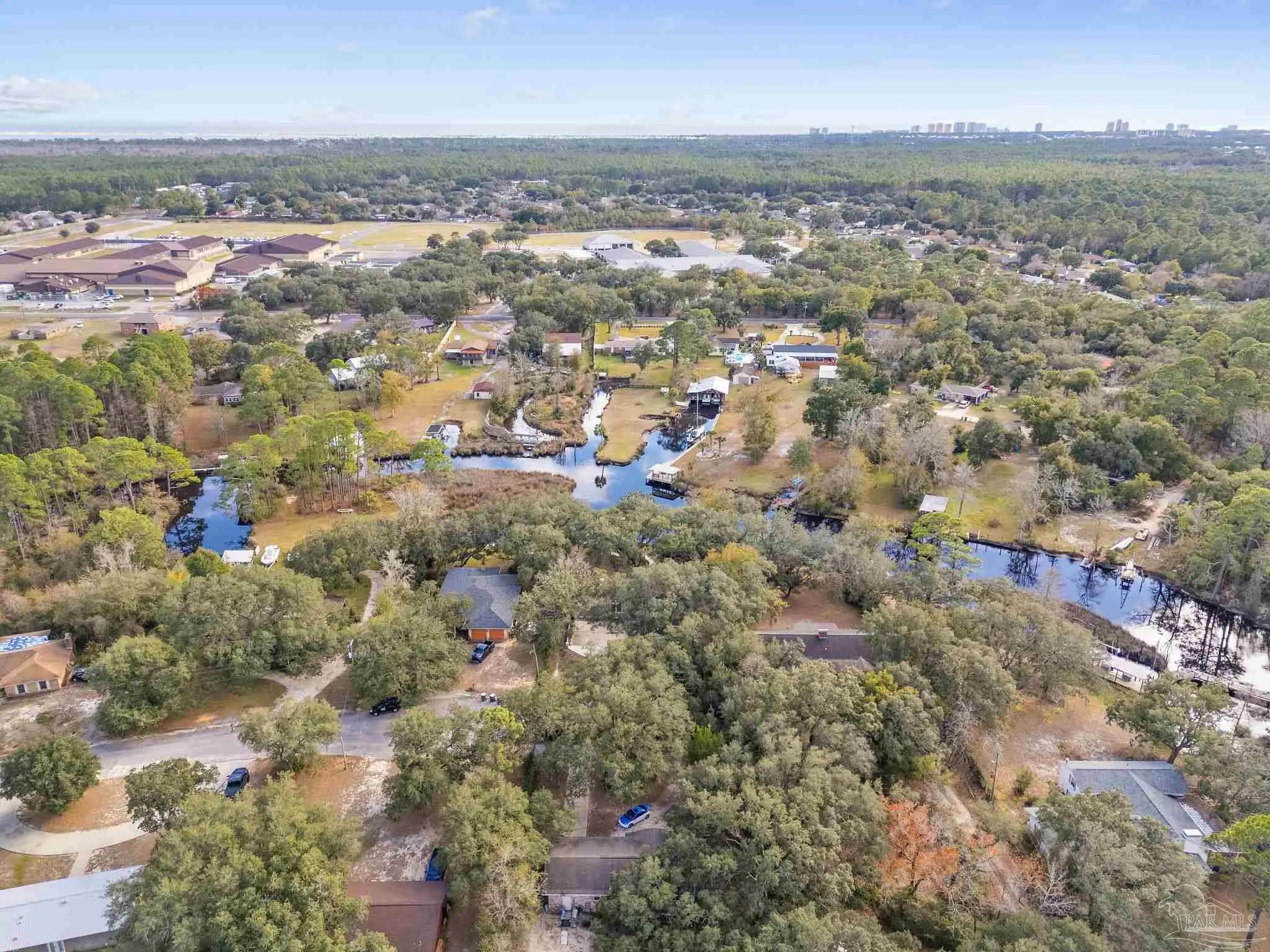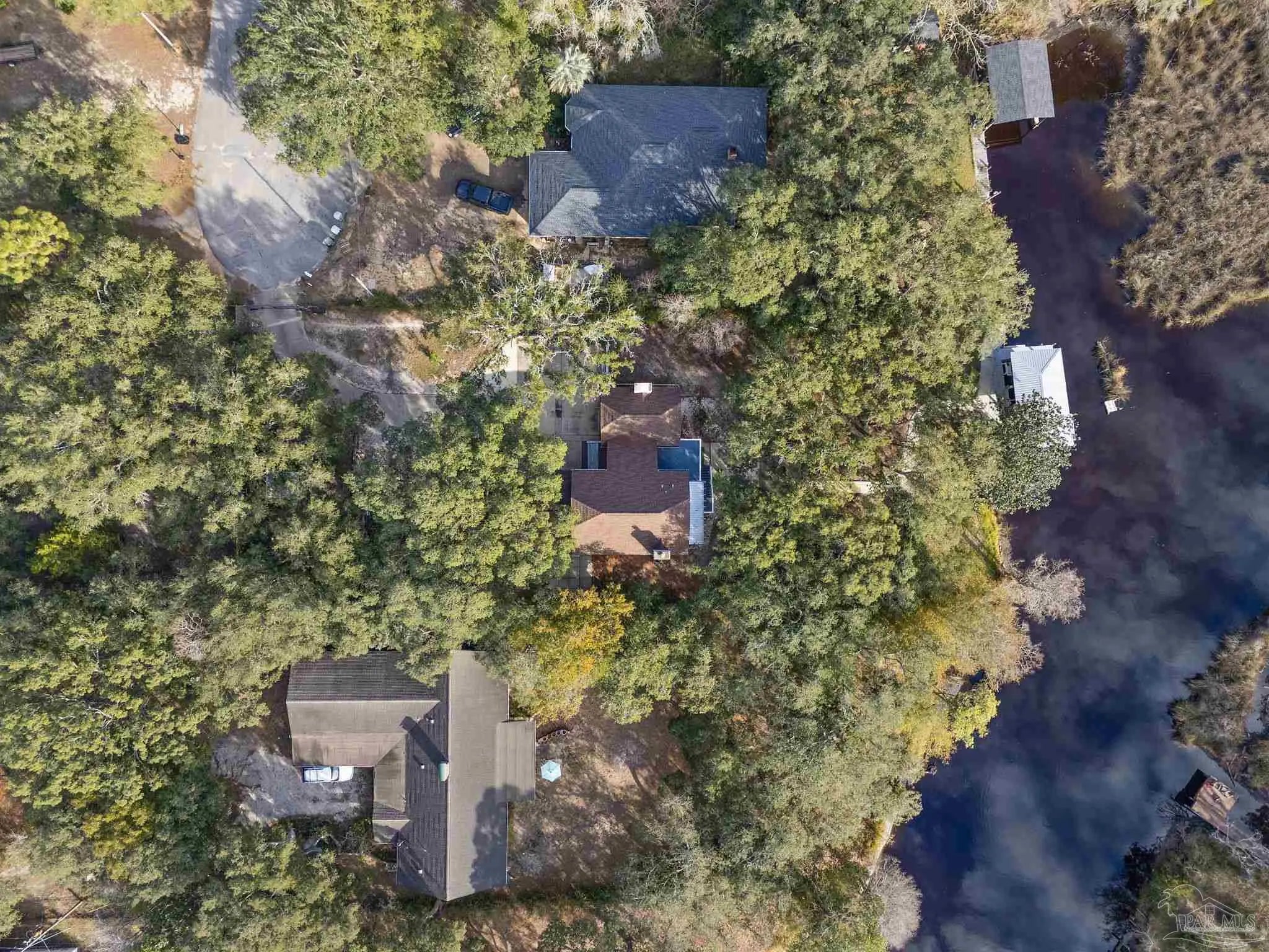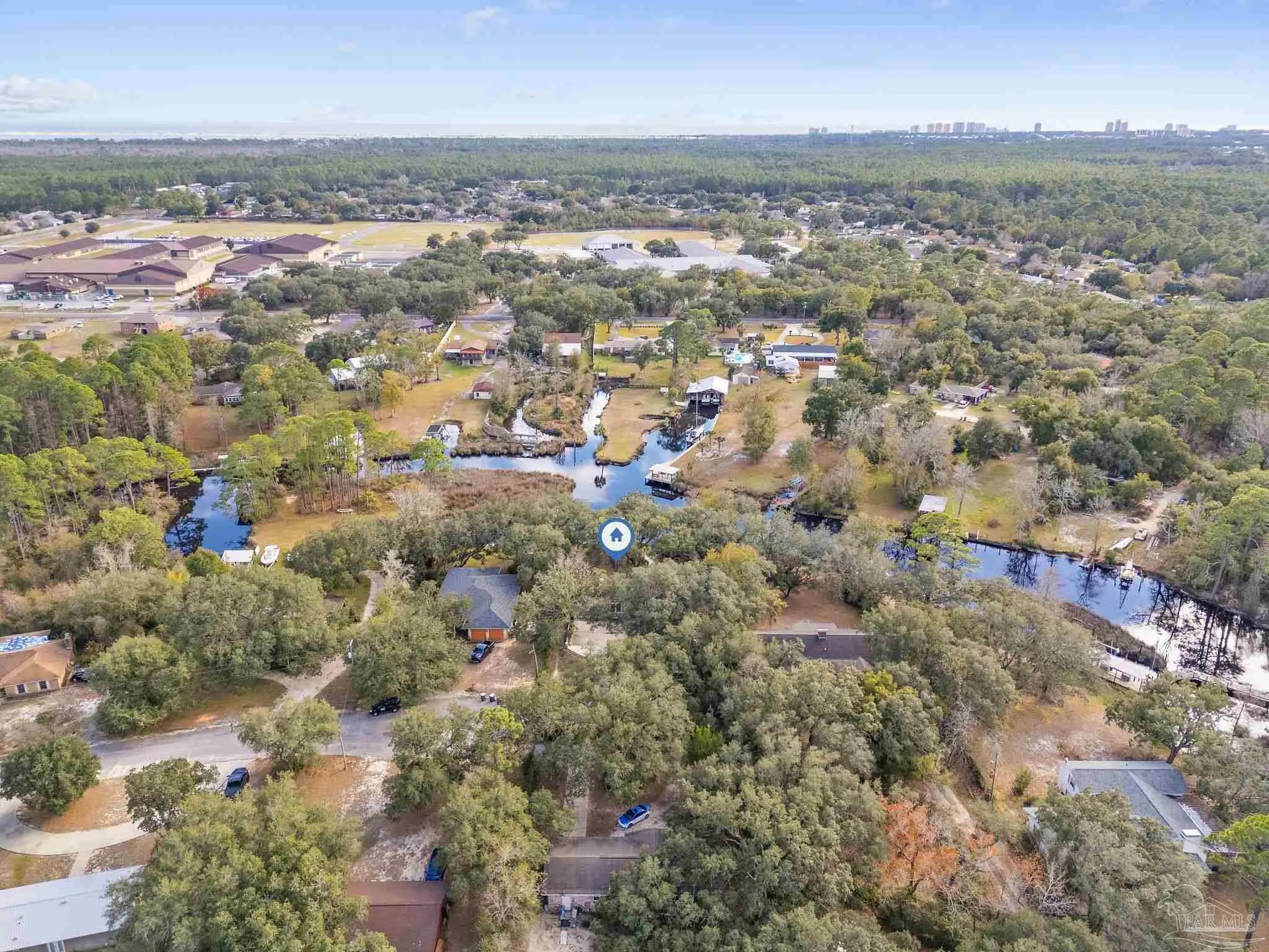 Amazing waterfront home on Weekley Bayou features a boathouse(up to 30’ boat under cover), 13K lb boat lift, jet ski ramp, Sure Step Flow Through Decking, seawall, & fish cleaning station. The gated property’s entryway is to the 2nd floor where you'll find a chef’s kitchen/ dining room combo adorned with custom cabinetry & equipped with large-capacity gas stove, double oven, & center island perfect for meal prep & gatherings with oversized pantry for your storage needs. Breathtaking views of the Bayou from the living room create a serene backdrop for relaxation. This floor also offers a full bath w/walk-in shower plus convenient exterior access & a versatile bonus room-currently a gym-but could be an additional bedroom by adding a closet. On the first floor, you’ll find an expansive guest suite, currently being utilized as a theater room, featuring a luxurious ensuite bath equipped with a tub/shower combo. Adjacent to the guest suite is a versatile bonus room (used as a bedroom). The second kitchen/bar area is a dream for entertainers, featuring a smooth top stove, refrigerator, quartz countertop bar w/sink, & wine fridge. Access to a private entrance makes it an ideal retreat for visitors. The ultimate primary suite is located on the third floor, where luxury meets comfort offering stunning Bayou views. Custom closet w/custom shelving & 4x6 center dressing cabinet. Laundry room conveniently located off the closet. Ensuite bath boasts 2 separate vanities & HUGE walk-in shower w/dual shower heads & rain shower head. This primary suite is designed for relaxation & elegance, making it the perfect sanctuary after a long day. Additional features include: 2025 geo-thermal HVAC system. 2022: impact windows & doors, whole house Generac gas generator, 40’ retaining wall, gutters, 2 mini-splits (first floor), HVAC 3rd floor. 2021: roof, septic tank pumped. Property has 2 capped chimneys & fireplaces walled in. Workshop sold as-is.
