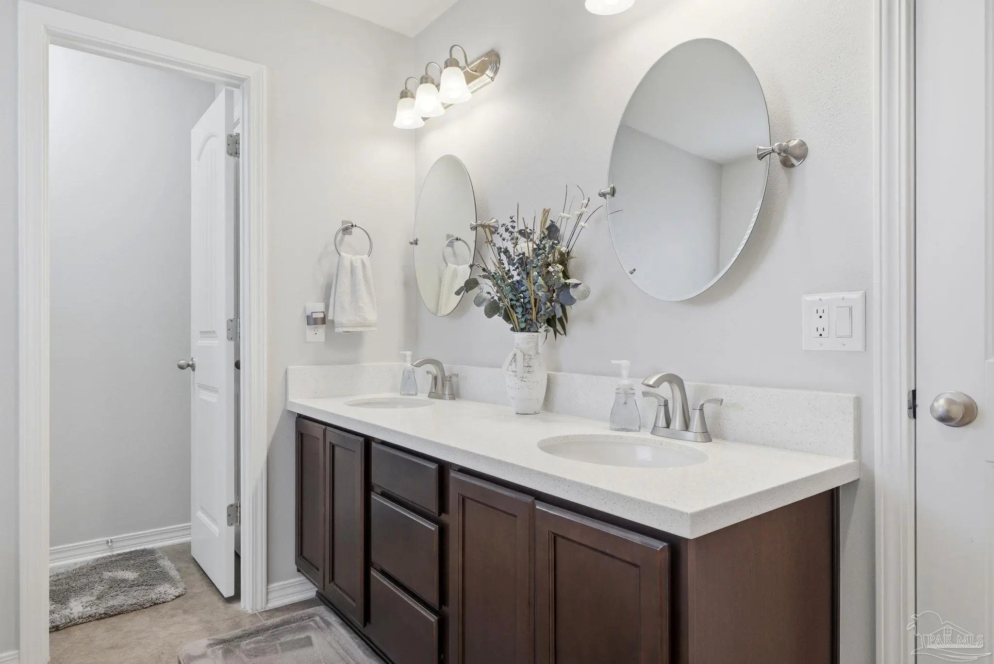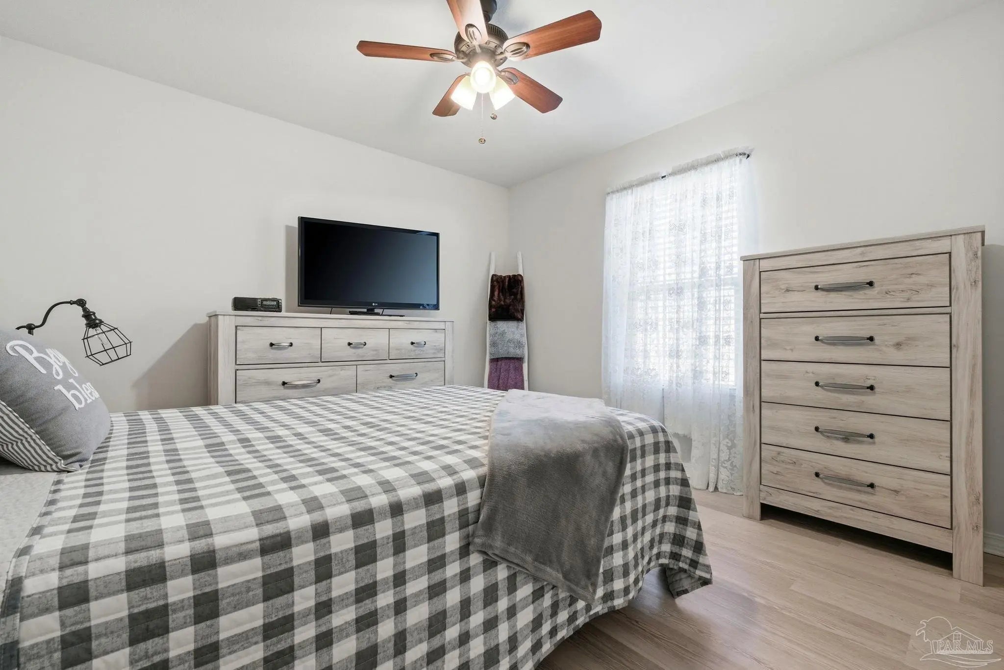 Meticulously maintained and truly move-in ready, this immaculate home features over $45,000 in updates and reflects pride of ownership in every detail. The spacious kitchen is both functional and inviting, offering ample cabinetry and a walk-in pantry, while luxury vinyl plank flooring throughout creates a light, fresh, and welcoming atmosphere. Enjoy effortless indoor-outdoor living with an enclosed sun porch and a generous 40’ x 8’ patio, perfect for entertaining or relaxing year-round. The fully fenced backyard provides privacy and peace of mind, while the front yard has been enhanced with new Zoysia grass, a full sprinkler system, and gutters for easy maintenance. Recent upgrades include a brand-new HVAC system (2025) with a UV light system ensuring comfort and clean, healthy air year-round. The bathrooms have been tastefully updated with quartz countertops, new mirrors, and modern light fixtures throughout the home, adding a contemporary touch. Located in the sought-after Woodlands community in the heart of Pace, this home offers convenient access to nearby amenities and I-10, along with community features including a park and splash pad. Thoughtfully cared for and truly turnkey, this home is inviting, dependable, and ready for its next owner to love.