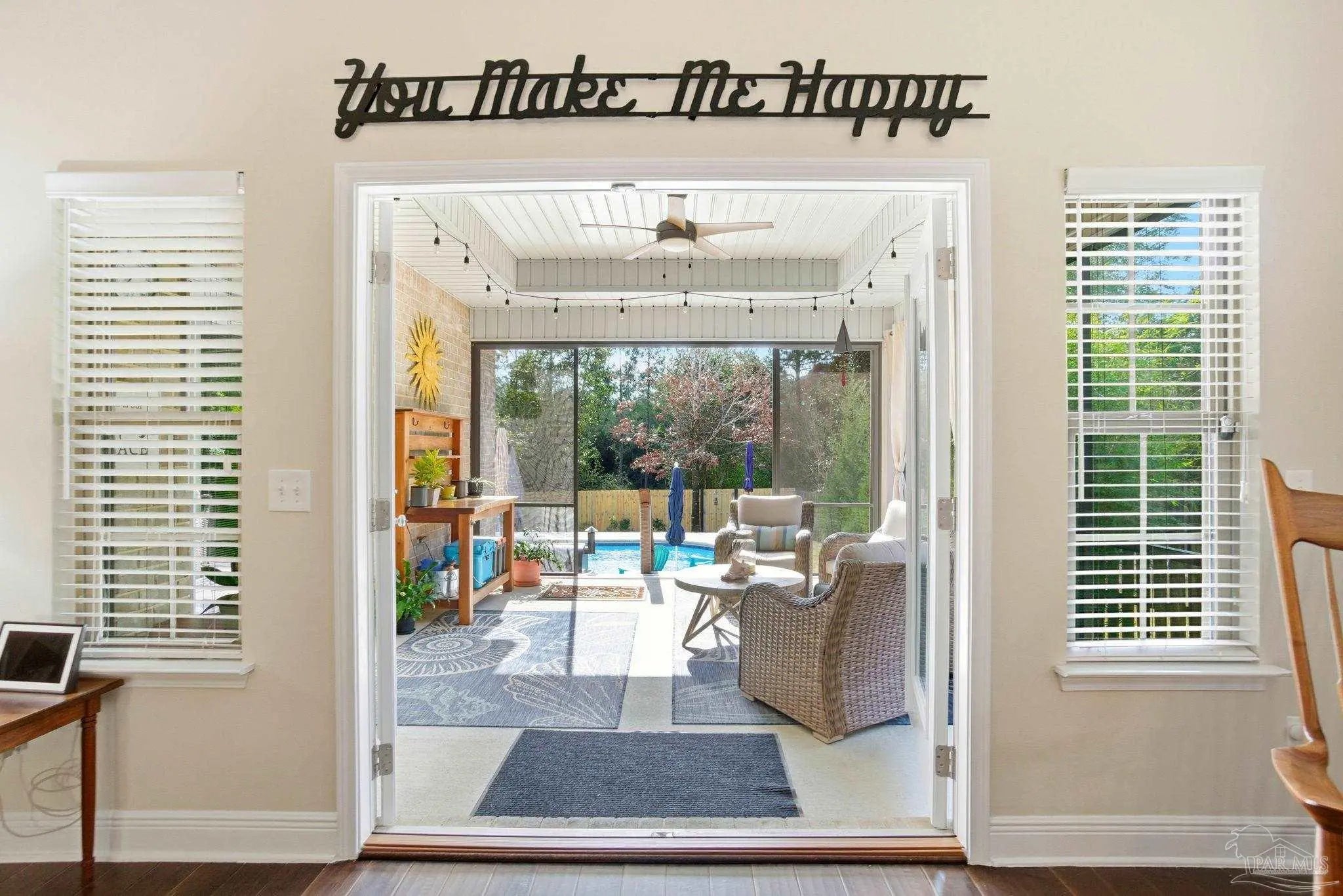 Tucked away in the 24-hour guard-gated community of Nature Trail, this private patio home offers a rare blend of luxury, nature, and effortless living. Backing to protected conservation with no rear neighbors and direct access to one of the community’s scenic walking trails, the setting provides exceptional privacy and a peaceful, resort-style atmosphere. The thoughtfully designed split floor plan features 3 bedrooms and 2 full baths, with hand-scraped hardwood floors throughout the main living areas, tile in baths, and carpeted bedrooms. The open-concept kitchen, dining, and living spaces are enhanced by high ceilings and finished with black granite countertops throughout, offering timeless style and everyday functionality. The primary suite serves as a true retreat with a trey ceiling and cove molding, a spa-inspired ensuite bath with separate vanities, a soaking tub, and two large walk-in closets. Direct access from the primary bedroom to the screened porch allows for seamless indoor-outdoor living. Step outside to your private backyard oasis featuring a gunite swimming pool and screened porch—ideal for relaxing or entertaining while surrounded by preserved green space. Additional highlights include a climate-controlled garage, an active EV car charger, a 220-volt outlet for added flexibility, and a custom wine cork ceiling in the entryway that adds a distinctive design touch. Enjoy sidewalks, year-round community activities, resort-style amenities, and over 7 miles of nature trails, all within a secure, low-maintenance lifestyle designed for comfort, convenience, and peace of mind.