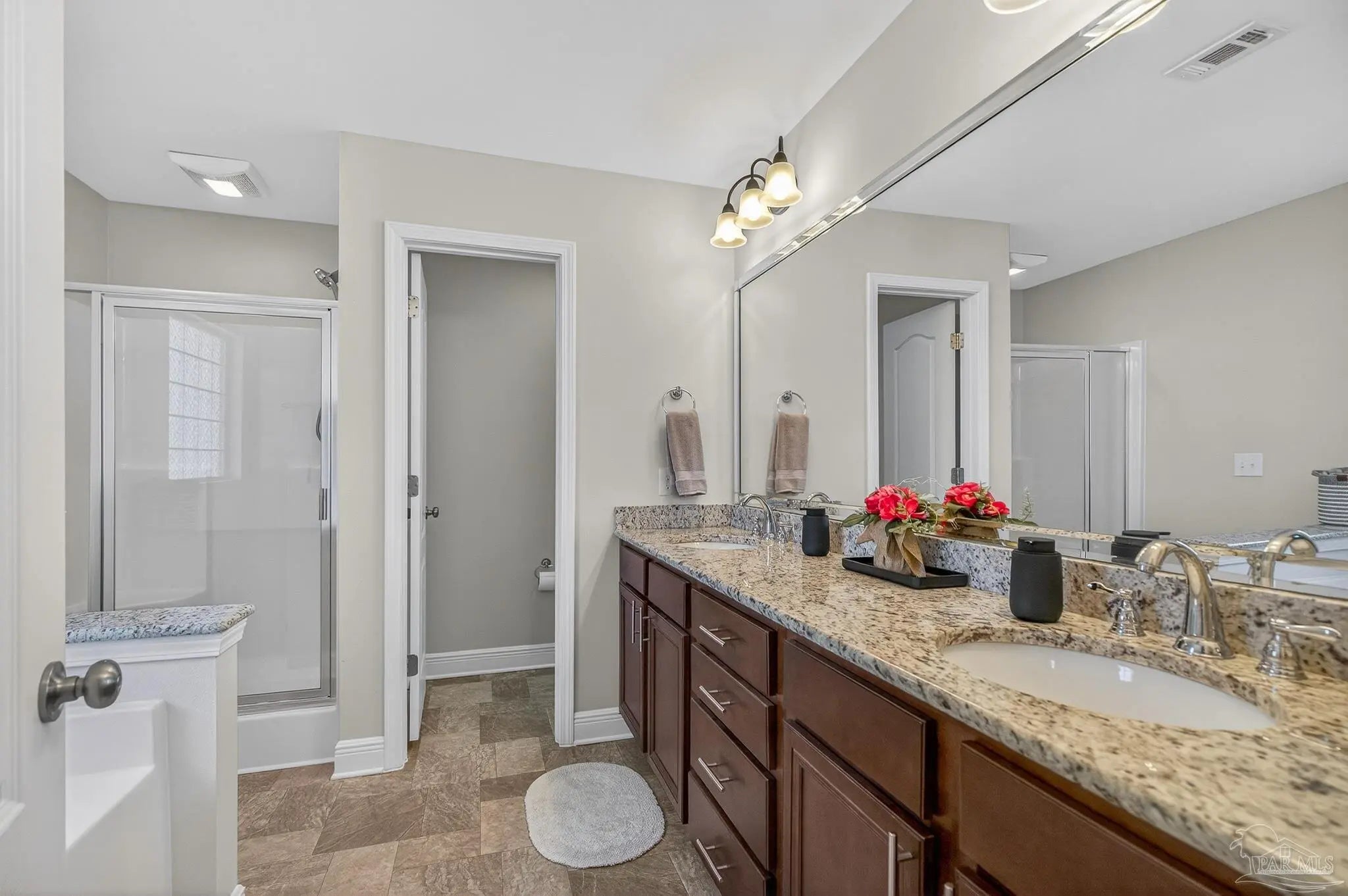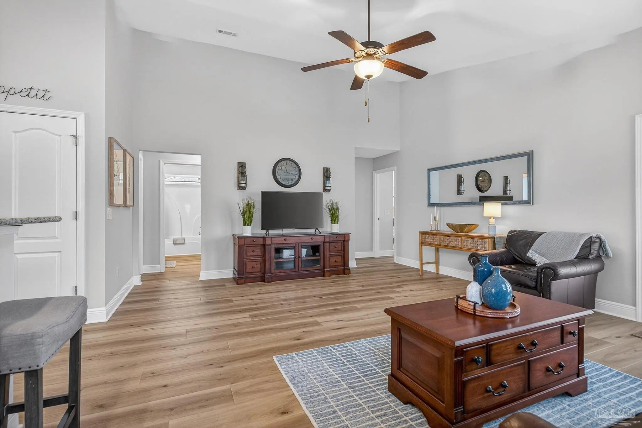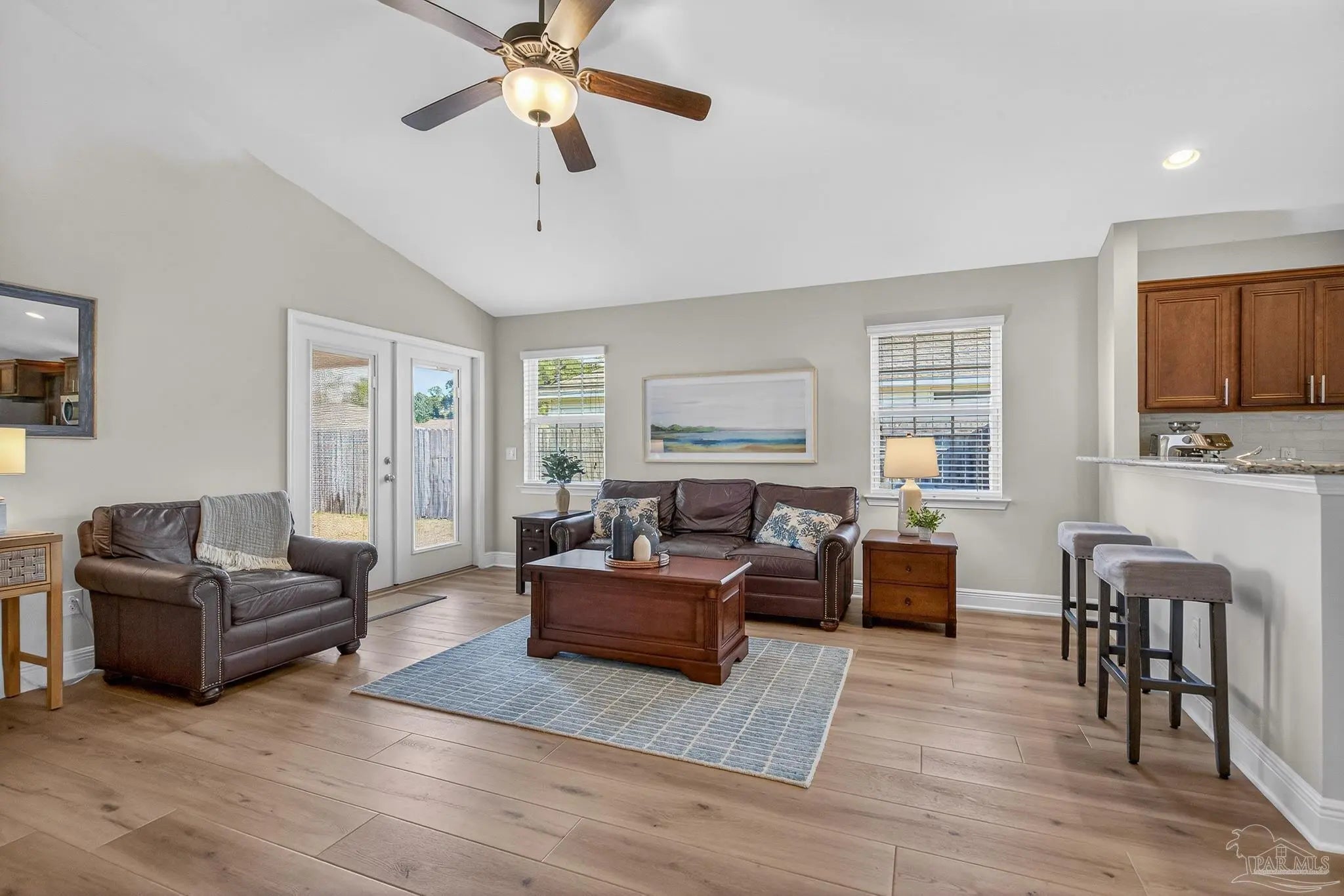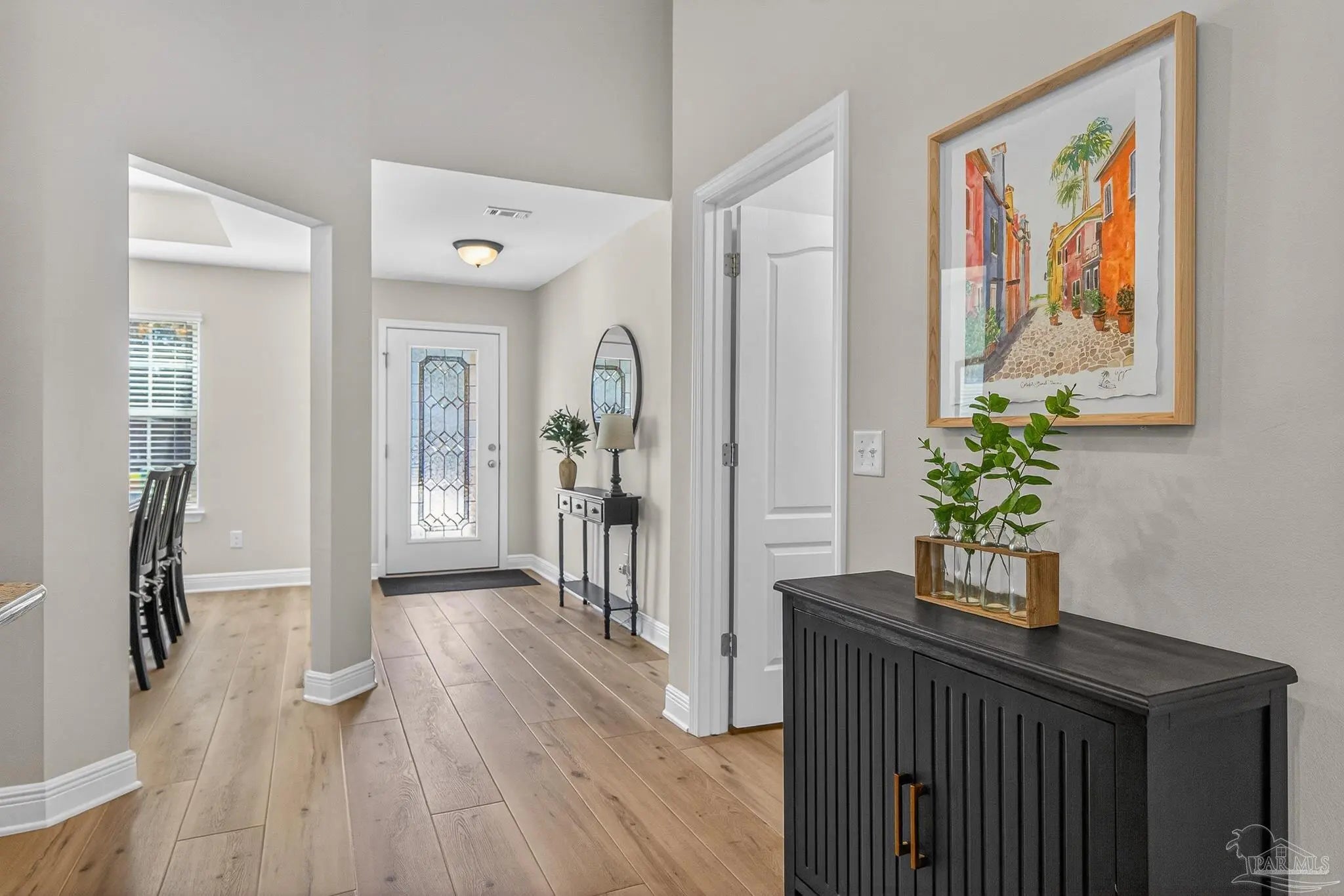 Stop scrolling! MOVE-IN READY! This is “the one”! Welcome home to this meticulously maintained, quality-built beauty in desirable Avalon Estates, a serene neighborhood with sidewalks, a strong sense of community, and fiber internet availability. With its convenient location and over $20k in recent upgrades, this property truly has it all. From the moment you step inside, you’ll notice the light and bright open floor plan and stunning white oak luxury vinyl plank flooring that not only looks beautiful but feels solid and warm underfoot, closely resembling real hardwood as it flows throughout the foyer, dining room, kitchen, family room, guest bath, primary bedroom, and walk-in closet. The kitchen features granite countertops, an imported Italian tiled backsplash, recessed lighting, an island and bar with ample seating, and an extra-deep pantry with a power outlet for added convenience. Open-concept living shines as the kitchen overlooks an expansive great room filled with natural light and soaring ceilings. Entertain guests in the formal dining room or step outside to the large covered porch overlooking a private, fully fenced backyard on a premium oversized lot with room to relax or play. The split floor plan offers two bedrooms and a spacious guest bath with granite countertop on one side of the home, while the primary suite is tucked away on the other. The spacious primary bedroom features a trey ceiling and oversized walk-in closet with over 22 feet of hanging space. The ensuite provides a spa-like retreat with soaking tub, dimmable lighting, separate shower, double vanity with granite, and private toilet area. Practical upgrades include a hurricane-rated garage door and additional electrical outlets in the walk-in closet, laundry room, and garage. Ideally located just 3 miles from I-10 at Exit 22 and less than ten minutes from grocery stores, hardware stores, specialty shopping, a movie theater and much more, this home is a must-see. Schedule your showing today!