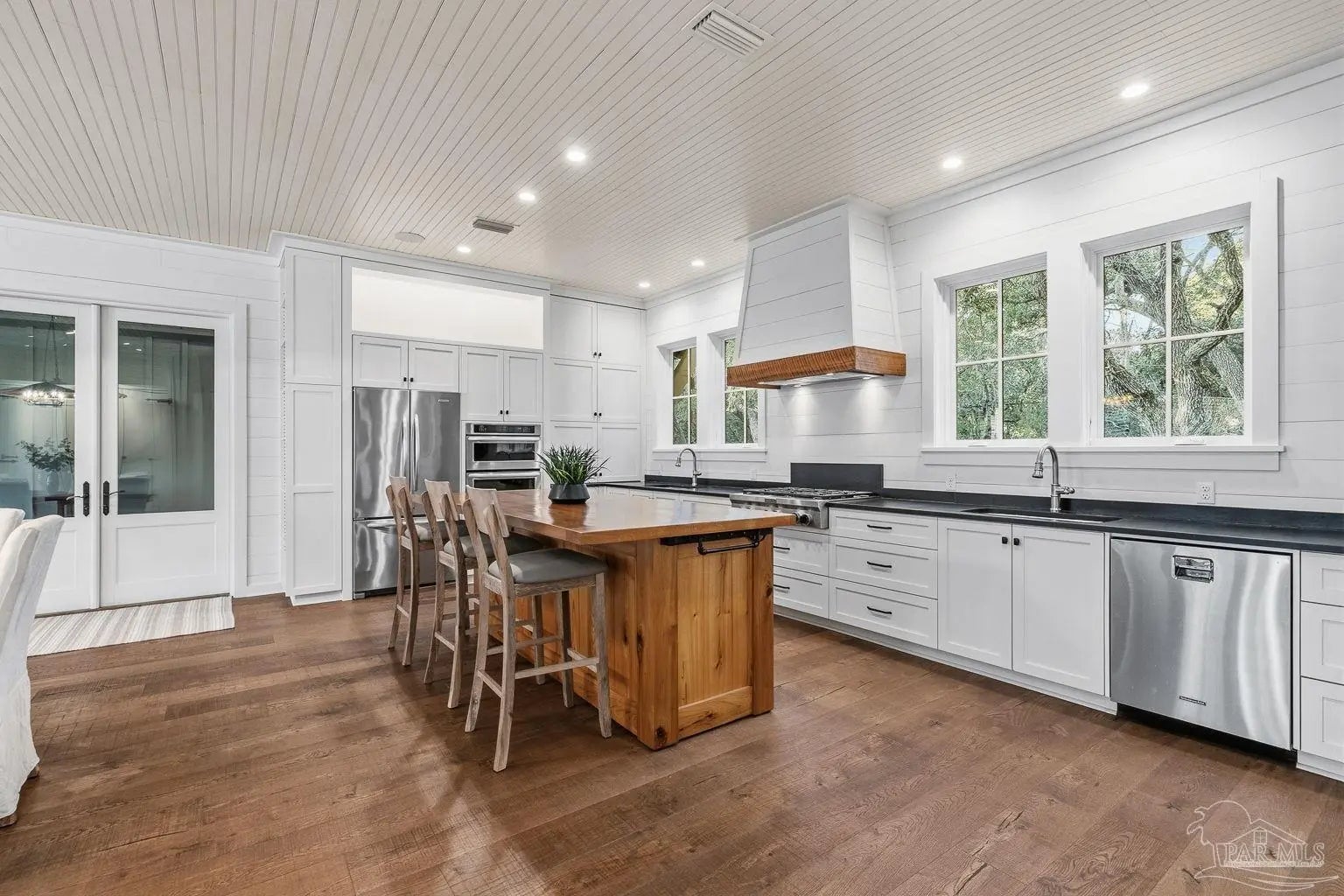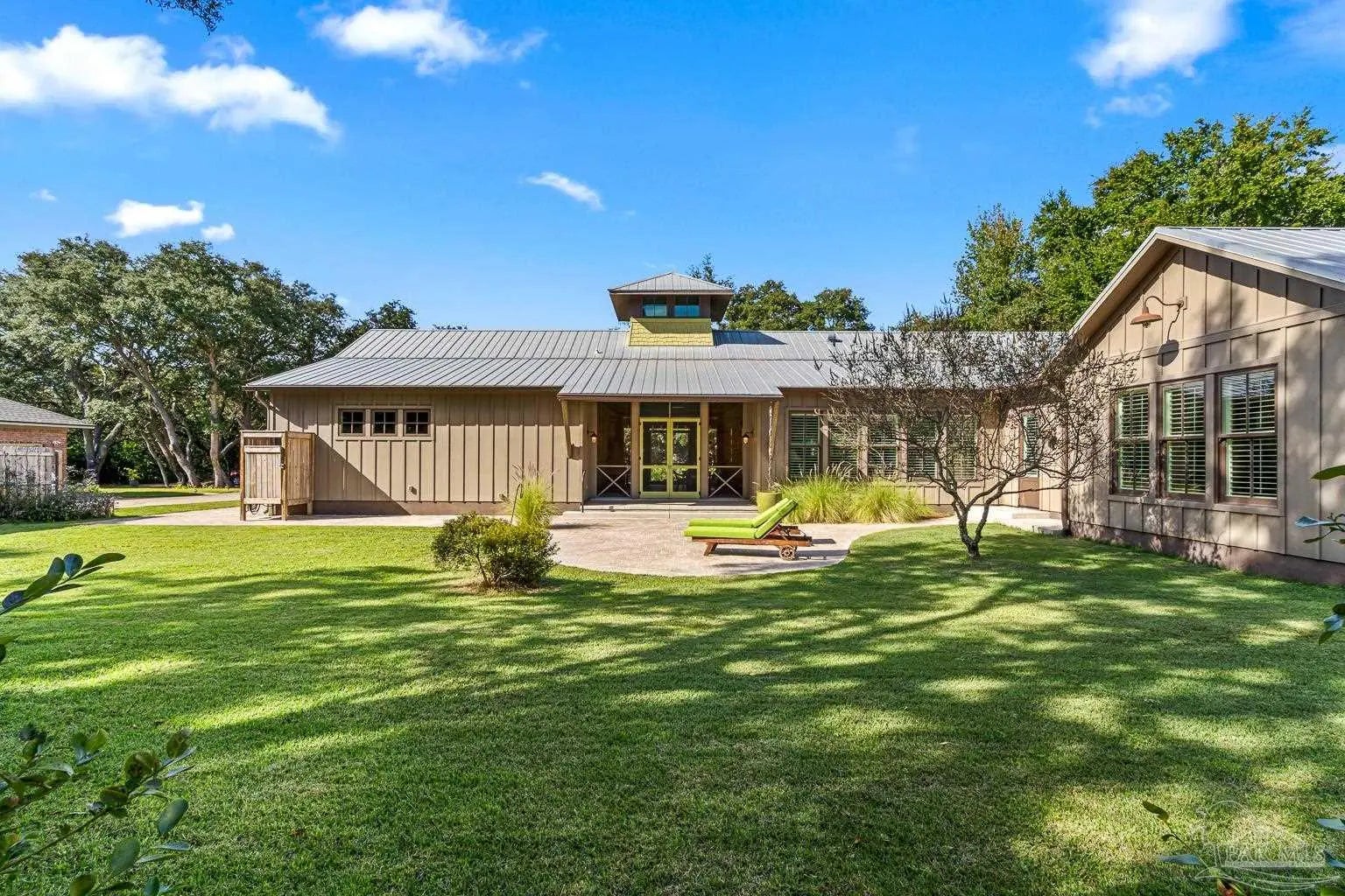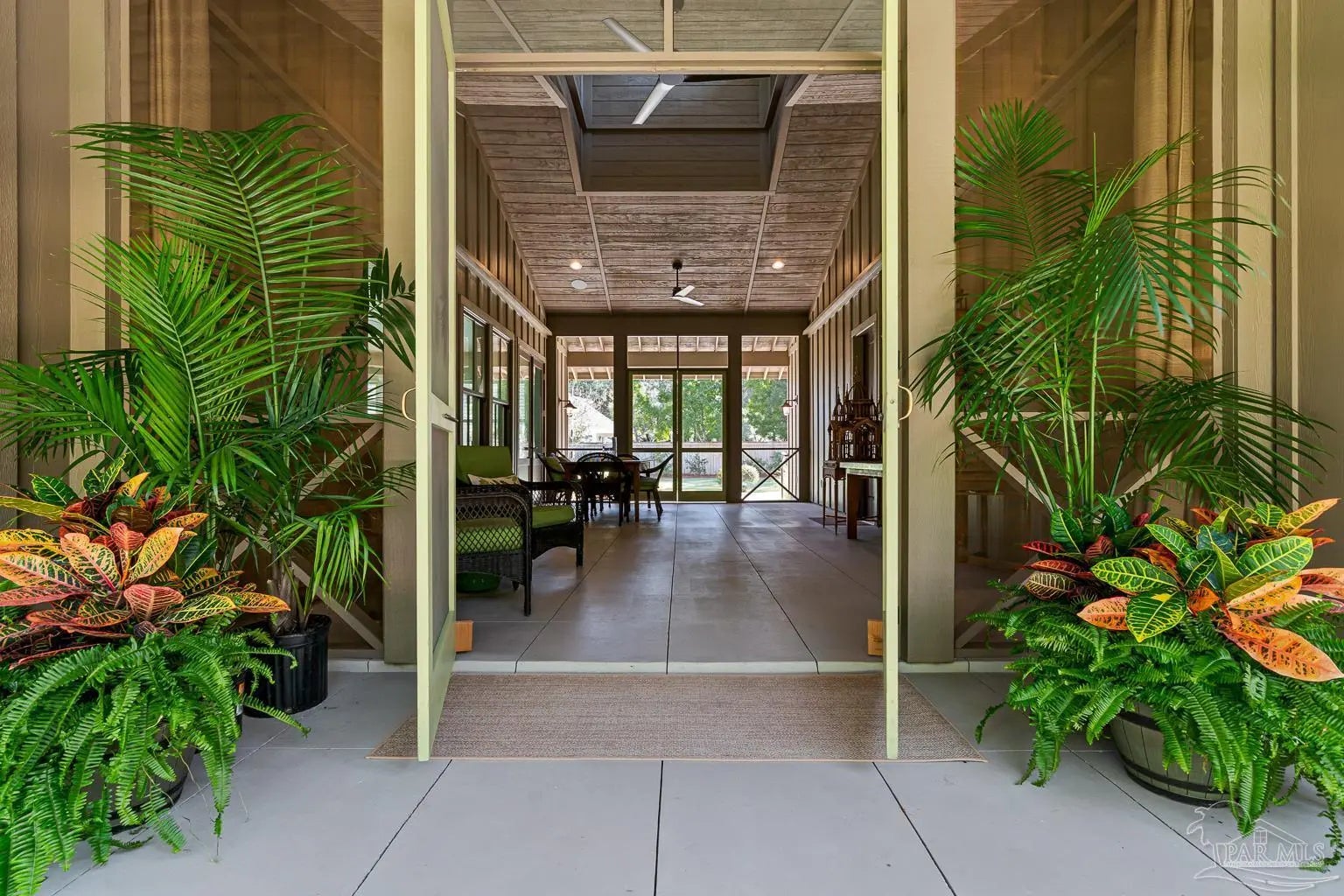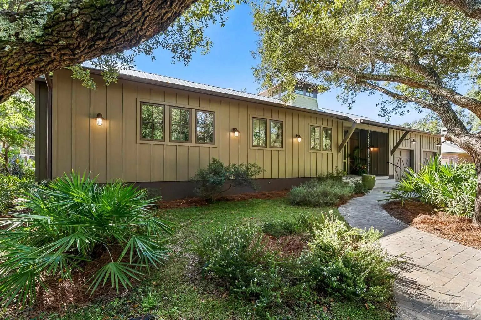 A truly one-of-a-kind luxury custom home, thoughtfully designed with architectural distinction and exceptional craftsmanship, set along a beautifully tree-lined street of Bayshore. This solidly built residence offers three bedrooms, three and a half baths, plus 405 sq ft of versatile bonus flex space, blending timeless design with refined coastal elegance. Rich tongue-and-groove wood details, a striking cypress center island, an oversized pantry, and a custom in-wall double-door dining hutch create a warm yet sophisticated interior. A luxurious screened-in living area serves as a showpiece of indoor-outdoor living, ideal for both entertaining and everyday relaxation. The expansive primary suite features a private sitting area, an expansive closet, and a spa-like bath. A tankless water system provides hot water on demand throughout the home, while a variable-speed air conditioning system delivers quiet, energy-efficient comfort. Additional luxury highlights include a six-burner gas stove, thoughtfully curated finishes, and quality craftsmanship throughout. Outdoors, the beautifully landscaped backyard is lined with blueberry bushes and includes an outdoor shower, with ample room to add a pool if desired. An exceptional opportunity to own a custom-built home where design, comfort, and location come together seamlessly. Please note: An additional document page has been included under the Documents section of this listing due to the extensive number of custom features incorporated throughout the home.