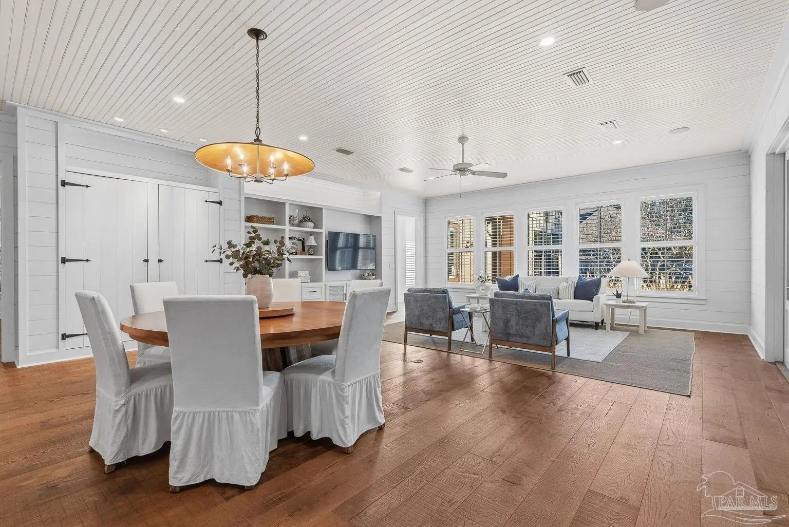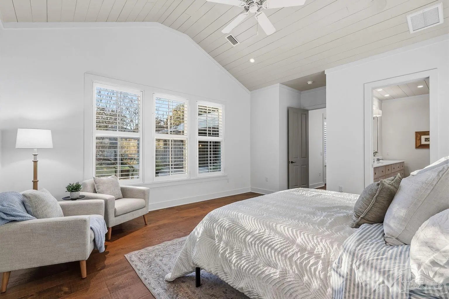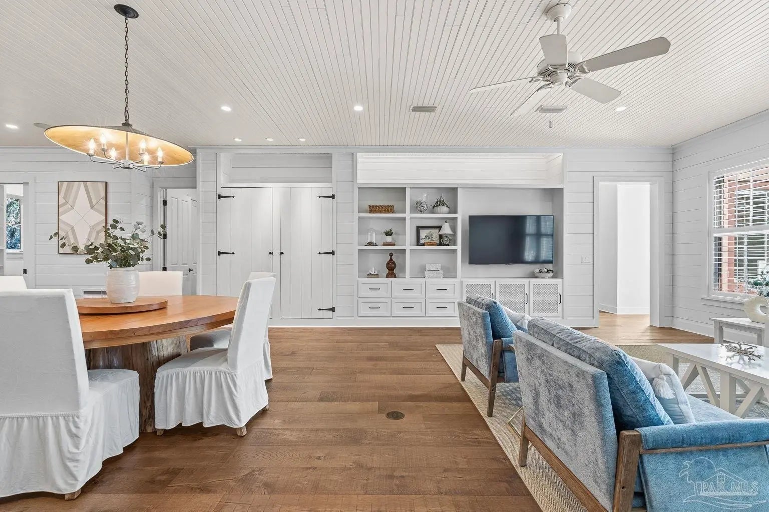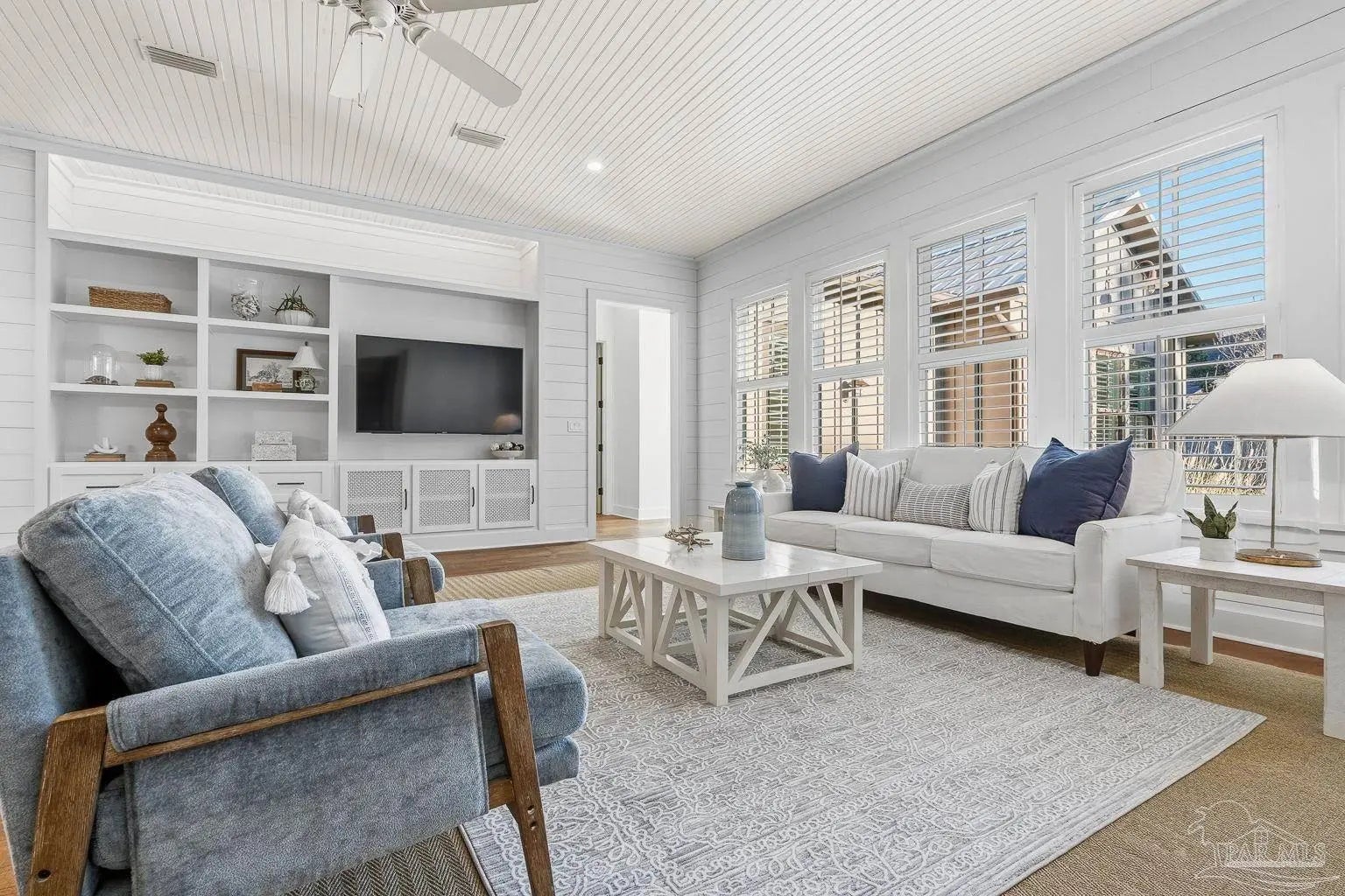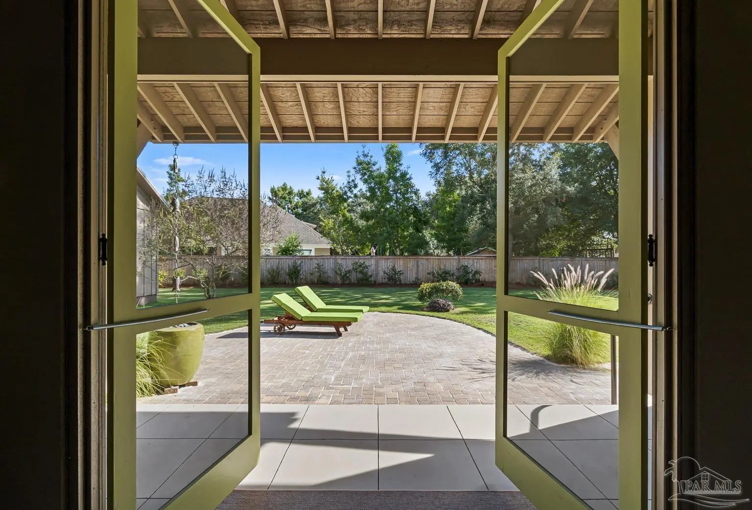 A truly one-of-a-kind luxury custom home, thoughtfully designed with architectural distinction and exceptional craftsmanship, set along a beautifully tree-lined street of Bayshore. This solidly built residence offers three bedrooms, three and a half baths, plus 405 sq ft of versatile bonus flex space, blending timeless design with refined coastal elegance. Rich tongue-and-groove wood details, a striking cypress center island, an oversized pantry, and a custom in-wall double-door dining hutch create a warm yet sophisticated interior. A luxurious screened-in living area serves as a showpiece of indoor-outdoor living, ideal for both entertaining and everyday relaxation. The expansive primary suite features a private sitting area, an expansive closet, and a spa-like bath. A tankless water system provides hot water on demand throughout the home, while a variable-speed air conditioning system delivers quiet, energy-efficient comfort. Additional luxury highlights include a six-burner gas stove, thoughtfully curated finishes, and quality craftsmanship throughout. Outdoors, the beautifully landscaped backyard is lined with blueberry bushes and includes an outdoor shower, with ample room to add a pool if desired. An exceptional opportunity to own a custom-built home where design, comfort, and location come together seamlessly. Please note: An additional document page has been included under the Documents section of this listing due to the extensive number of custom features incorporated throughout the home.