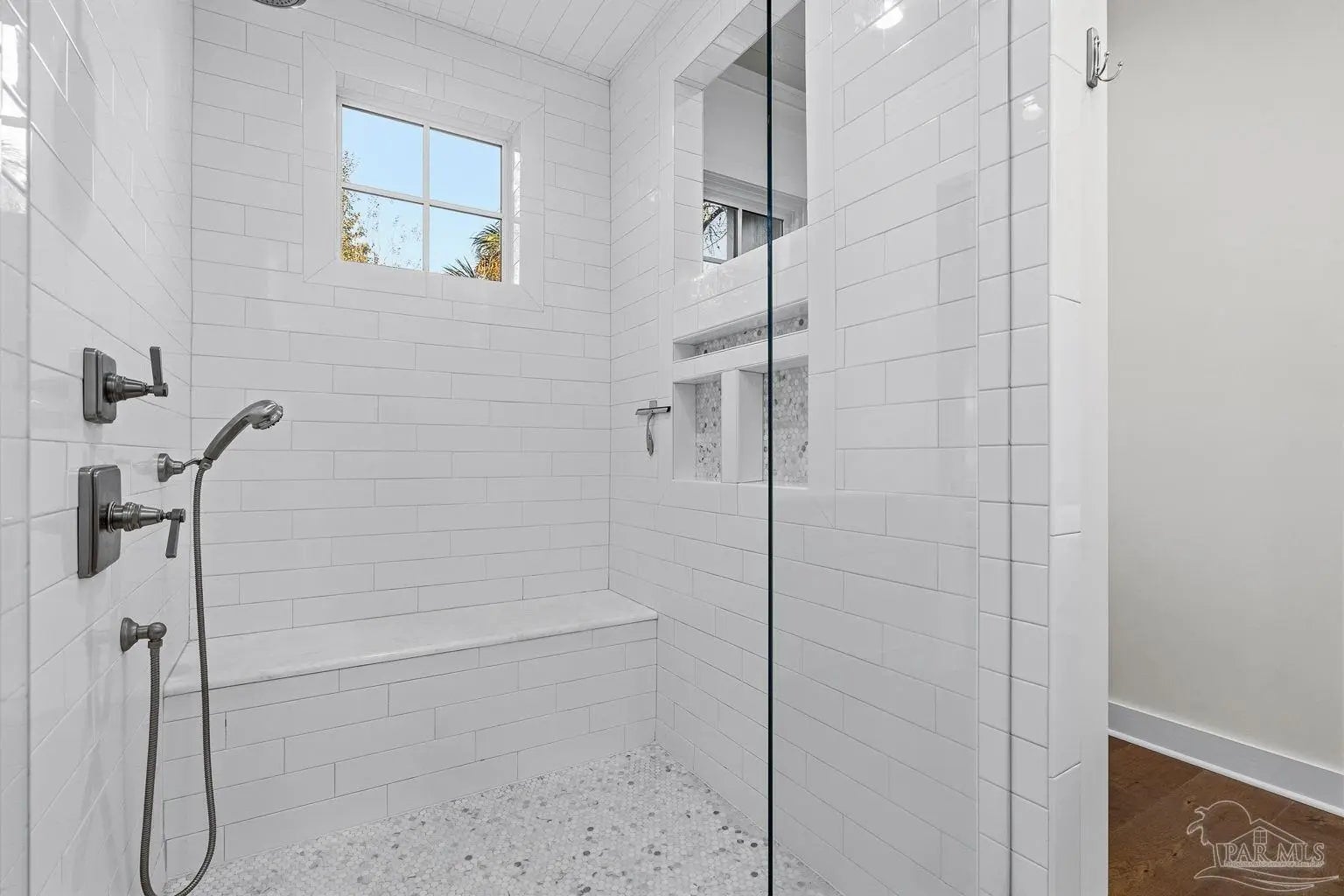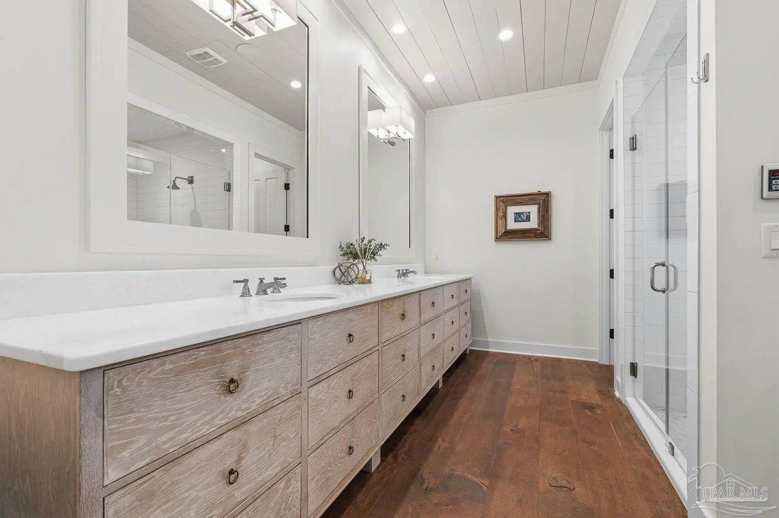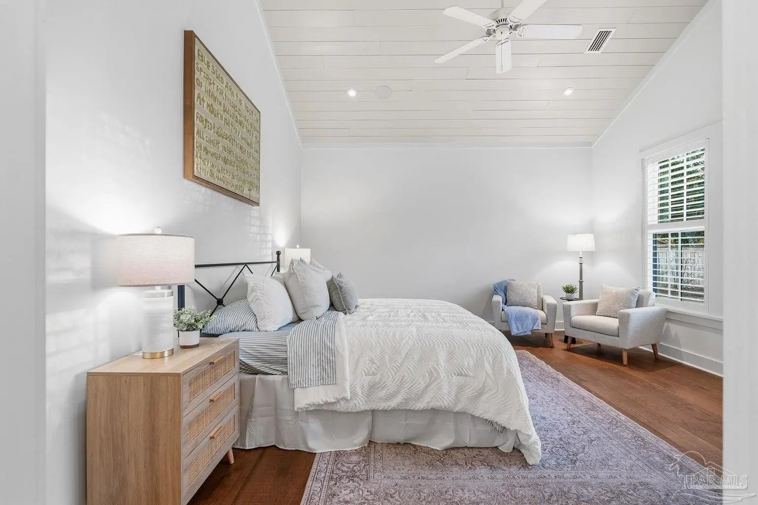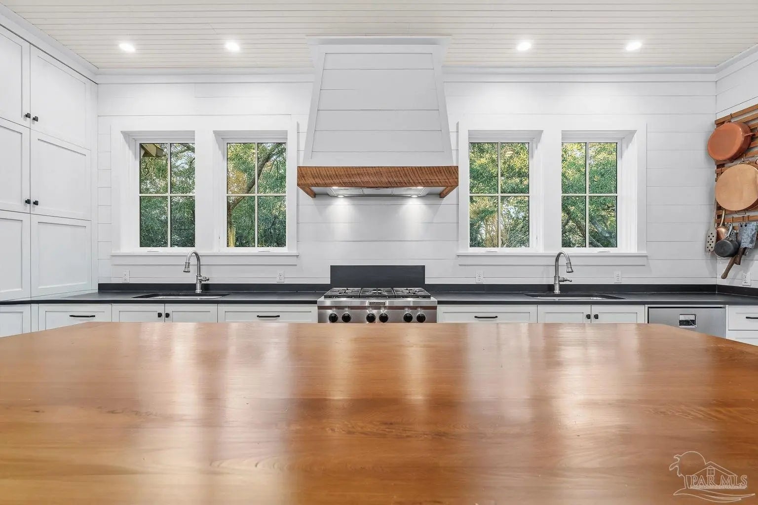 A truly one-of-a-kind luxury custom home, thoughtfully designed with architectural distinction and exceptional craftsmanship, set along a beautifully tree-lined street of Bayshore. This solidly built residence offers three bedrooms, three and a half baths, plus 405 sq ft of versatile bonus flex space, blending timeless design with refined coastal elegance. Rich tongue-and-groove wood details, a striking cypress center island, an oversized pantry, and a custom in-wall double-door dining hutch create a warm yet sophisticated interior. A luxurious screened-in living area serves as a showpiece of indoor-outdoor living, ideal for both entertaining and everyday relaxation. The expansive primary suite features a private sitting area, an expansive closet, and a spa-like bath. A tankless water system provides hot water on demand throughout the home, while a variable-speed air conditioning system delivers quiet, energy-efficient comfort. Additional luxury highlights include a six-burner gas stove, thoughtfully curated finishes, and quality craftsmanship throughout. Outdoors, the beautifully landscaped backyard is lined with blueberry bushes and includes an outdoor shower, with ample room to add a pool if desired. An exceptional opportunity to own a custom-built home where design, comfort, and location come together seamlessly. Please note: An additional document page has been included under the Documents section of this listing due to the extensive number of custom features incorporated throughout the home.
