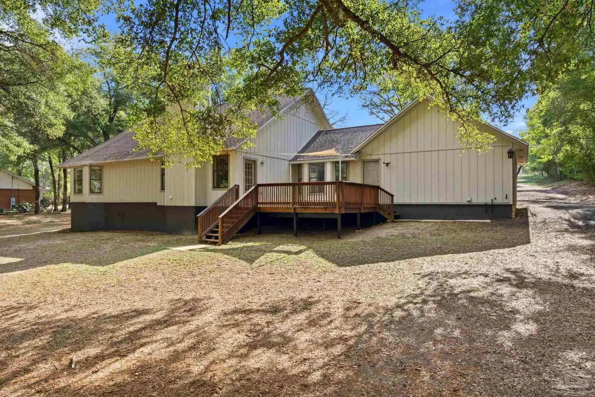 Welcome to this charming 3 bedroom, 2 bathroom, ranch style home in the established Kennedy Lakes neighborhood in Crestview! Good location for military commuters to Duke Field or Eglin AFB! With no HOA! Nestled on a large 0.94 acre lot, this home features all newer major systems - including a 2020 roof, 2021 high-efficiency HVAC with heat pump, and a 2021 high-efficiency water heater. Inside, this home offers a functional floor plan with plenty of character - featuring a large step down living room with wood burning fireplace, a formal dining area, and kitchen with large, custom-made butcher block island. The opposite side of the home has the spare bathroom and 3 large bedrooms, including the primary bedroom with ensuite and a bay window offering a view of the expansive backyard. Just off the kitchen is a door to the backyard deck - just waiting for you to fire up the grill and entertain! The 2 car garage features a 220v 50 amp outlet, ideal for high powered tools, heavy duty shop equipment, or electric vehicle charging. On the side of the house, just off the garage, the property features an extended asphalt driveway - perfect for additional vehicles, storing your boat, or parking your RV! With an added bonus for the new owner - the power lines will be underground on the whole street!