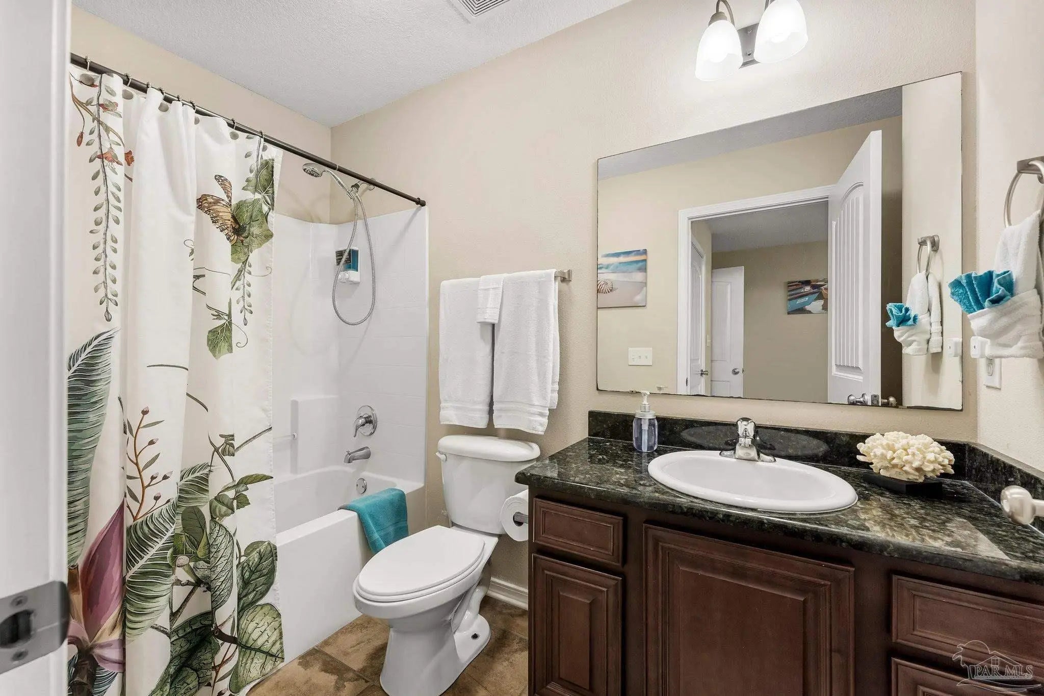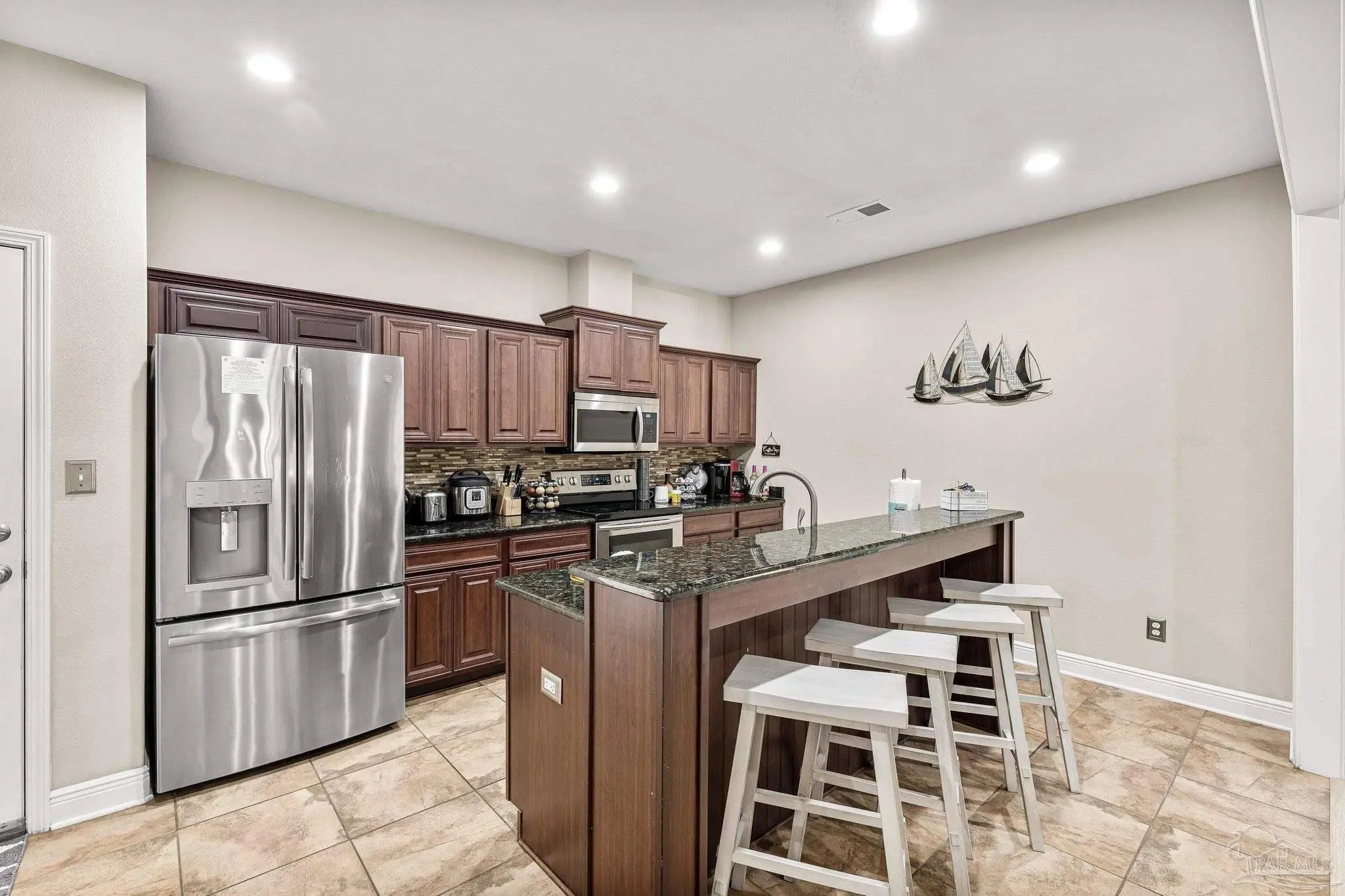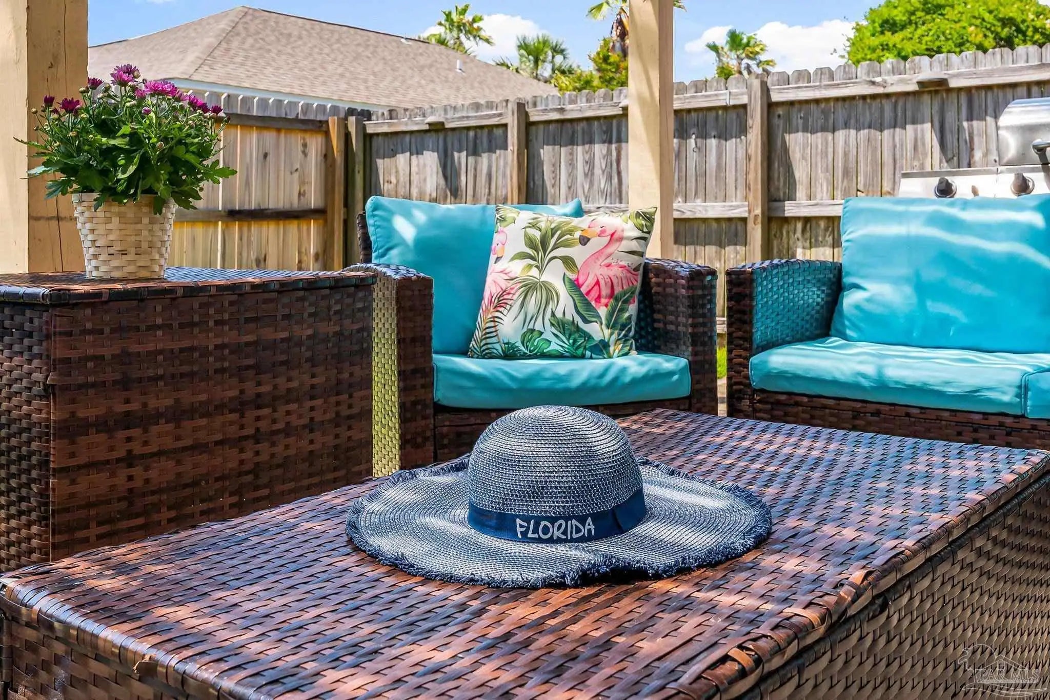 Soundside living just minutes from the white sandy beaches of Navarre Beach. Located in the waterfront community of Soundside Moorings, this fully furnished, turnkey home offers the perfect blend of coastal lifestyle and everyday comfort. Enjoy access to the Santa Rosa Sound with common areas ideal for relaxing, picnicking, or soaking in the coastal breeze. Inside, the open and split floor plan features 9 ft ceilings and brand new luxury vinyl plank flooring in the main living areas. The kitchen includes granite countertops, stainless steel appliances, and ample cabinetry, making it both functional and inviting for everyday living or entertaining. The spacious primary suite offers tray ceilings, a large walk-in closet, and an en suite bath with granite counters, a double vanity, soaking tub, and separate shower. Upstairs, additional bedrooms provide flexible space, including a guest suite with its own private bath. Step outside to a beautiful backyard with a pergola, perfect for summer evenings, grilling, or unwinding after a day at the beach. Flood Zone X. Conveniently located near Navarre Beach, Hurlburt Field, shopping, dining, and all that the Emerald Coast has to offer.