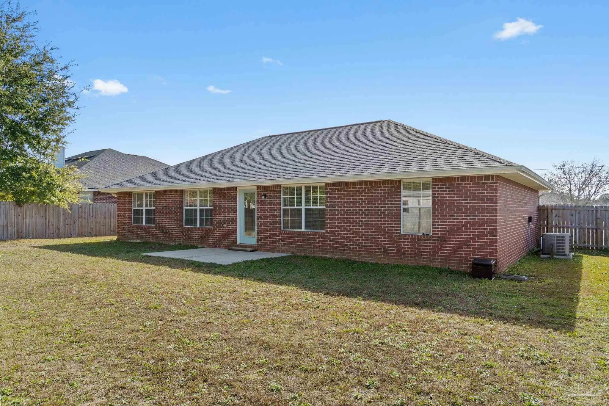 Welcome home to this perfectly located Pace retreat with no HOA! Have peace of mind with this move in ready home featuring a 2020 roof, a new 2022 HVAC system, and a water heater that will be replaced prior to closing! Conveniently located near Pace High School, Benny Russell Park, less than 30 minutes to Pensacola International Airport, and near plenty of restaurants, shopping, and the Emerald Coast's beautiful beaches! This all brick beauty features four bedrooms and two bathrooms in a split floor plan on a large lot. Enter the front door and you'll find closet storage at the entryway as it opens to the spacious living room with a vaulted ceiling and updated ceiling fan. One bedroom is located off the living room perfect for a 4th bedroom, office, playroom, or man cave! Down the hallway you'll find two more bedrooms and a shared bath. The kitchen is open to an eat in kitchen space and features plenty of white cabinets and stainless steel appliances along with a designated pantry. From the kitchen you'll enter into the interior laundry room that leads to the two car garage. The owner's suite is a great size and the master bath showcases double vanities, a shower/tub combo, private water closet, and a walk-in closet. Outside you'll enjoy a spacious fenced in backyard complete with a storage building for additional convenience! Welcome home to Spencer Oaks Landing! you'll find two more bedrooms and a shared bath. The kitchen is open to an eat in kitchen space and features plenty of white cabinets and stainless steel appliances along with a designated pantry. From the kitchen you'll enter into the interior laundry room that leads to the two car garage. The owner's suite is a great size and the master bath showcases double vanities, a shower/tub combo, private water closet, and a walk-in closet. Outside you'll enjoy a spacious fenced in backyard complete with a storage building for additional convenience! Welcome home to Spencer Oaks Landing!
