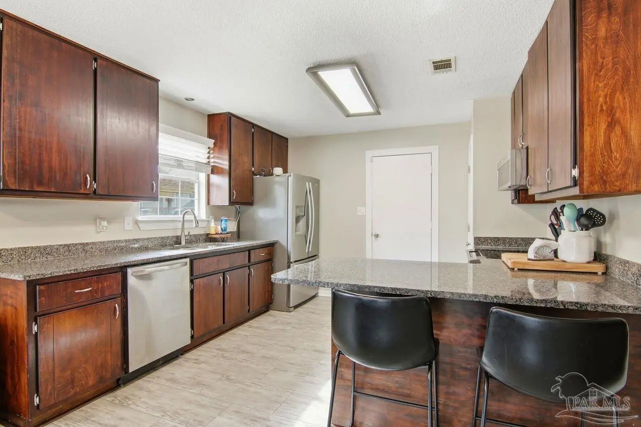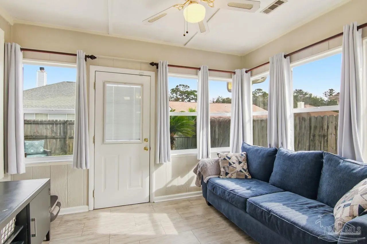 This updated 3-bedroom, 2-bath patio home offers comfort, style, and convenience, perfectly located for an easy commute to Hurlburt AFB. The interior features durable LVP flooring throughout the main living areas, kitchen, and baths, with plush carpet in the bedrooms for added comfort. The kitchen is both functional and inviting, showcasing granite countertops, updated lighting, and a convenient breakfast bar that opens to the main dining space. The beautiful stone fireplace in the living room serves as a focal point, creating a warm and welcoming atmosphere. One bedroom features built-in bookcases, making it ideal for a home office, library, or flex space. The spacious primary suite includes a well-appointed ensuite bath with a granite double vanity. Additional living space is found in the Florida room, perfect for relaxing or entertaining year-round, with easy access to the open patio for outdoor enjoyment. This low-maintenance home blends thoughtful updates with a practical layout in a location that supports both everyday living and an effortless commute.