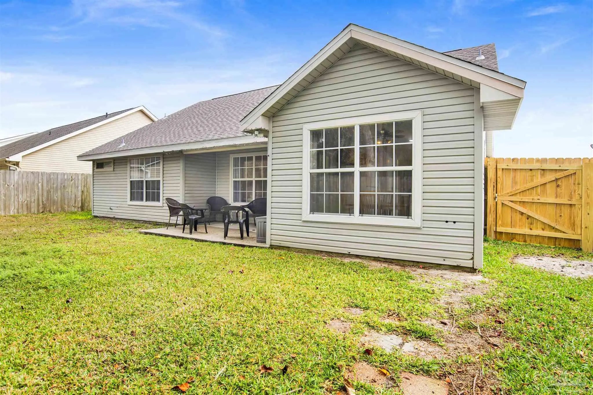 This well-maintained, fully furnished 3-bedroom, 2-bath home offers comfort and convenience in a desirable location. Features include a 2-car garage, spacious primary bedroom, covered back porch, and a privacy-fenced backyard. Located within walking distance to Tiger Point Park, as well as nearby shopping and restaurants. Tile flooring throughout the living and wet areas, with carpet in the bedrooms. Roof replaced in 2022.