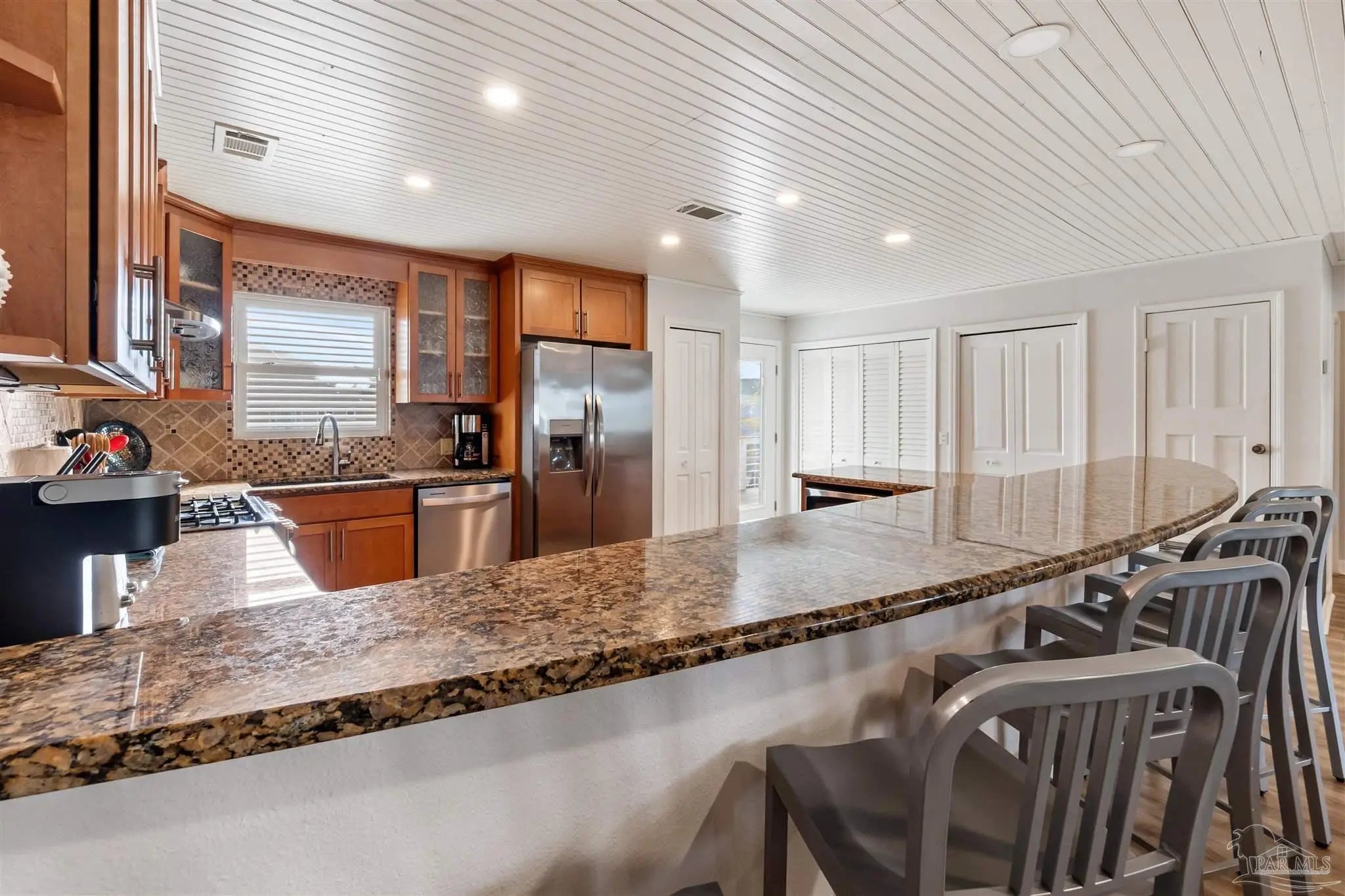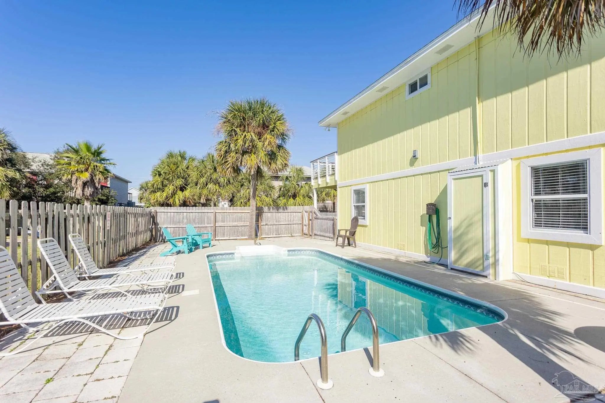Discover your perfect getaway just one block away from the beach! This large single-family residence features four spacious bedrooms and two large bathrooms, boasting 1,716 square feet of beautiful living space. Situated on a large corner lot, this property has had several updates including granite countertops, tiled showers, tankless hot water heater, brand new Trex decks/railings, interior LVP flooring, and much more! Fantastic views of the Gulf and sound are available from your 2nd floor front and back decks and 3rd floor terrace. Upon entering the property you are greeted with a large open living space which flows into the kitchen/dining. Wood ceilings and windows on both sides allows for natural light to flow into the room. The kitchen features a gas range, secondary oven, stainless steel appliances, wood cabinets, and granite countertops. Off the kitchen is a separate closet for laundry and two pantries. All four bedrooms branch off the living space with two on each side. Each bedrooms offers generous space, large closets, and access to one of two bathrooms each featuring tile showers and granite vanities. Gulf access is a quick walk directly down from the house and a large pool on the side of the property allows for relaxation while at the house. An oversized garage allows for indoor parking and ample storage is provided. This property is a high grossing rental property with yearly gross income levels around $100,000/annually. This property also comes fully furnished and ready for you or your guests to enjoy! Don’t miss this incredible opportunity to own a piece of coastal paradise!