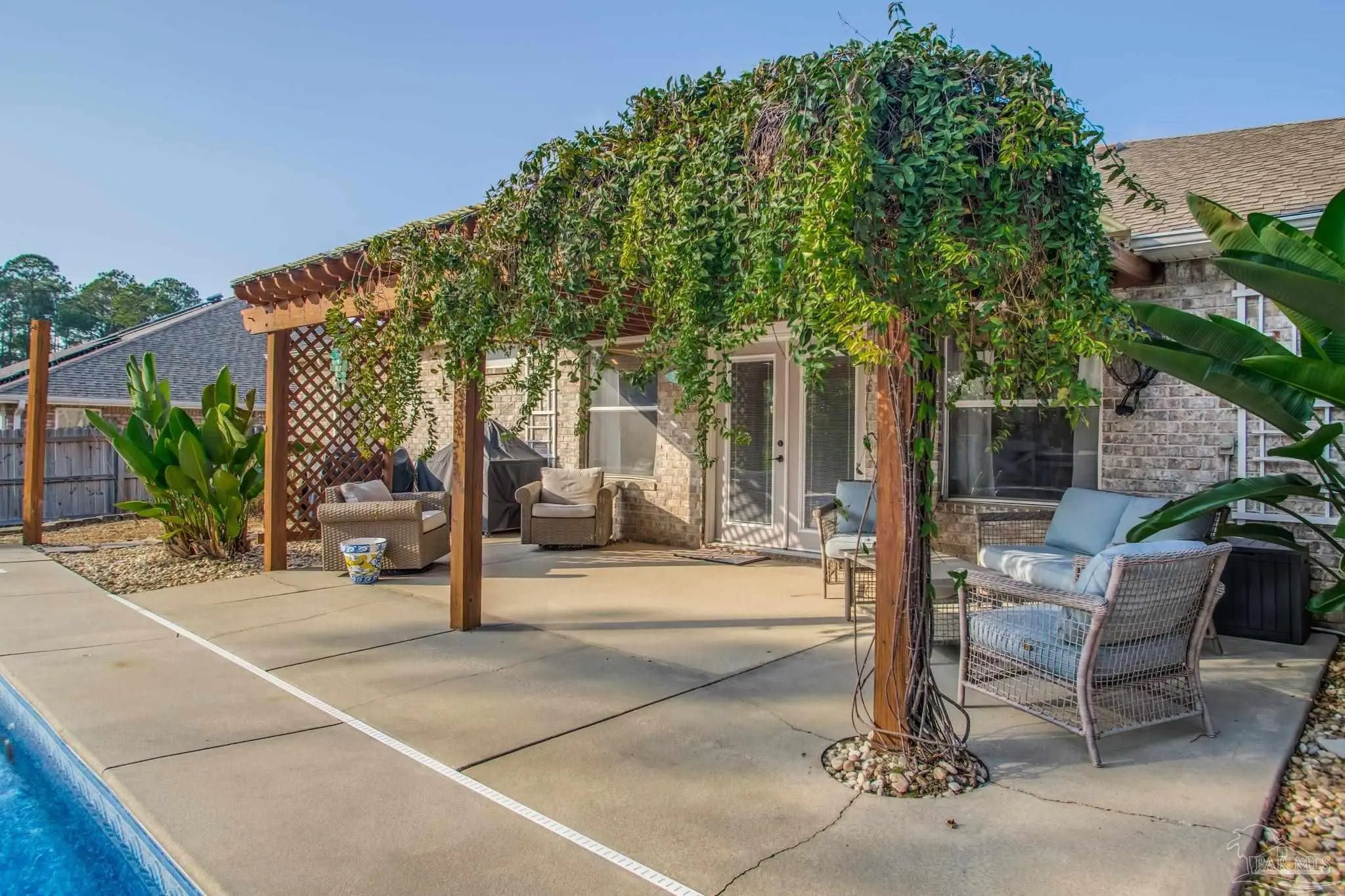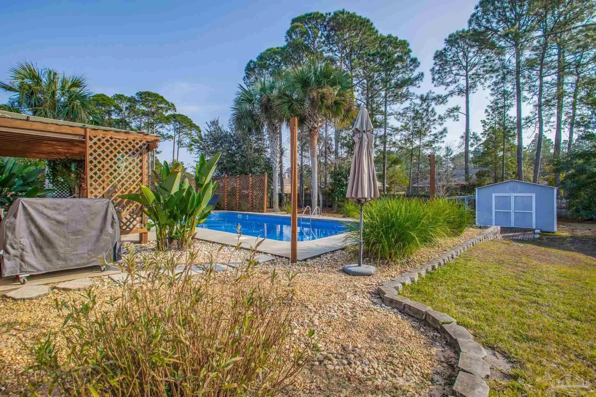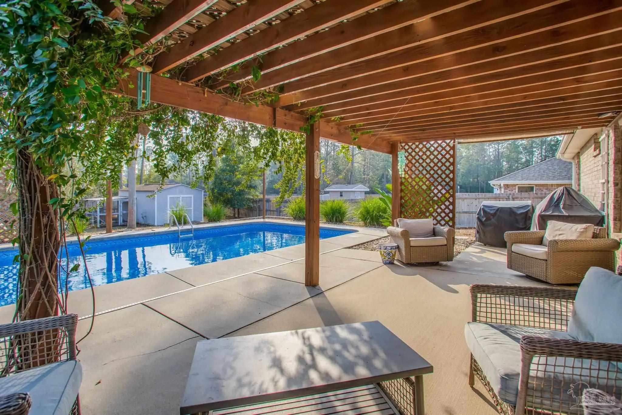 With summer coming soon, this spacious in-ground saltwater pool home is perfectly suited for entertaining and relaxation. Offering more than 2,700 square feet of living space, the home features 4 bedrooms, 3 bathrooms, a private office, a formal dining room, and a sun-filled sunroom. Bamboo flooring enhances the main living areas, complemented by tile flooring in the kitchen and sunroom. The kitchen blends style and functionality with abundant cabinetry, granite countertops, a center island, and a pantry. The generous primary suite showcases a tray ceiling, along with a soaking tub, separate shower, double vanities, and two walk-in closets. Set on a half-acre lot, the property boasts a privacy-fenced backyard, additional parking for a boat or camper, a covered patio ideal for warm summer evenings, a full sprinkler system, and a yard building. With a new HVAC system, pool filters, and pool pump, this well-maintained, move-in-ready home is a rare opportunity in Holley By The Sea. Schedule your private showing today!