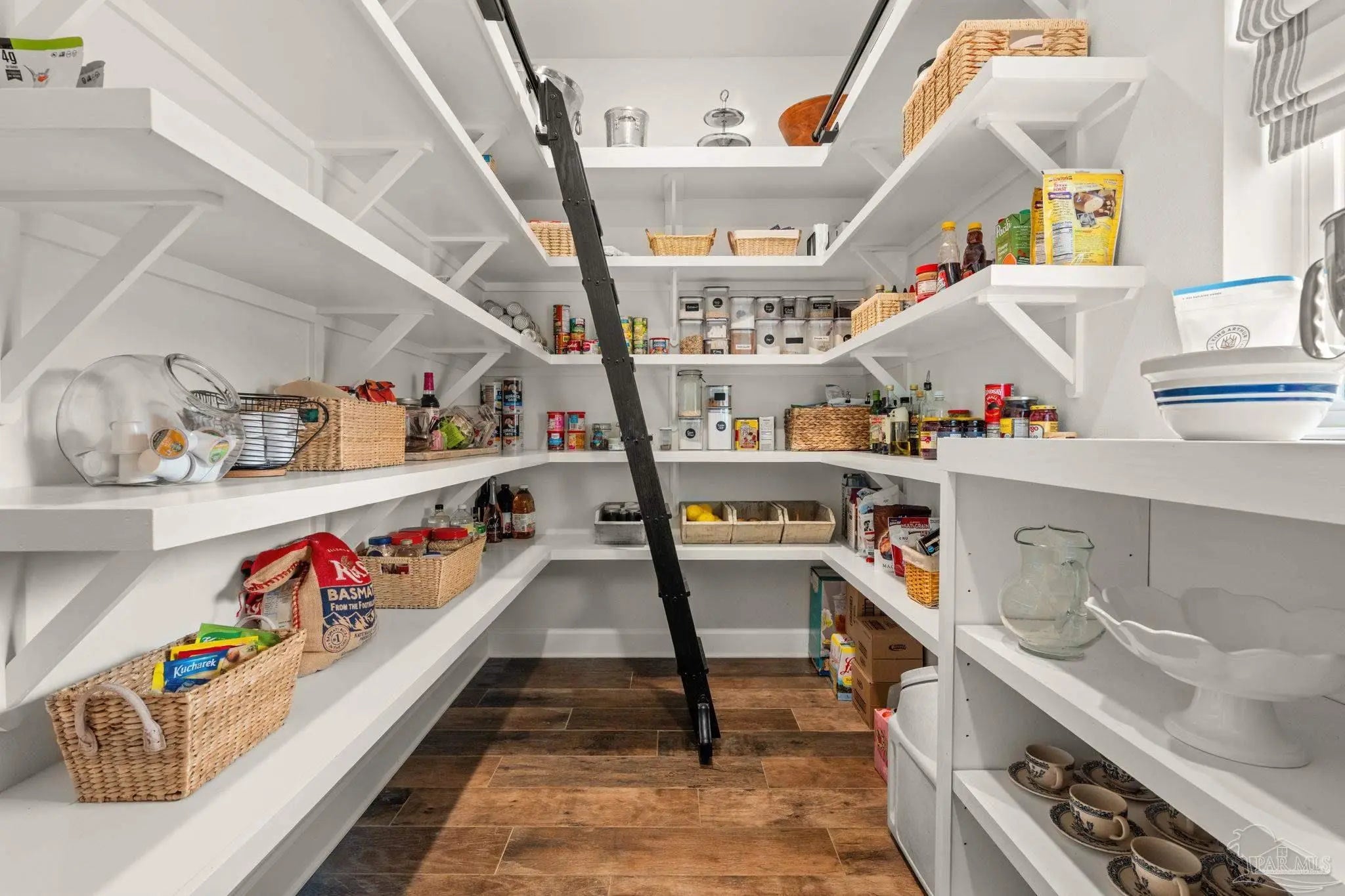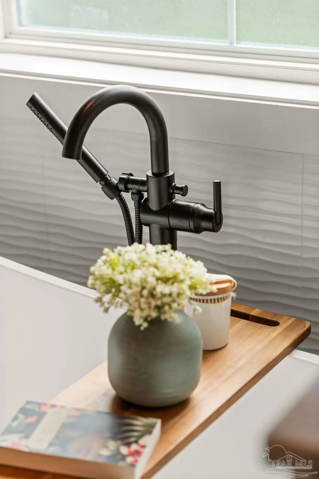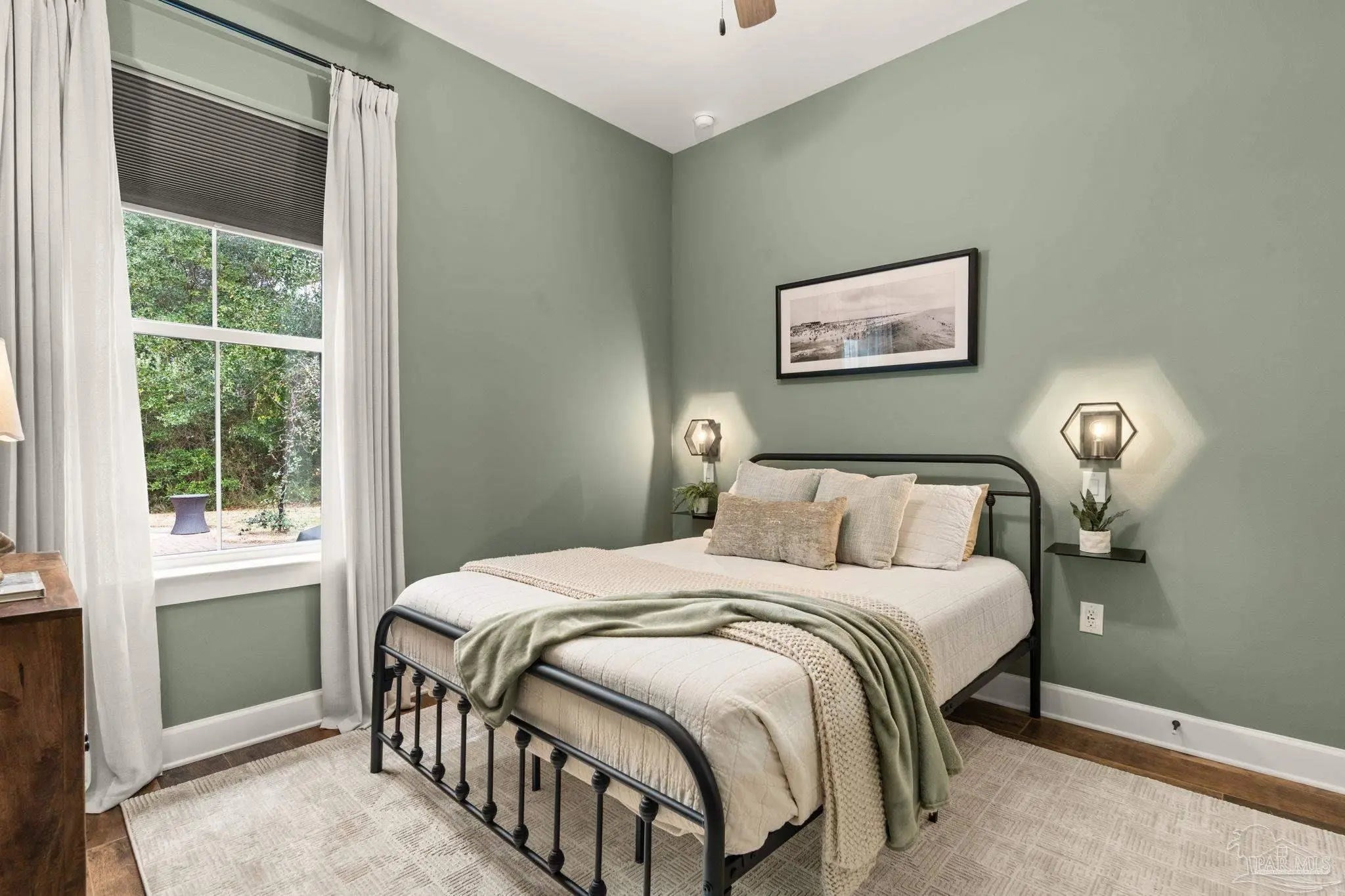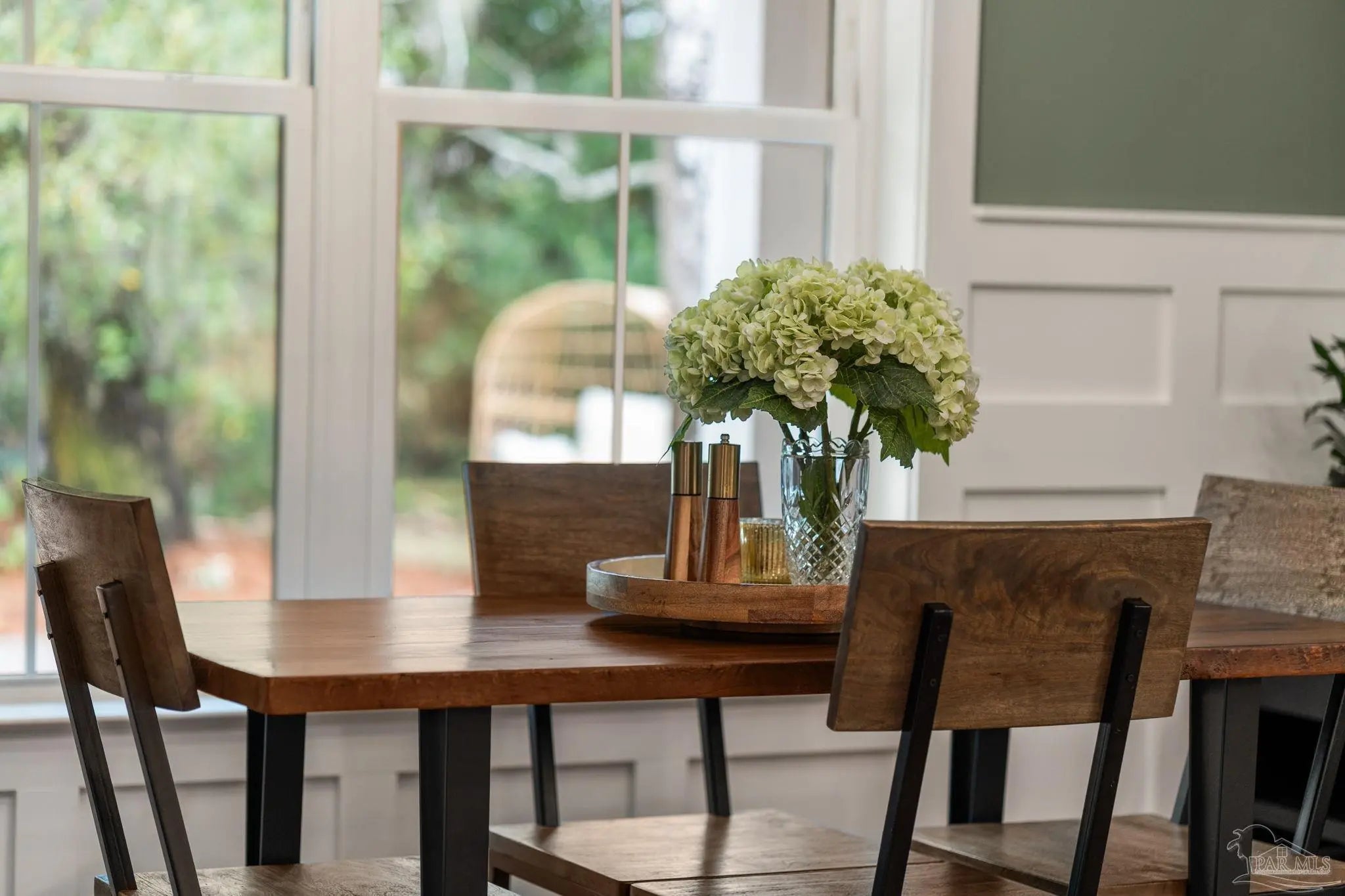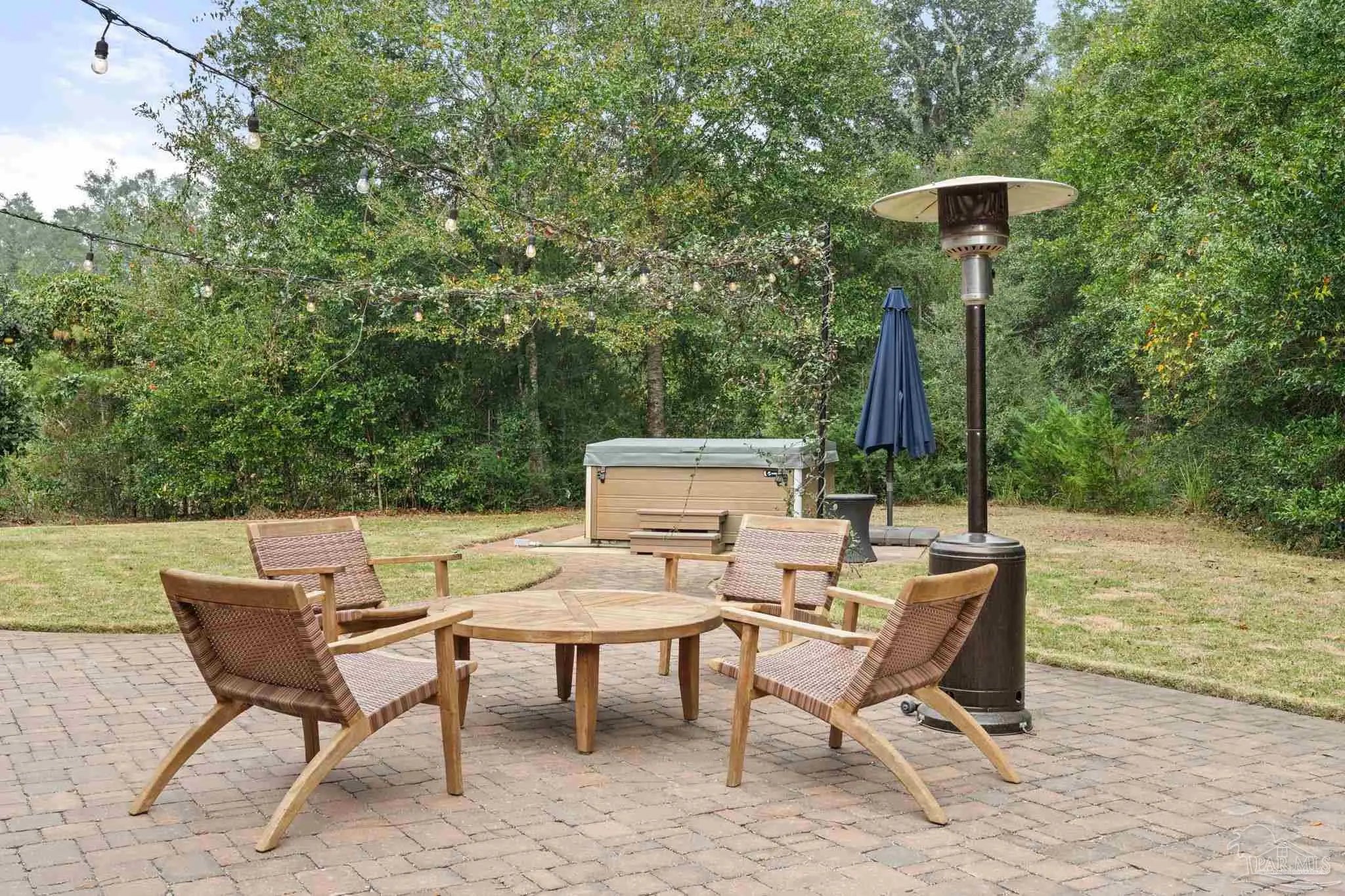 Nestled in one of Gulf Breeze's most pristine and high-demand Emerald Coast communities, this stunning custom Samuel Stevens home (built 2022) offers refined coastal living just moments from the water. Located in a gated neighborhood with public Sound access only one block away, nearby Soundside Preserve Park, and close proximity to a boat ramp, this home perfectly blends luxury, function, and lifestyle. Boasting nearly 3100 square feet, this thoughtfully designed residence features 4 bedrooms, 3 full baths, plus a dedicated office. The curb appeal is immediate with brick exterior with Hardie board and board-and-batten accents, cedar column front porch, metal roof details, upgraded wood-grain garage doors, and an extended paver driveway with double gate access leading to a boat/RV pad tucked discreetly behind the fence. Enjoy a covered back porch with tongue-and-groove pecky wood ceilings, exterior speakers and TV hookup, natural gas BBQ connection, and an extended paver patio with a concrete hot tub pad, complete with a Hot Springs 6-person hot tub (included). The fully irrigated yard features a 7-zone WiFi-enabled irrigation system with private well and iron treatment, plus a Dog Watch invisible fence covering both front and back yards. Inside, durable wood-grain plank tile flooring flows seamlessly throughout the home, complemented by herringbone brick tile in the laundry and back hallway. The heart of the home is the chef's kitchen, featuring an oversized 10-foot quartzite island, matching quartzite countertops throughout, soft-close cabinetry with pull-out trays and spice racks, under-cabinet lighting, wood-shelved pantry with double-sided ladder access, and a 30" natural gas cooktop. 1412 West Shores is a rare opportunity to own a meticulously crafted home where every detail has been thoughtfully curated. Luxury. Location. Lifestyle. This is Gulf Breeze living at its finest.