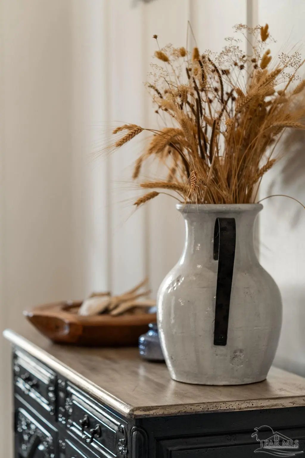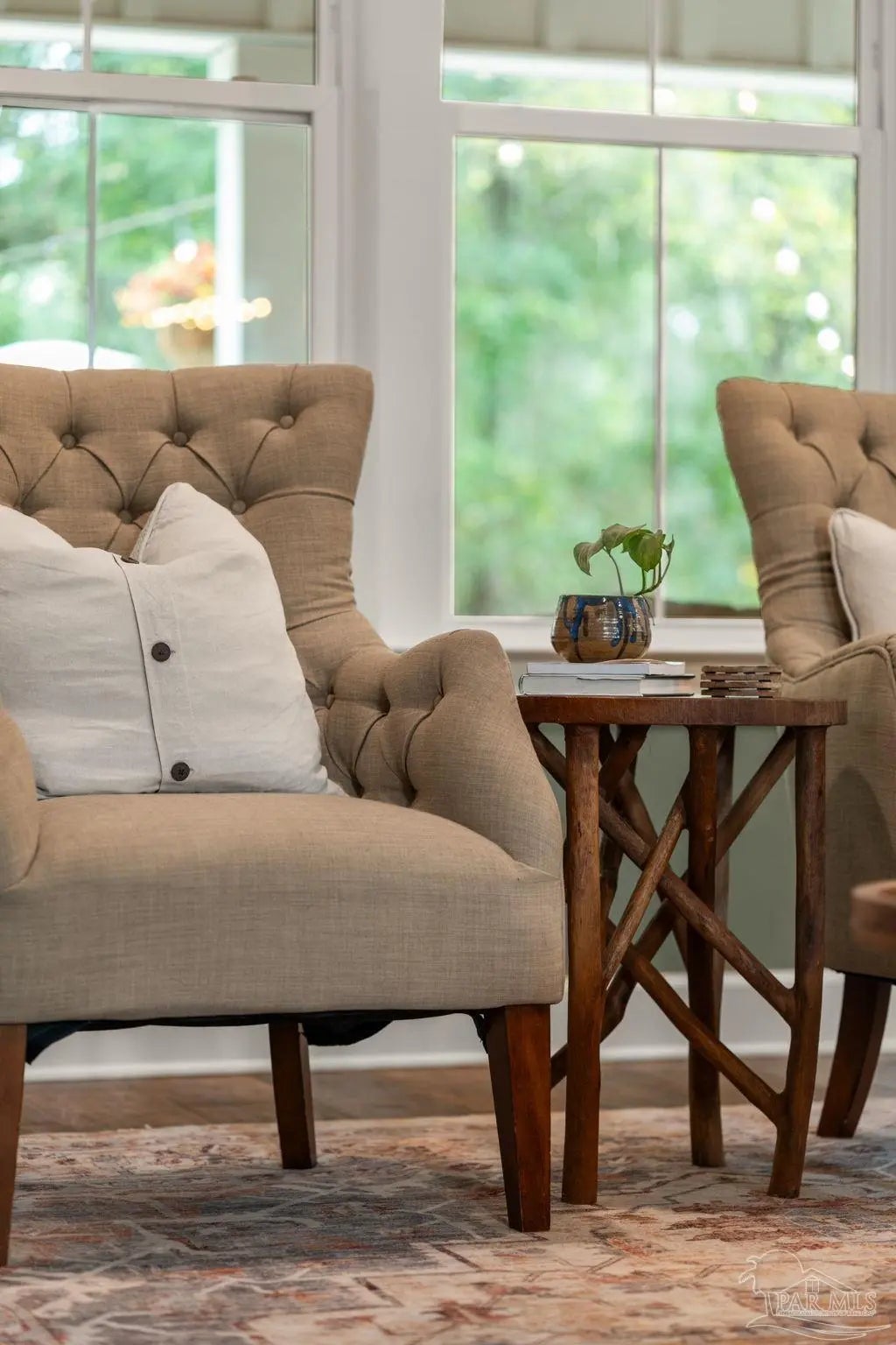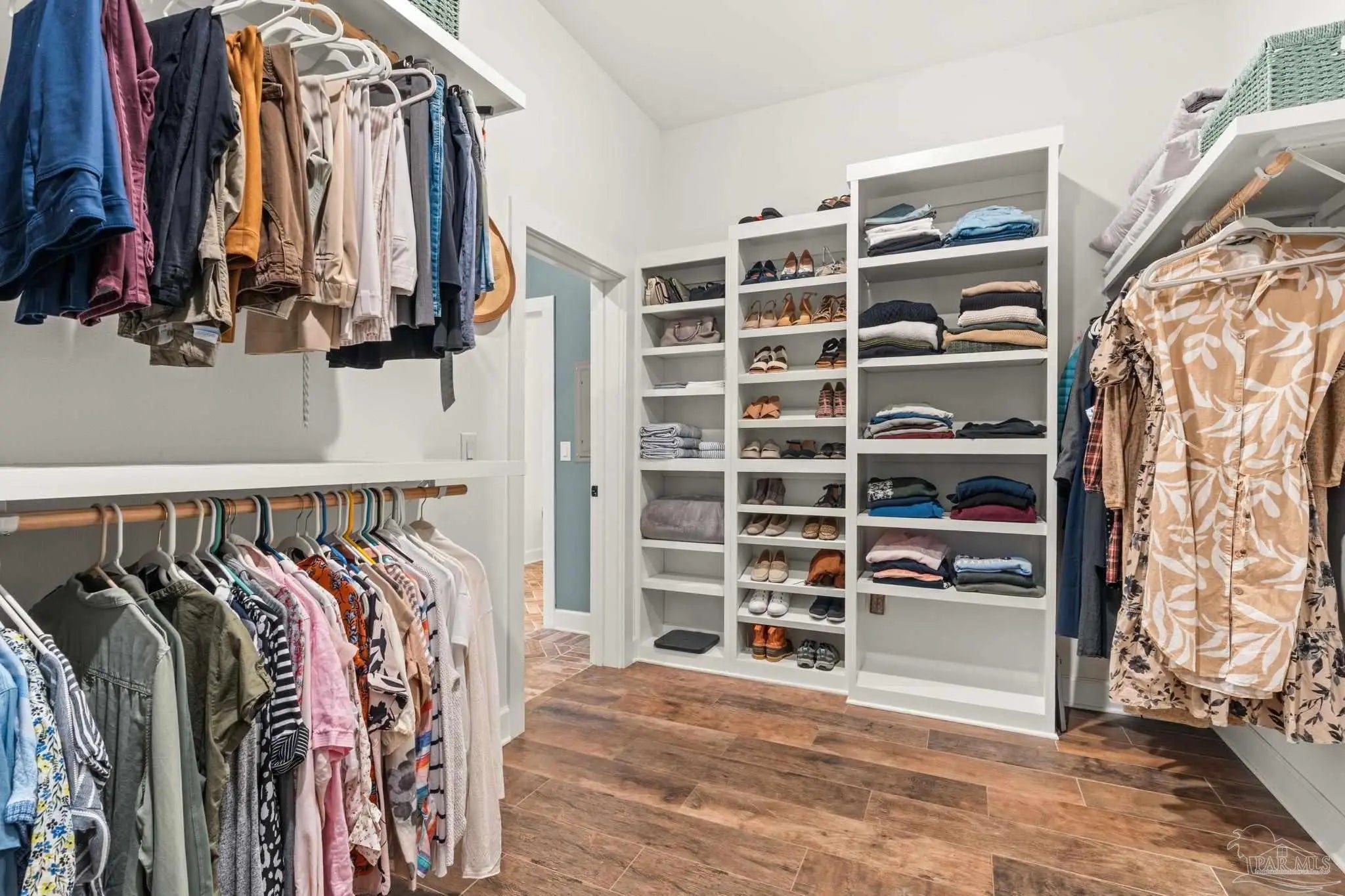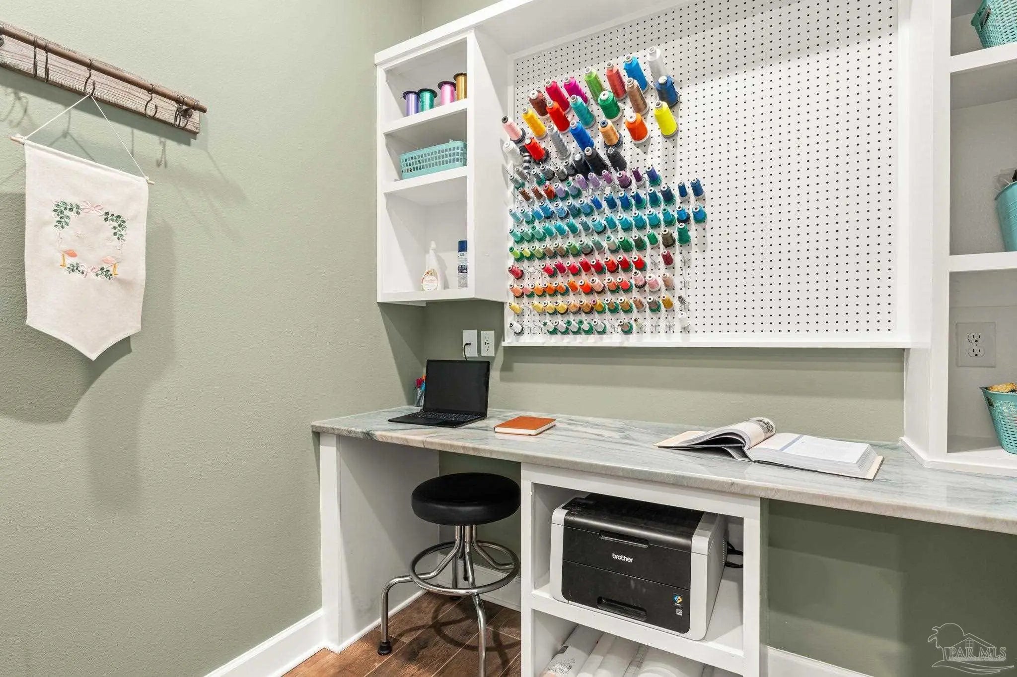 Nestled in one of Gulf Breeze's most pristine and high-demand Emerald Coast communities, this stunning custom Samuel Stevens home (built 2022) offers refined coastal living just moments from the water. Located in a gated neighborhood with public Sound access only one block away, nearby Soundside Preserve Park, and close proximity to a boat ramp, this home perfectly blends luxury, function, and lifestyle. Boasting nearly 3100 square feet, this thoughtfully designed residence features 4 bedrooms, 3 full baths, plus a dedicated office. The curb appeal is immediate with brick exterior with Hardie board and board-and-batten accents, cedar column front porch, metal roof details, upgraded wood-grain garage doors, and an extended paver driveway with double gate access leading to a boat/RV pad tucked discreetly behind the fence. Enjoy a covered back porch with tongue-and-groove pecky wood ceilings, exterior speakers and TV hookup, natural gas BBQ connection, and an extended paver patio with a concrete hot tub pad, complete with a Hot Springs 6-person hot tub (included). The fully irrigated yard features a 7-zone WiFi-enabled irrigation system with private well and iron treatment, plus a Dog Watch invisible fence covering both front and back yards. Inside, durable wood-grain plank tile flooring flows seamlessly throughout the home, complemented by herringbone brick tile in the laundry and back hallway. The heart of the home is the chef's kitchen, featuring an oversized 10-foot quartzite island, matching quartzite countertops throughout, soft-close cabinetry with pull-out trays and spice racks, under-cabinet lighting, wood-shelved pantry with double-sided ladder access, and a 30" natural gas cooktop. 1412 West Shores is a rare opportunity to own a meticulously crafted home where every detail has been thoughtfully curated. Luxury. Location. Lifestyle. This is Gulf Breeze living at its finest.