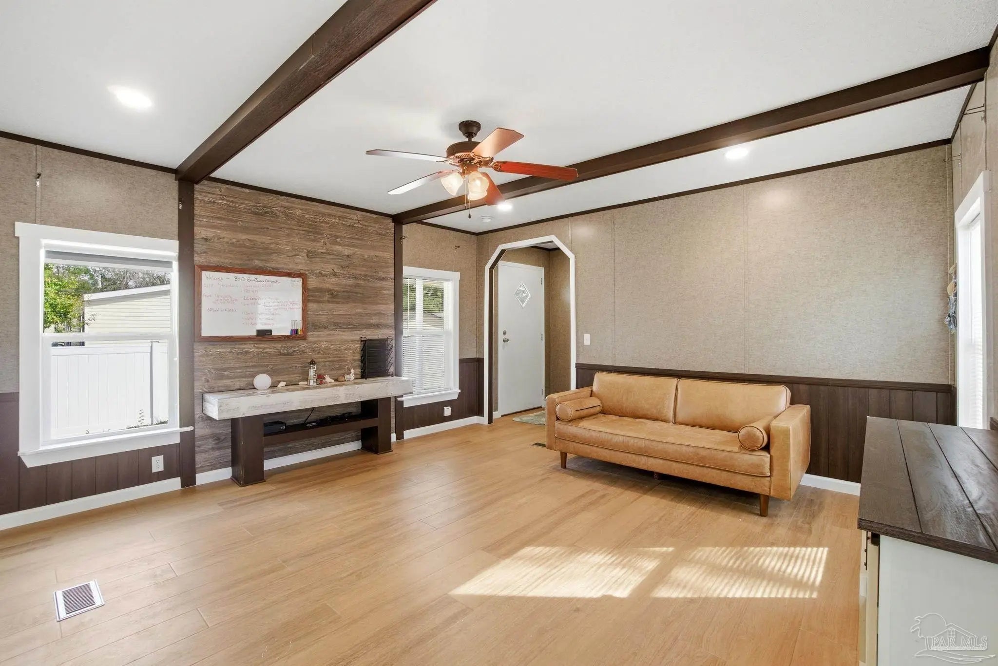 Boat access without waterfront prices. This 2019 manufactured home is located in the Bayou Grande Villa waterfront community and includes deeded water access, a community boat ramp, and storage—features that are hard to find at this price point. The 3-bedroom, 2-bath home is move-in ready and has been well maintained, with a functional layout, updated bathrooms, modern appliances, and a washer and dryer that convey. A separate shed with electricity adds extra storage or workspace. Residents also enjoy access to the community pool. Convenient to NAS Pensacola, downtown Pensacola, and Perdido Key, this property is a solid option for military buyers, first-time homeowners, or anyone looking for a low-maintenance primary residence or vacation home close to the water.