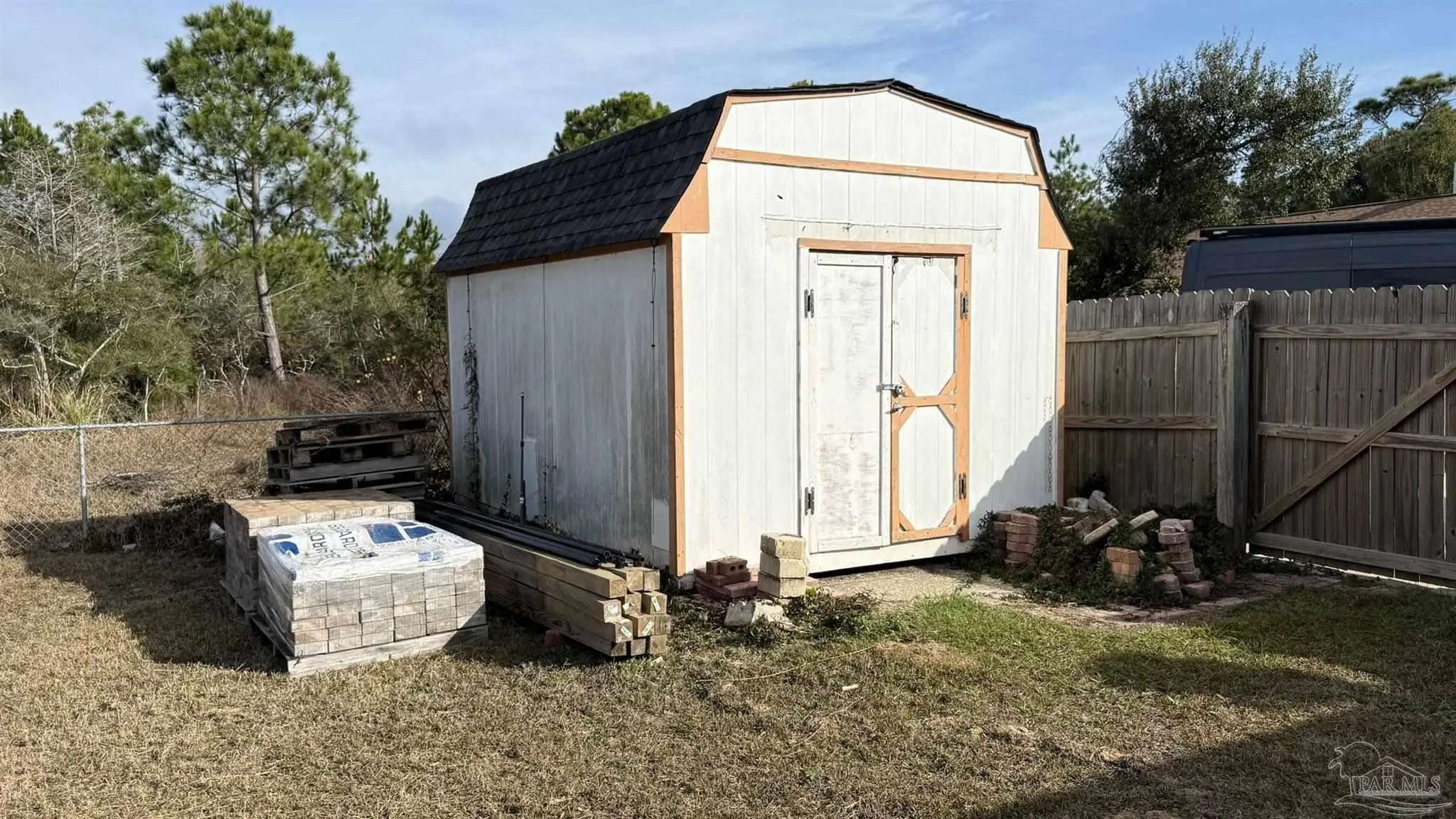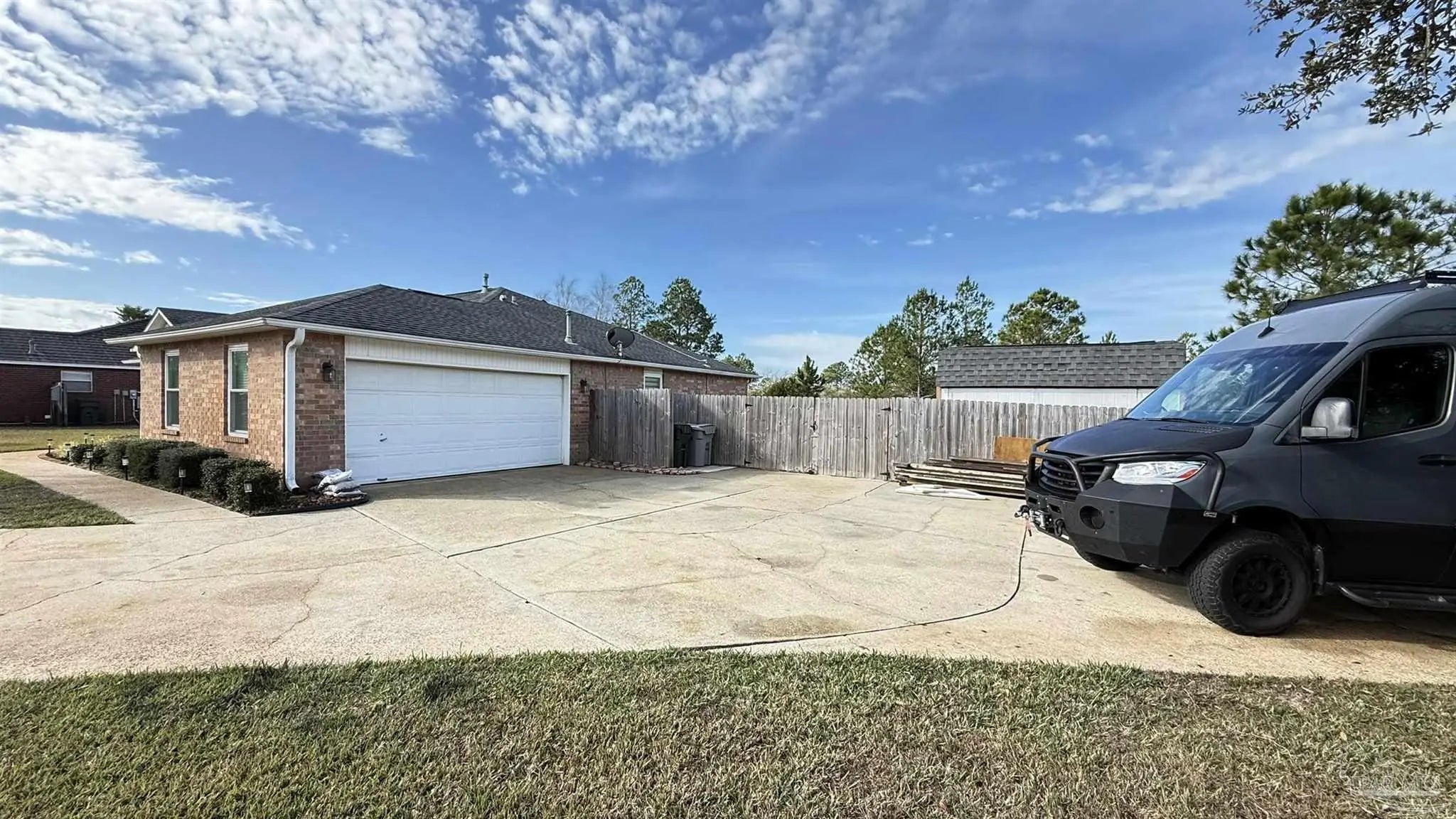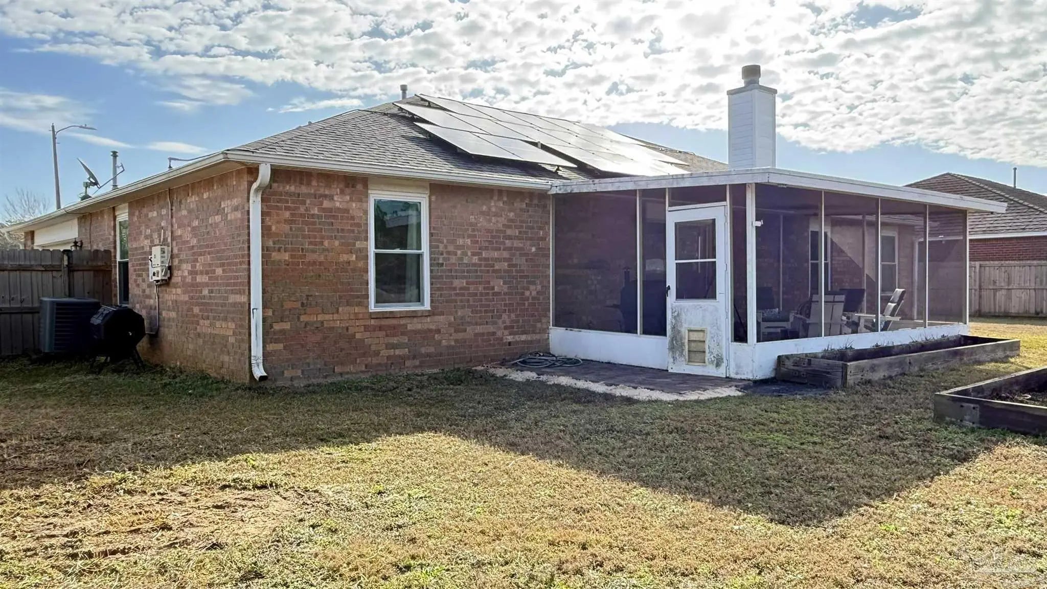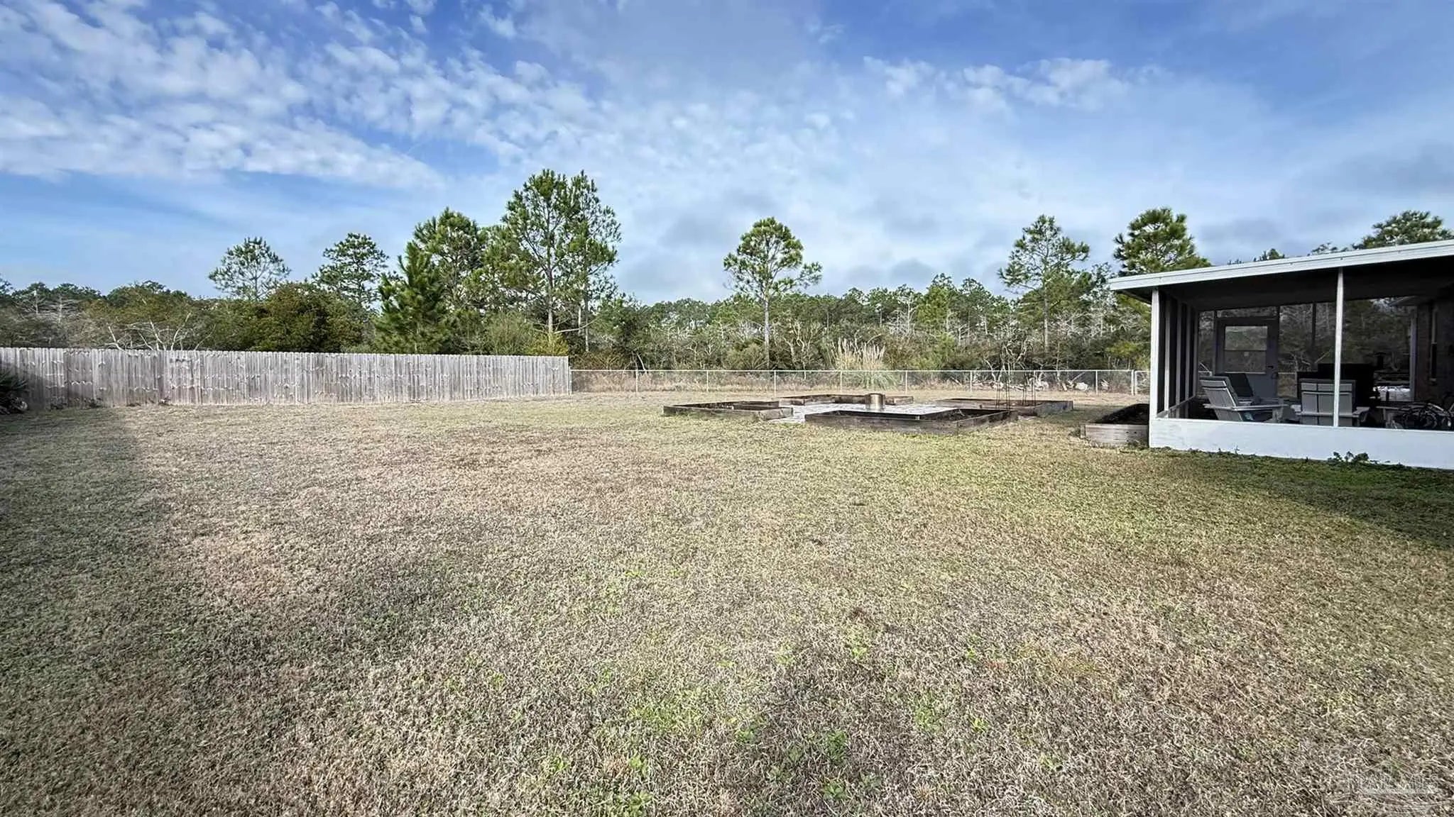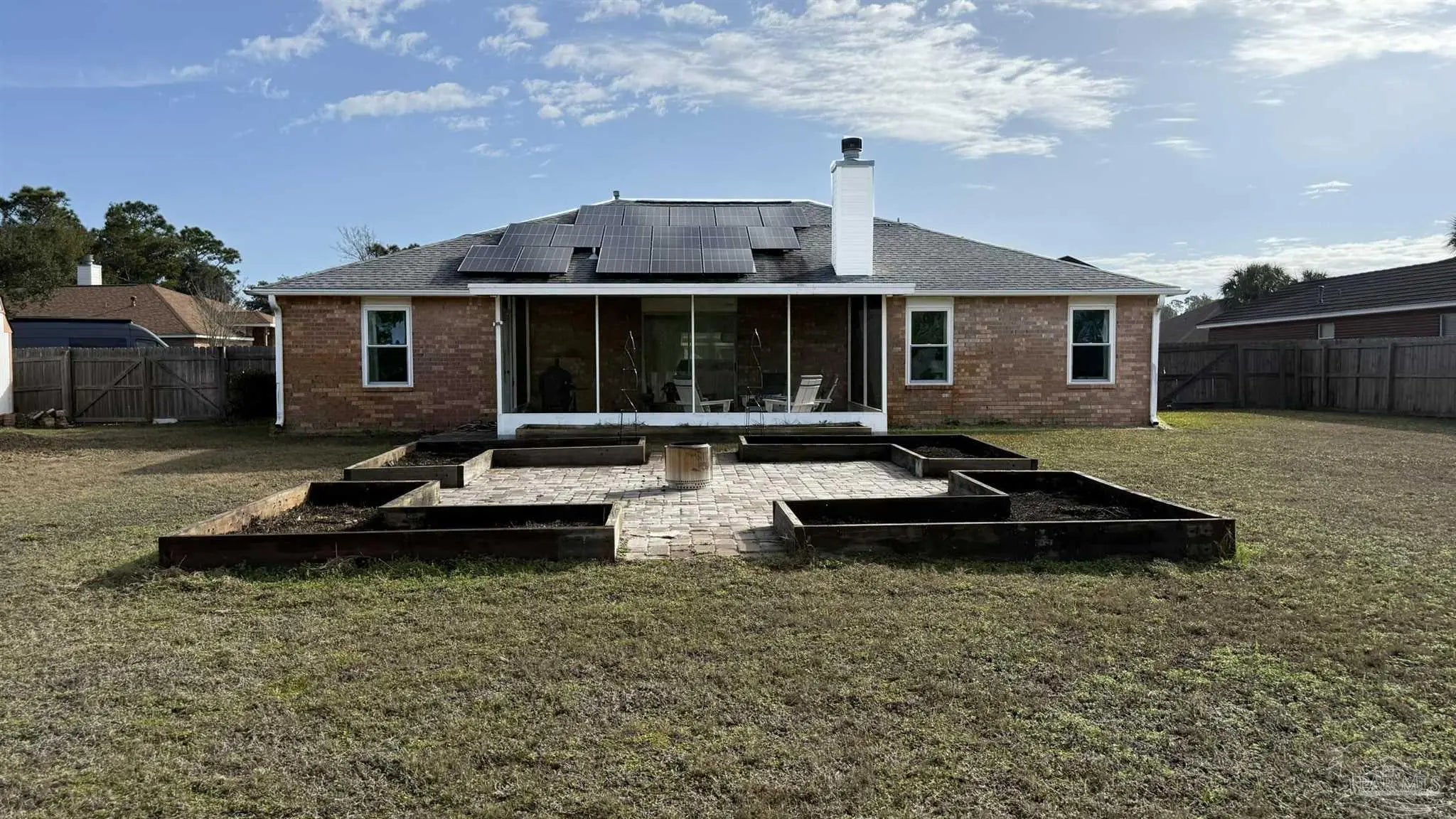 There is a GEM in the Estates at Emerald Shores! BEAUTIFULLY UPDATED 3BR/2/BA BRICK HOME BACKING UP TO PERMANENT GREEN SPACE. This well-maintained 3-bedroom, 2-bath brick home offers thoughtful upgrades and a serene setting with no rear neighbors-backing to protected green space that will never be built upon. Inside, you will find new cork flooring that adds warmth, comfort, and sustainability throughout the main living areas. The home features new storm windows for improved energy efficiency and comfort, along with stylish new light fixtures that enhance each space. The kitchen pantry has been upgraded with new custom shelving for optimal organization, while the laundry room includes convenient built-in storage to maximize functionality. HUGE back yard with raised beds and a shed that conveys. A major highlight is the fully paid for solar panel system, providing long-term energy savings and eco-friendly living with no added cost to the buyer. With solid brick construction, modern updates, and a peaceful natural backdrop, this home offers both comfort and value-perfect for relaxed living and every day convenience located close to the back gate of NAS, Perdido beaches and a short drive to downtown Pensacola.