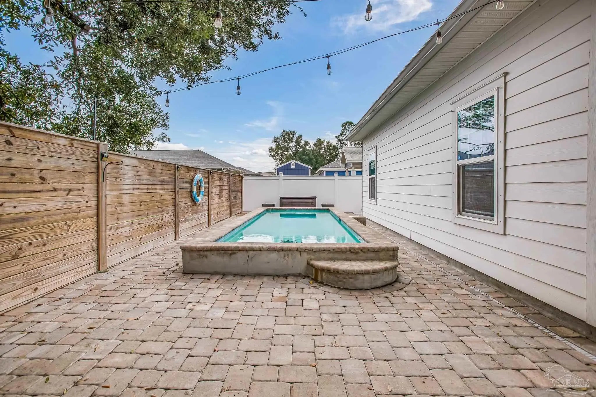 Come home to the Amazing Perdido Key area. This excellently maintained home feels new. Be surprised by the attractive saltwater pool surrounded by pavers, with a spacious outdoor paver entertaining area. Enjoy the privacy of a solar lighted privacy fence. With gates on each side. Both front and back have well-manicured sod. The lawn irrigation system will keep it beautiful. The single car garage and long driveway will meet most needs. This one owner home is perfect as a primary home, a second home, or even a seasonal or long-term rental. Moving inside, this single story, 3-bedroom, 2 bath home is spotless. Enjoy entertaining in the open concept space, high ceilings, living, dining and kitchen. A separate laundry room. The kitchen has a lovely island. Smooth top range, Single compartment stainless sink. Luxury vinyl flooring throughout. No carpet! Ample storage. This home is perfectly located for so many recreational desires. Both the Public Library and Big Lagoon State Park are one minute away, Two minutes to Pickle Ball/Tennis courts; 2 minutes to Grocery, Art, Salons, and other Shopping, 3 minutes to Perdido Key and the Intercoastal Waterway; 5 minutes to Johnson’s Beach; Restaurants are 3-5 minutes away; 6-10 minutes to three free public beaches; 8 minutes to Perdido Key State Park, 15 minutes to the Alabama line; Approximately half hour from downtown Pensacola.