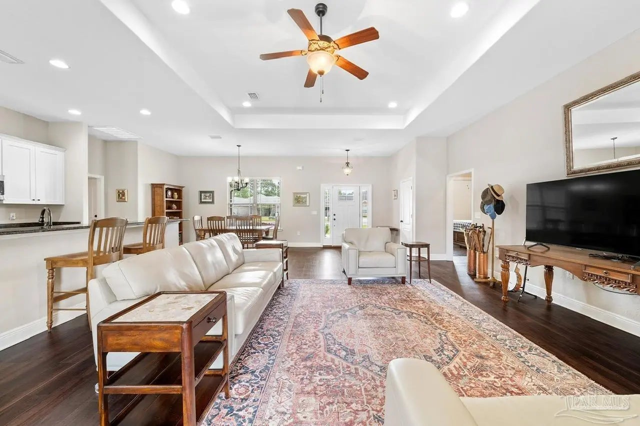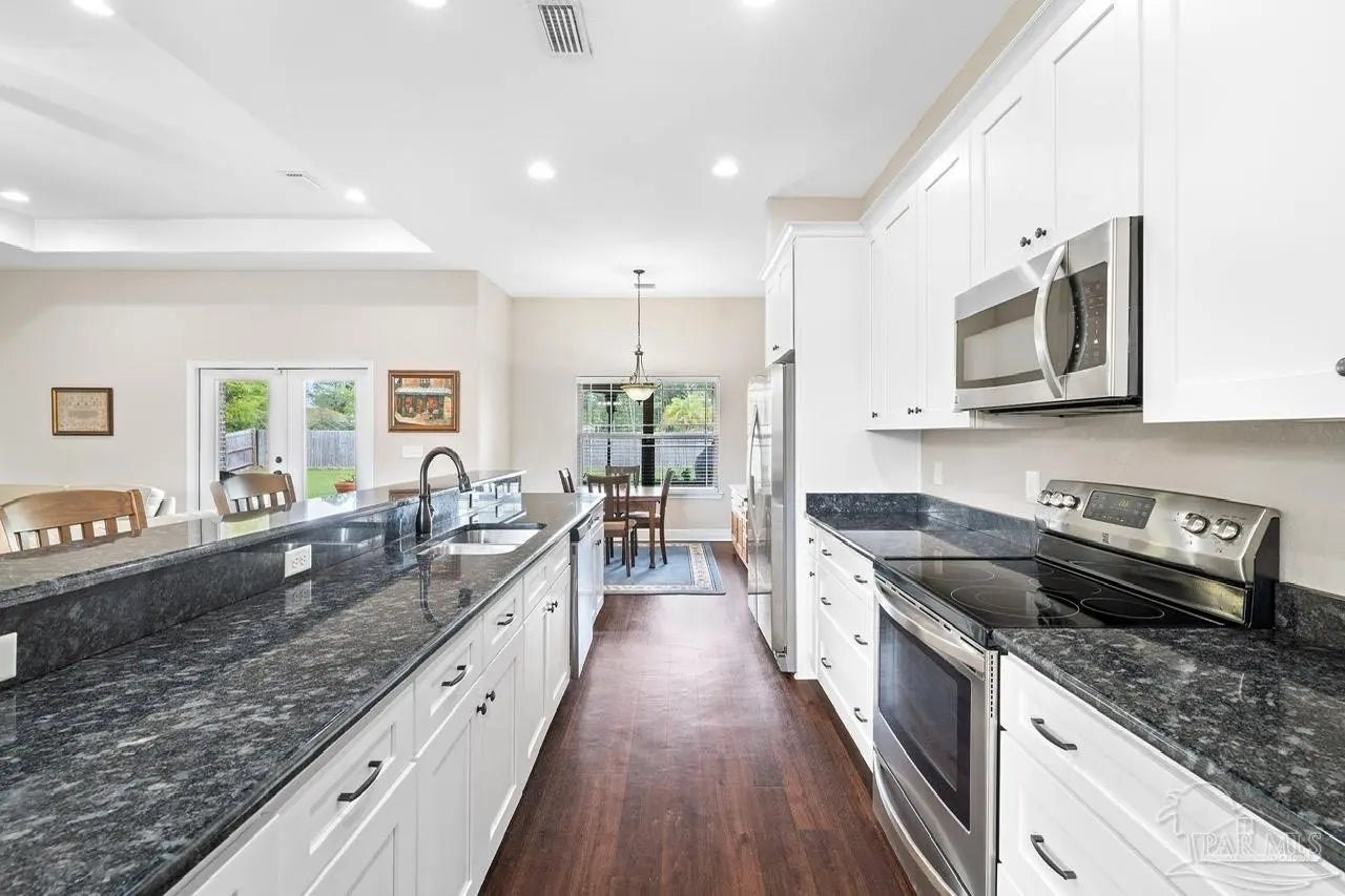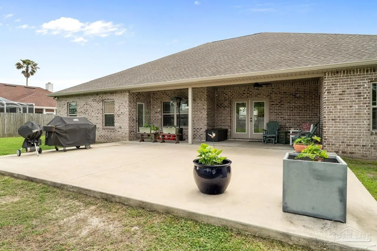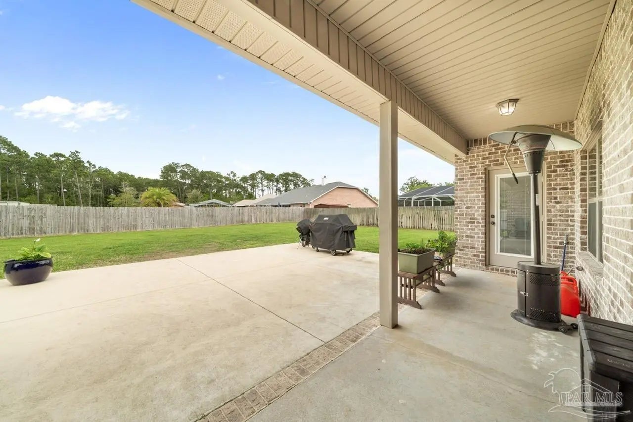 WELCOME HOME TO PERDIDO BAY COUNTRY CLUB ESTATES, ONE OF PERDIDO'S MOST SOUGHT AFTER GOLF COMMUNITIES! Experience the ultimate coastal lifestyle in this stunning 4-bedroom, 2-bathroom home spanning 2,268 square feet, featuring a modern, open interior highlighted by beautiful, high-quality wood laminate flooring and high ceilings. For those of you that love to entertain, you will appreciate the chef-inspired kitchen complete with granite countertops, huge 13 -foot island with seating, stainless steel appliances, ample cabinetry with soft-close doors. The spacious oversized primary suite offers a private retreat with granite countertops, double vanities, separate shower, soaking tub and large walk-in closet. Large 2 car garage will hold all your beach toys or additional storage. This oversized 0.33 acre lot offers both security and peace of mind with a PRIVACY fenced yard, a relaxing covered patio, and blanket style window and door storm protection. Perdido Bay Country Club is a lovely community anchored by Perdido Bay Golf Course and surrounded by Perdido Bay and Garcon Bayou waterways, so you can enjoy golf course and water views just about everywhere you go within the neighborhood! Just a short distance from beautiful beaches, local restaurants, and NAS Pensacola! Don't miss out on this amazing opportunity!