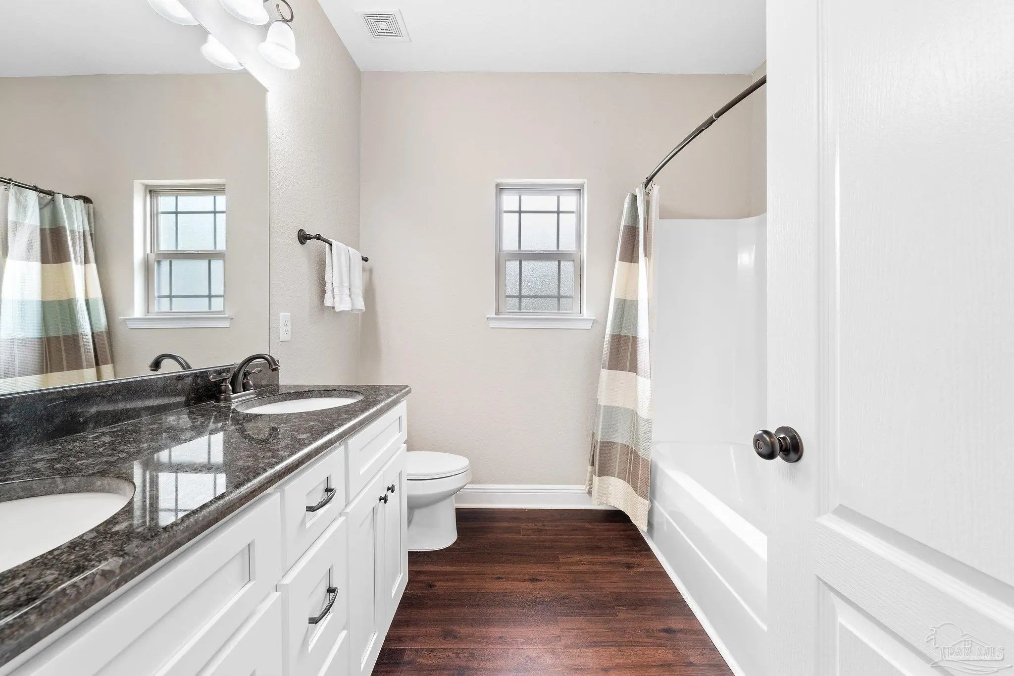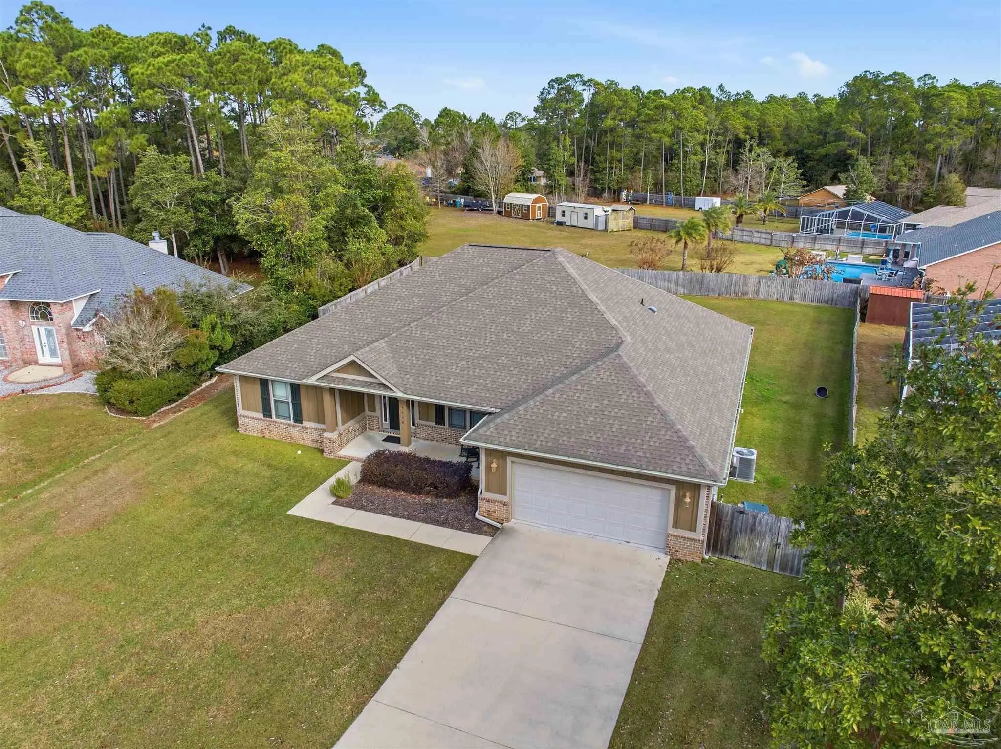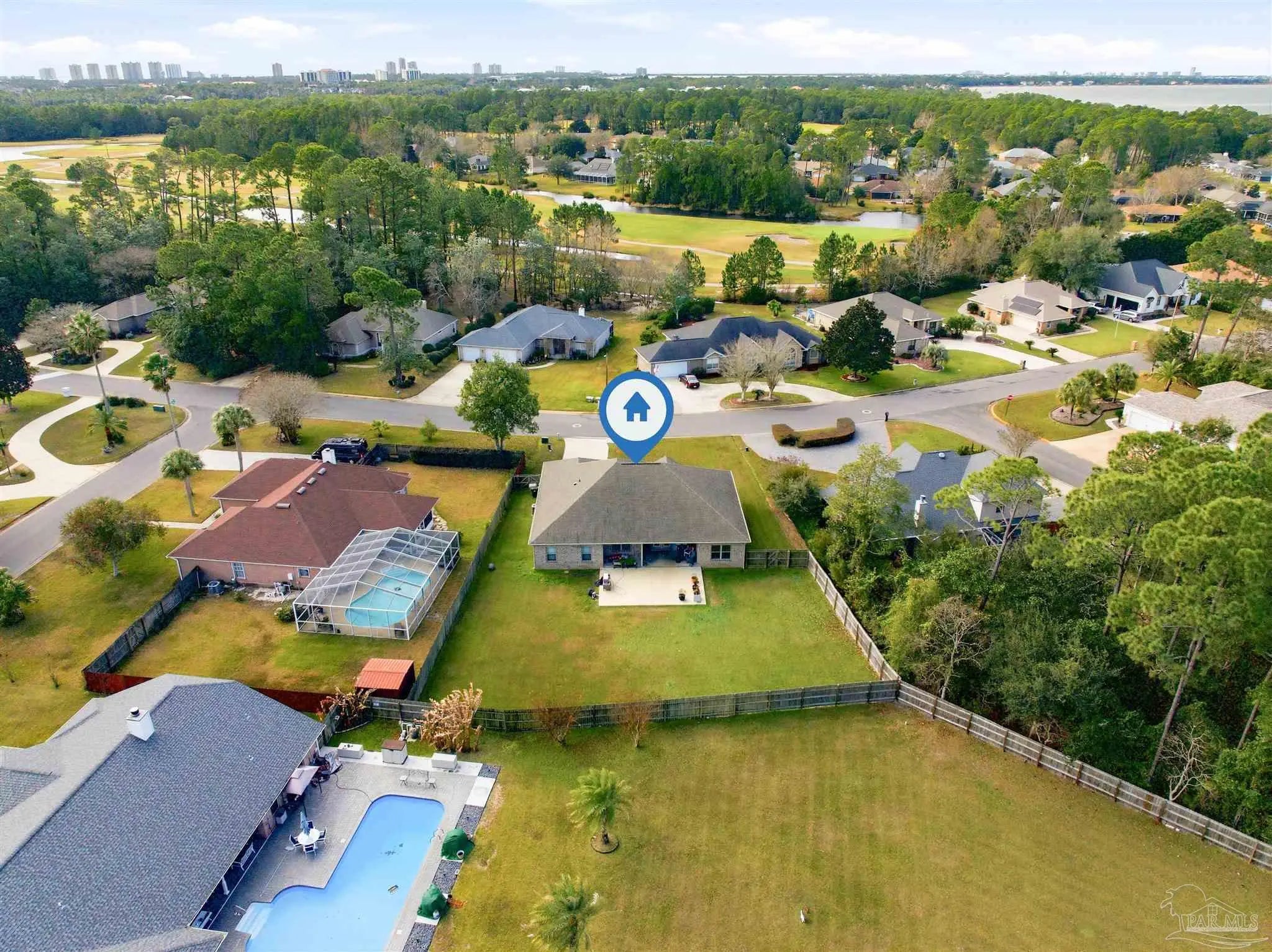 WELCOME HOME TO PERDIDO BAY COUNTRY CLUB ESTATES, ONE OF PERDIDO'S MOST SOUGHT AFTER GOLF COMMUNITIES! Experience the ultimate coastal lifestyle in this stunning 4-bedroom, 2-bathroom home spanning 2,268 square feet, featuring a modern, open interior highlighted by beautiful, high-quality wood laminate flooring and high ceilings. For those of you that love to entertain, you will appreciate the chef-inspired kitchen complete with granite countertops, huge 13 -foot island with seating, stainless steel appliances, ample cabinetry with soft-close doors. The spacious oversized primary suite offers a private retreat with granite countertops, double vanities, separate shower, soaking tub and large walk-in closet. Large 2 car garage will hold all your beach toys or additional storage. This oversized 0.33 acre lot offers both security and peace of mind with a PRIVACY fenced yard, a relaxing covered patio, and blanket style window and door storm protection. Perdido Bay Country Club is a lovely community anchored by Perdido Bay Golf Course and surrounded by Perdido Bay and Garcon Bayou waterways, so you can enjoy golf course and water views just about everywhere you go within the neighborhood! Just a short distance from beautiful beaches, local restaurants, and NAS Pensacola! Don't miss out on this amazing opportunity!