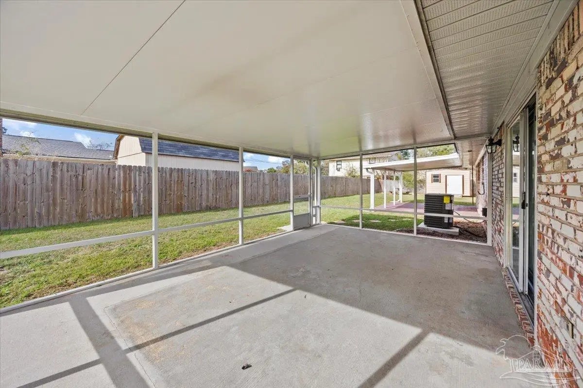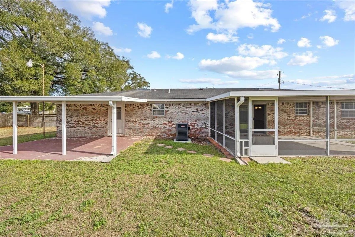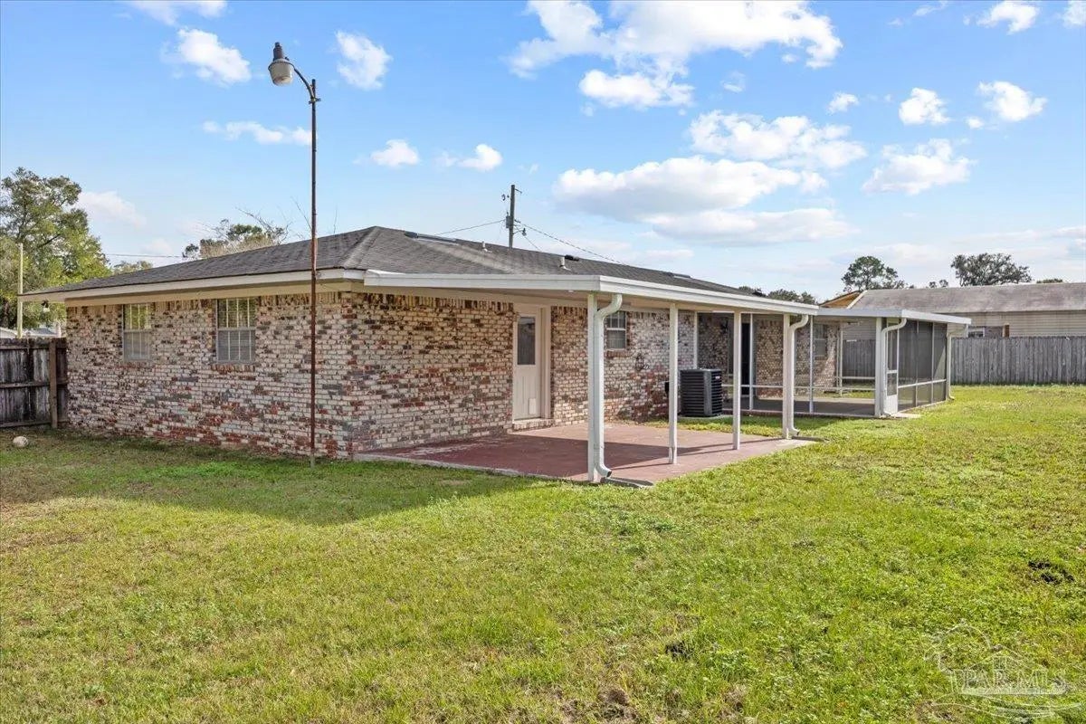 A new roof to be installed prior to closing and a new HVAC system set the stage for comfort and peace of mind in this inviting 3-bedroom, 2-bath home, quietly tucked away at the end of the street. The circular driveway and 2-car garage offer generous parking and an easy welcome for guests, while the setting provides a sense of privacy from the moment you arrive. Inside, tile flooring carries through the main living areas, complemented by wood laminate in the bedrooms. A formal dining room near the entry creates a natural gathering space, while the spacious kitchen features a large breakfast area and easy flow into the main living spaces. Each bedroom is comfortably sized with ample storage, and the primary suite includes an ensuite bath and a private door leading to a covered porch—an ideal spot for a slow morning or quiet evening. Just off the kitchen, a bonus room adds flexibility for a home office, game room, or creative space, adapting easily to changing needs. The screened porch extends the living space outdoors and overlooks the expansive 0.3+ acre lot, now enhanced with a new privacy fence. A storage building in the backyard provides convenient space for lawn equipment and extras, rounding out a home that blends thoughtful updates, versatile spaces, and a peaceful, tucked-away location.