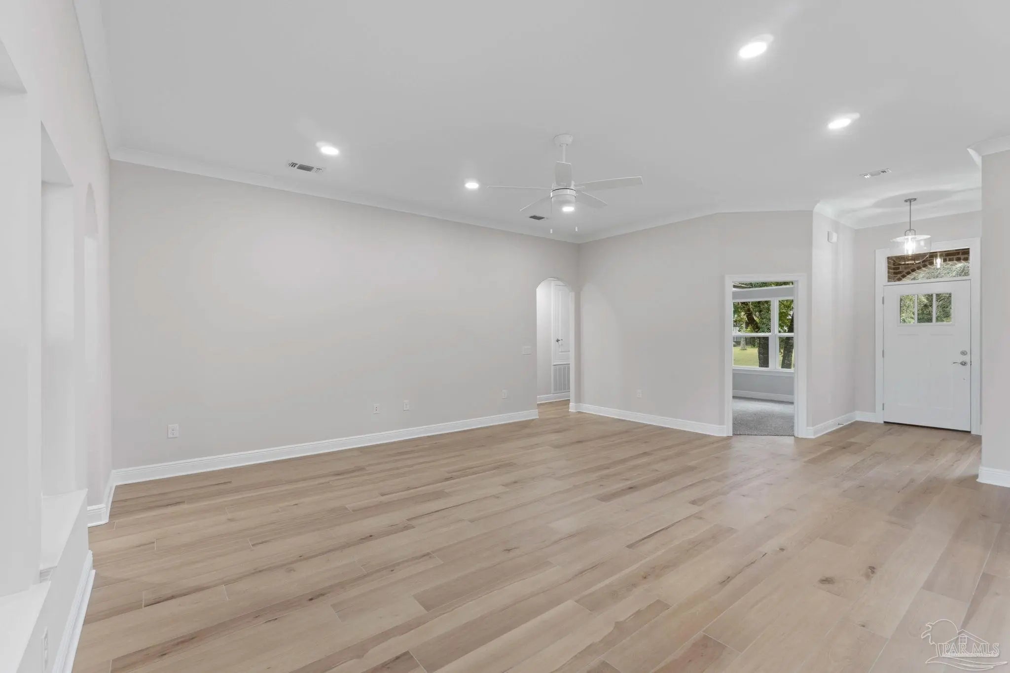 - Baseboards, Ceiling Fan(s), Crown Molding, Recessed Lighting