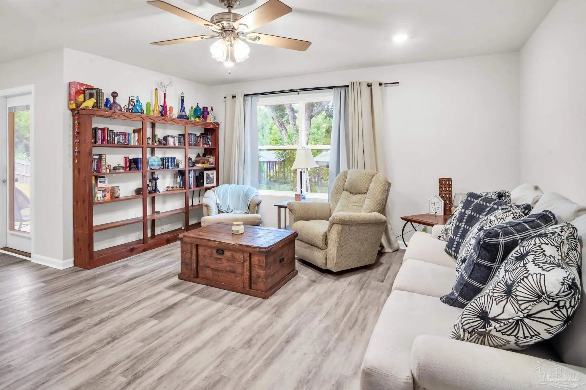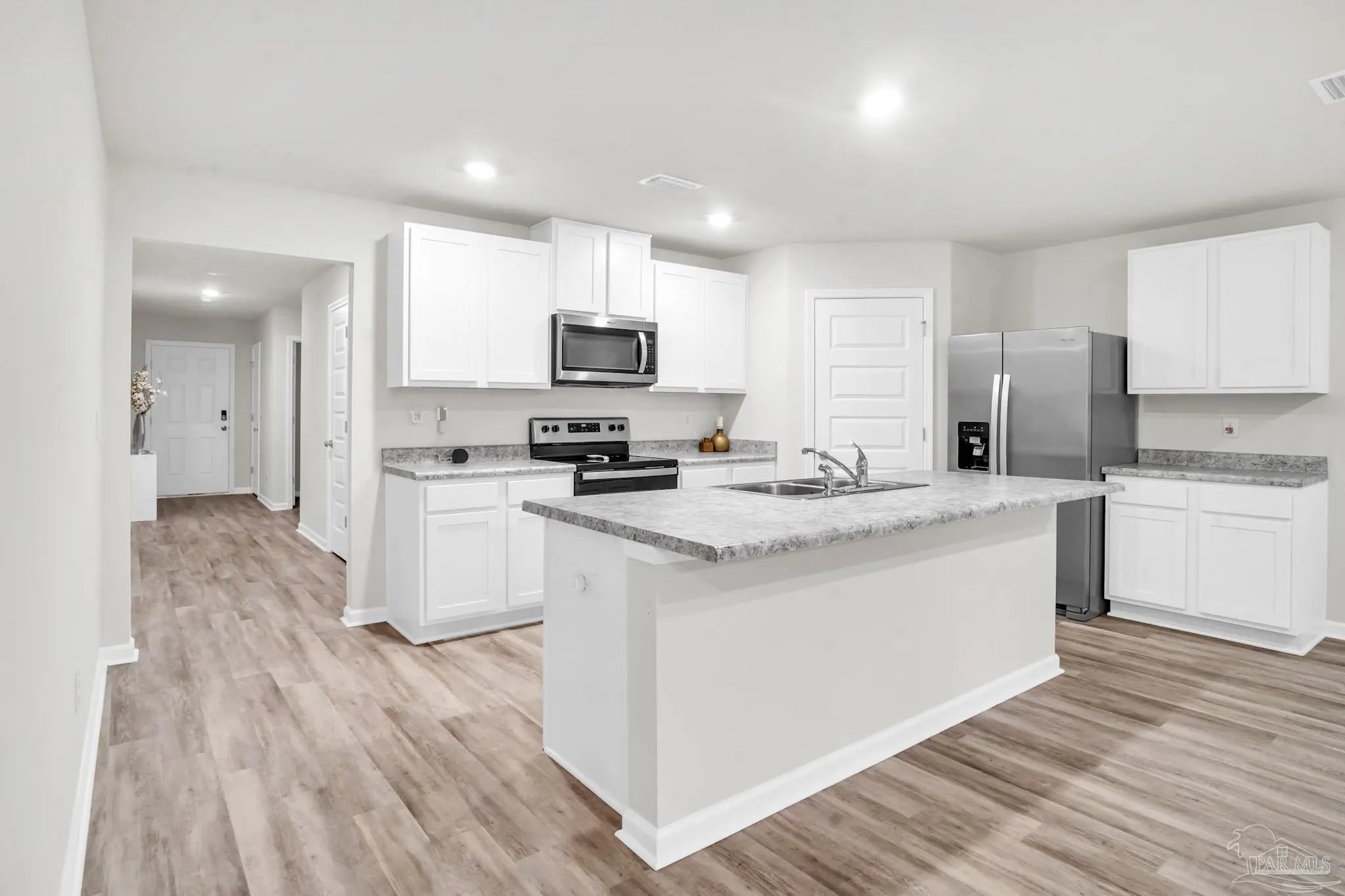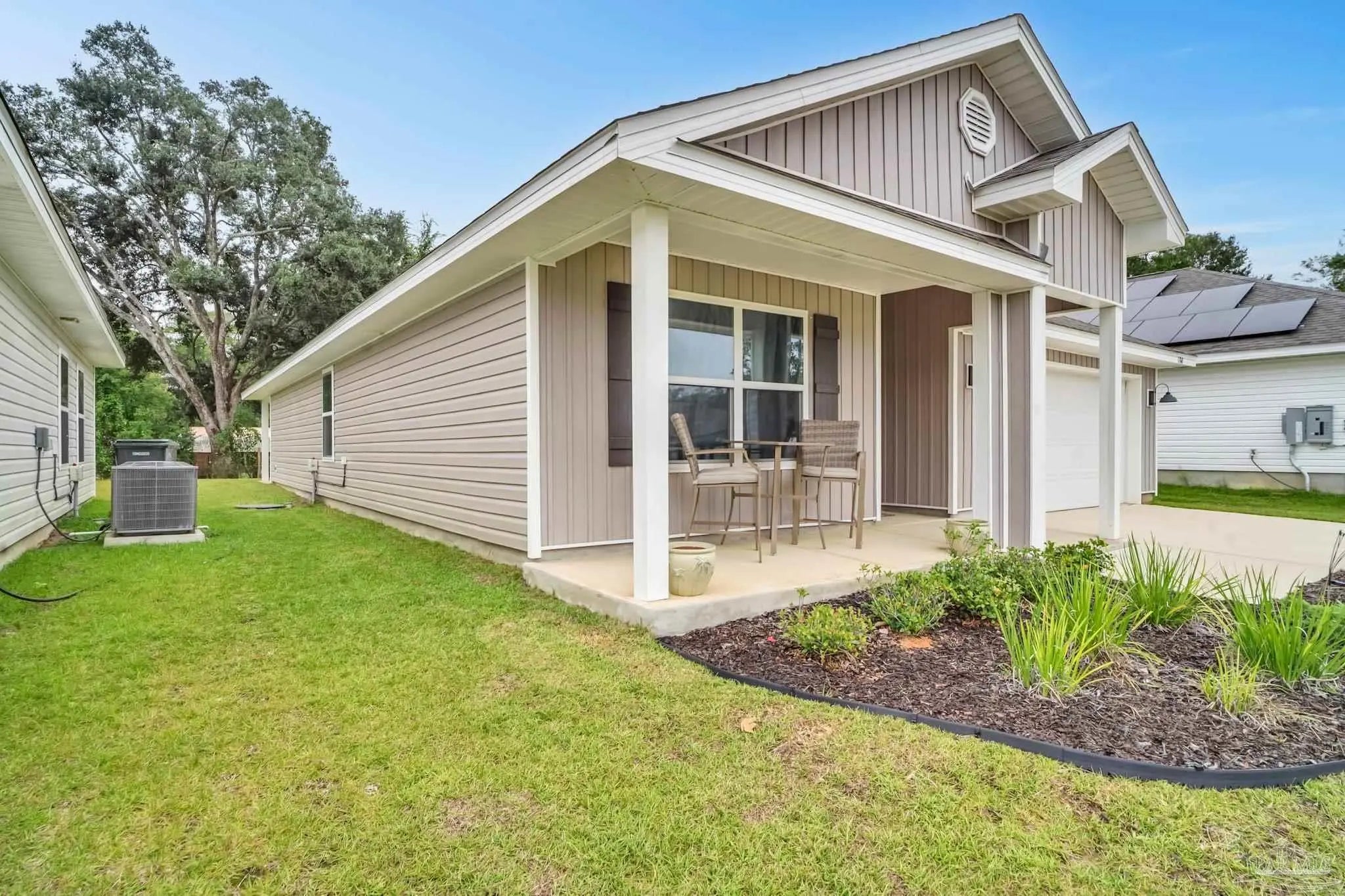 This beautifully constructed 1,787 square foot home, built in 2023, is located in the Paisleigh Place neighborhood of Pensacola, Florida. Offering four bedrooms and two bathrooms, the property immediately stands out with excellent curb appeal and a welcoming exterior that reflects the charm found throughout the interior. The home features a thoughtfully designed open-concept floor plan, ideal for both everyday living and entertaining. Luxury vinyl plank flooring runs throughout the main living areas and wet spaces, while the bedrooms are comfortably appointed with wall-to-wall carpet. The kitchen serves as a central focal point, showcasing granite countertops, crisp white cabinetry, and stainless steel appliances that blend style with functionality. The primary suite is well-appointed, featuring a spacious walk-in closet and a private bathroom with a double vanity. With modern finishes, efficient use of space, and a like-new feel, this home offers a strong combination of comfort, style, and value in a growing Pensacola community.
