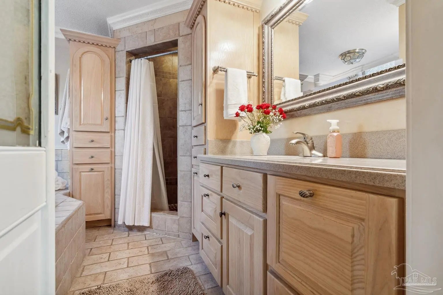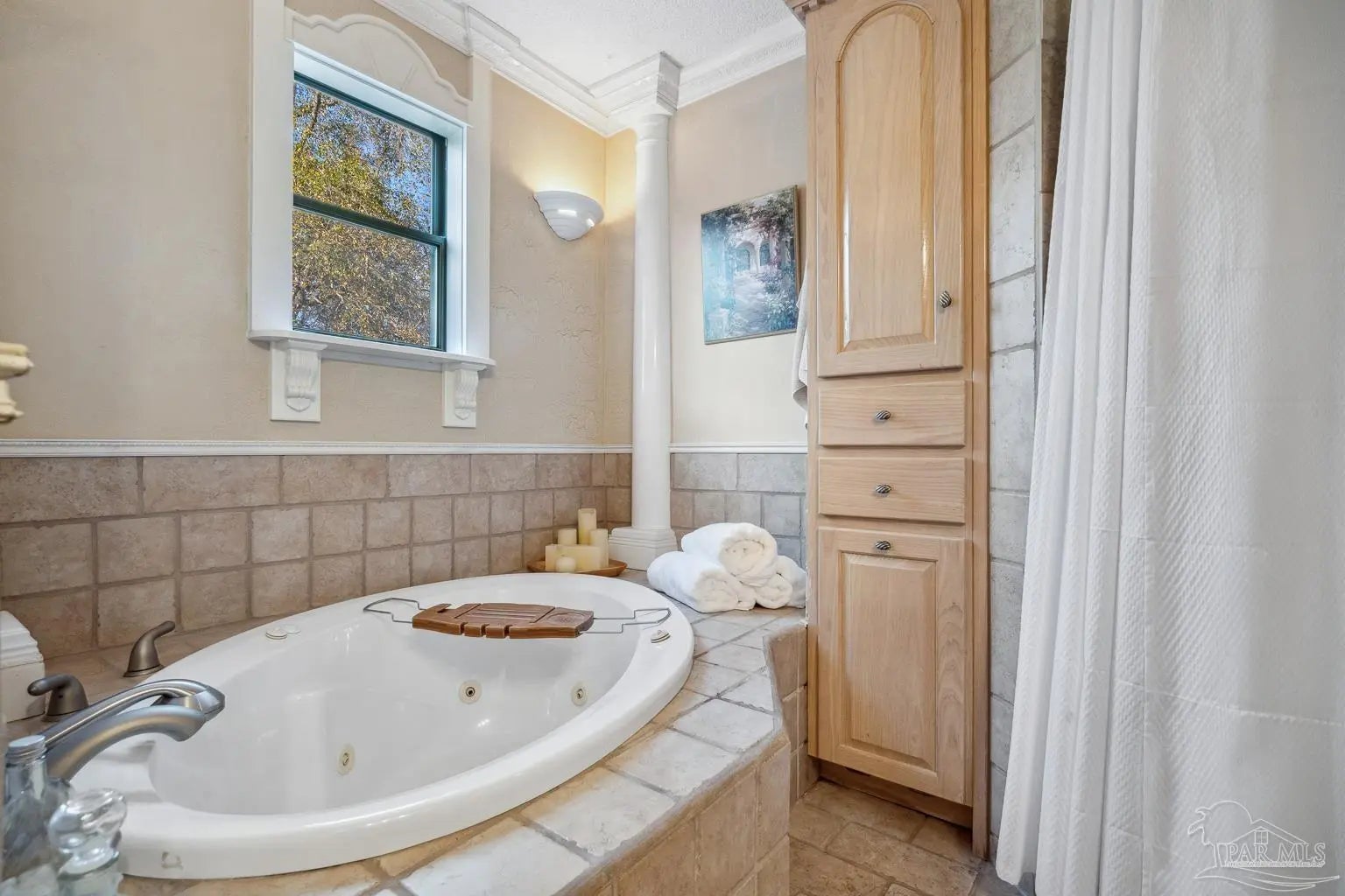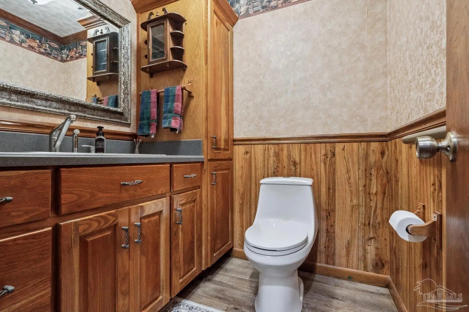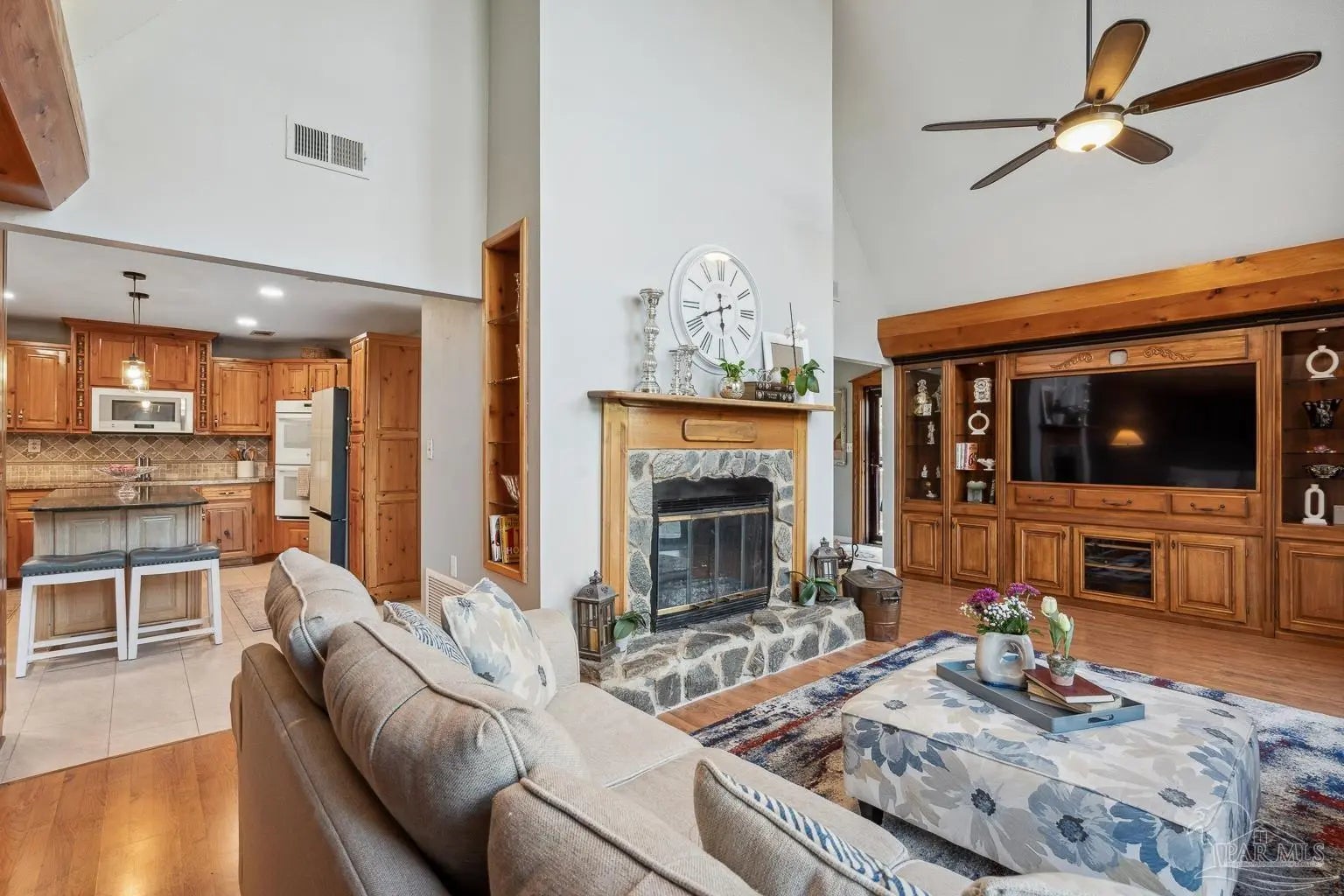 Discover a rare, one-owner lakefront retreat designed as an entertainer’s dream and a place where lasting memories are made. This custom-built home was created as a private escape, offering the feeling of a permanent vacation without ever needing to leave home. Set on a peaceful 1.14-acre waterfront property, the home delivers tranquility, privacy, and room to spread out, all while remaining conveniently close to beautiful beaches and nearby bases. The lifestyle truly begins outdoors. Expansive entertaining spaces unfold from a covered lanai and screened-in pool area, flowing seamlessly into an outdoor kitchen any chef would dream of, complete with large grills, a separate smoker, an industrial-sized outdoor refrigerator, and a wet bar with solid surface counters. Just beyond, a fully enclosed and private hot tub area creates a true outdoor oasis designed for relaxation year-round. All of it overlooks the lake and a gazebo-style private dock, perfect for fishing, reflection, and unforgettable sunrises and sunsets. Inside, the main living level brings together the living room, dining area, kitchen, and primary suite in a way that feels open, welcoming, and effortless. The kitchen has been updated with upgraded countertops, modern lighting, newer appliances, and a double oven, making it ideal for entertaining, while several bathrooms throughout the home feature well-planned upgrades that add comfort and style. A wraparound porch invites slow mornings and long evenings, offering a front-row seat to the surrounding natural beauty. Upstairs, additional bedrooms and a full bath provide comfortable accommodations for family and guests. Downstairs, a solid concrete construction level offers exceptional flexibility, featuring a wet bar, billiards area, and a built-in Murphy bed, 1/2 bath and laundry area making it an ideal bonus area , 4th bedroom, or private suite. This is THE ONE!