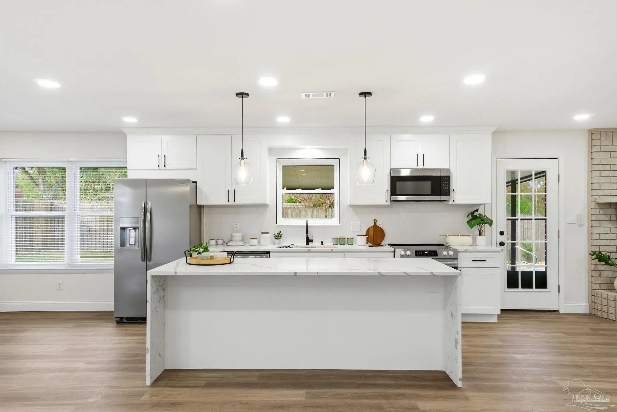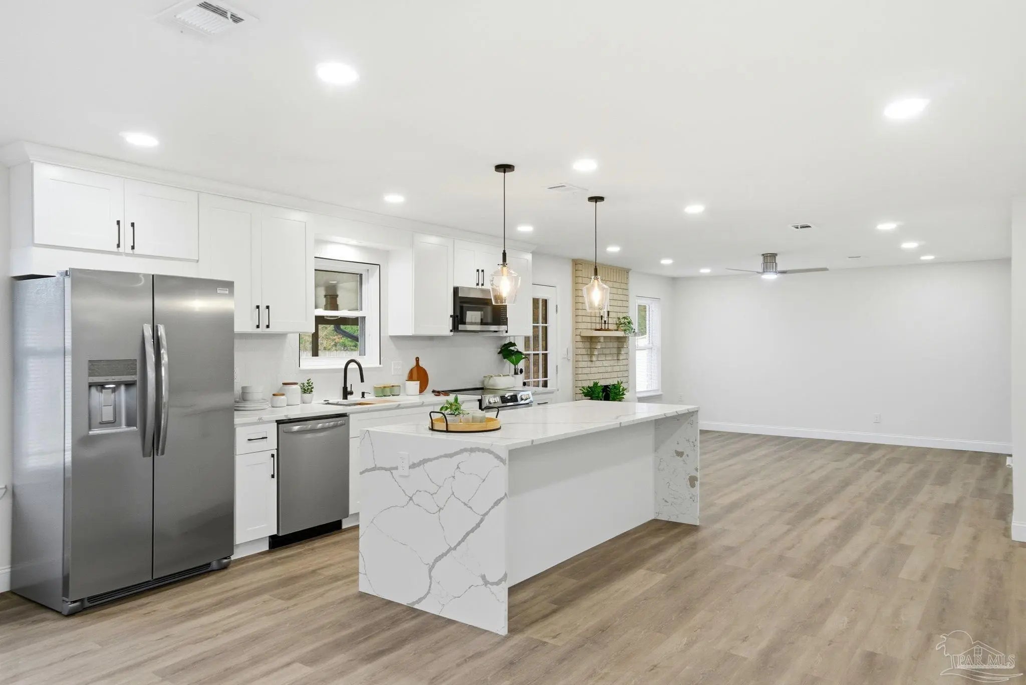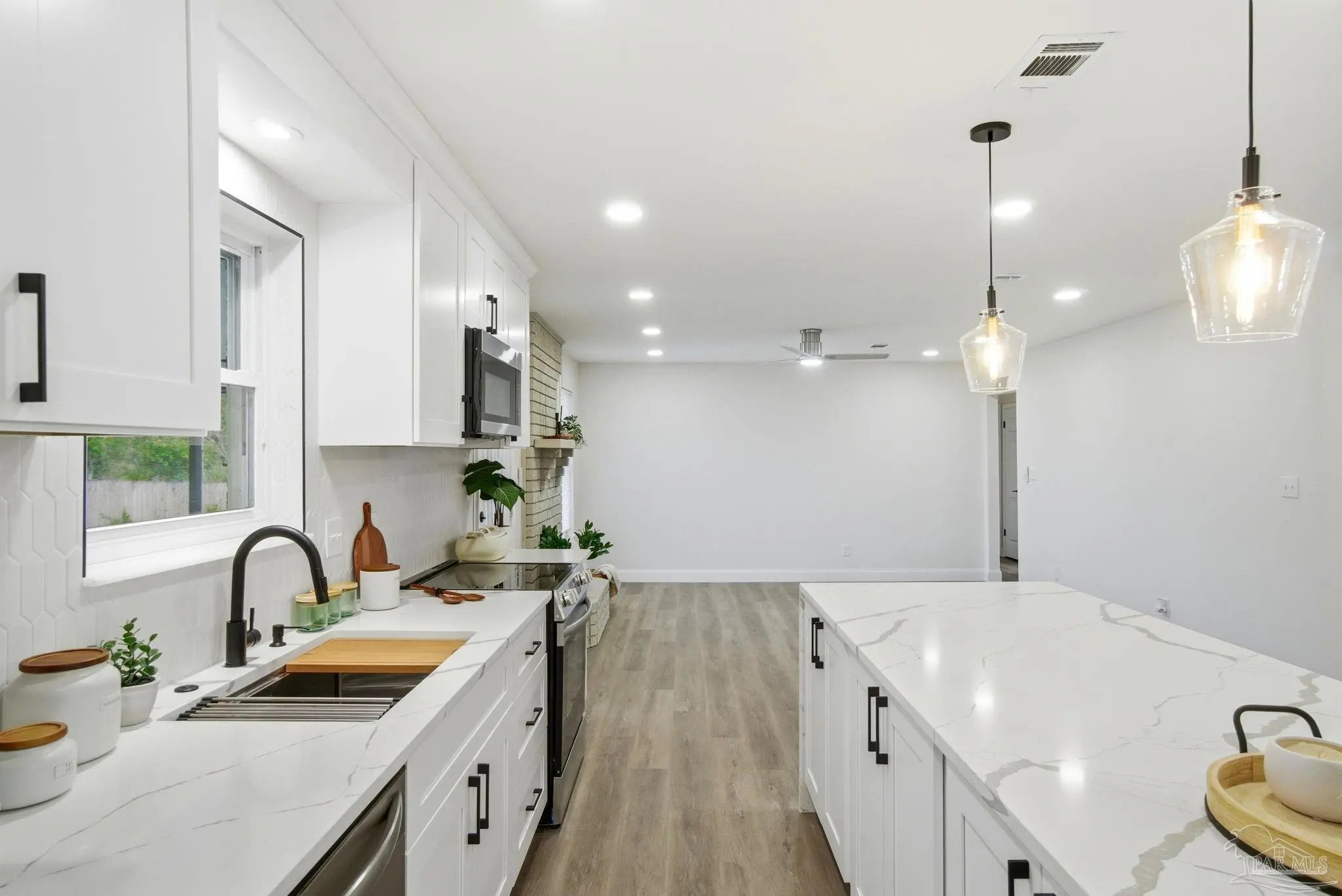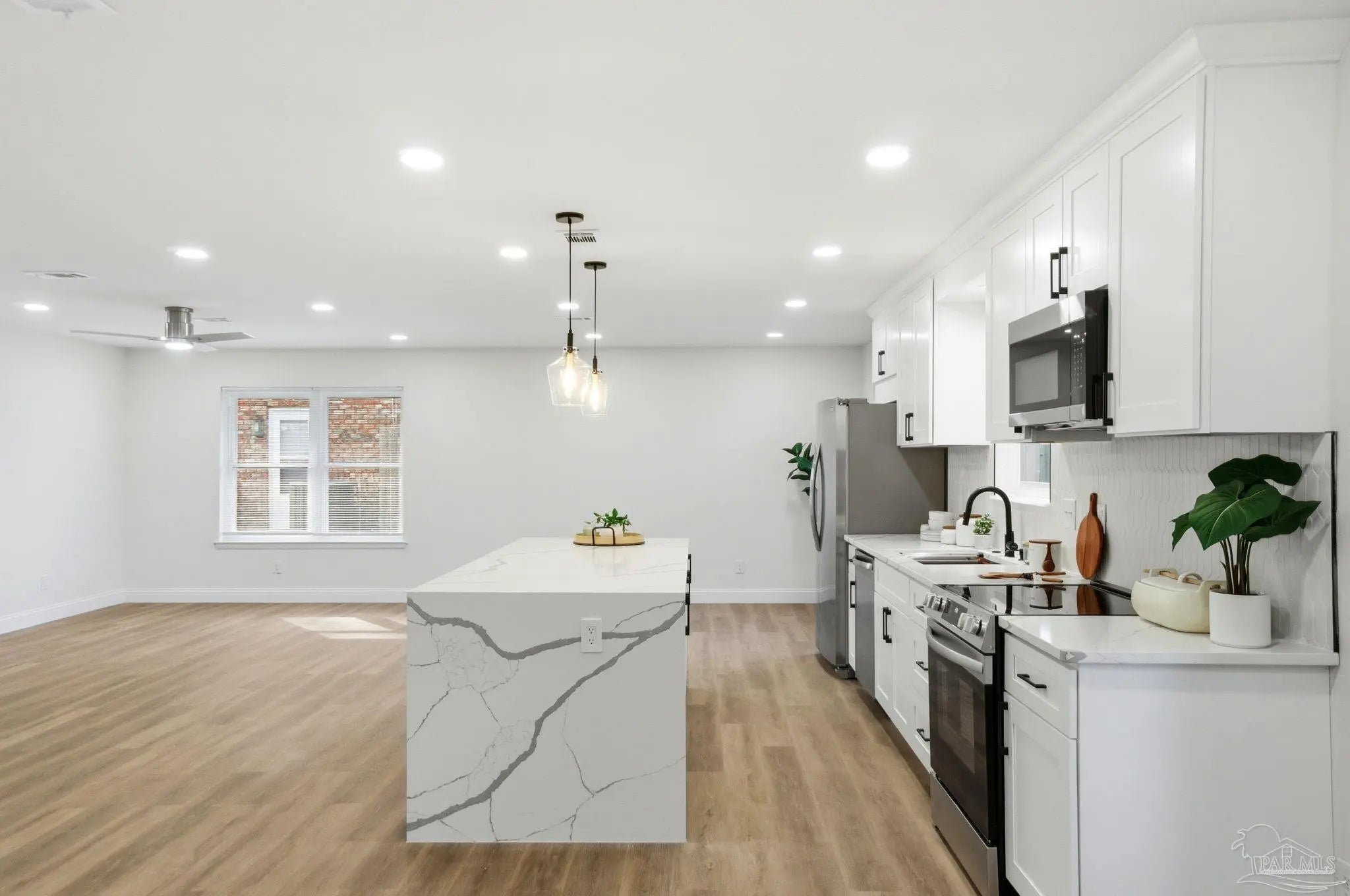 Beautifully Renovated Home with Pool in a Prime Central Location Welcome to this stunning fully renovated 3-bedroom, 2-bath home, ideally located just minutes from shopping, dining, and downtown. This move-in-ready property blends modern design with quality craftsmanship throughout. As you enter, you’re immediately welcomed by a bright open-concept floor plan with a beautifully designed kitchen at the heart of the home. The kitchen features a large quartz waterfall island, stainless steel appliances, a deep sink, and elegant pendant lighting, making it perfect for entertaining and everyday living. The entire home is finished with luxury vinyl plank flooring, adding style and durability. Both bathrooms have been beautifully remodeled, featuring a walk-in glass shower and designer vanities. All bedrooms are equipped with remote-control ceiling fans for added comfort. This property has been completely remodeled from the drywall up, including all new electrical wiring, plumbing, HVAC system, and water heater, offering peace of mind and long-term value. Step outside to enjoy a screened-in porch that opens to a sparkling pool, with plenty of additional yard space for relaxing or entertaining. The property also includes two large sheds/workshops, providing excellent storage or workspace and adding exceptional value. A rare opportunity to own a fully updated home in a central location—perfect as a primary residence or investment property. Contact me today for your private tour.