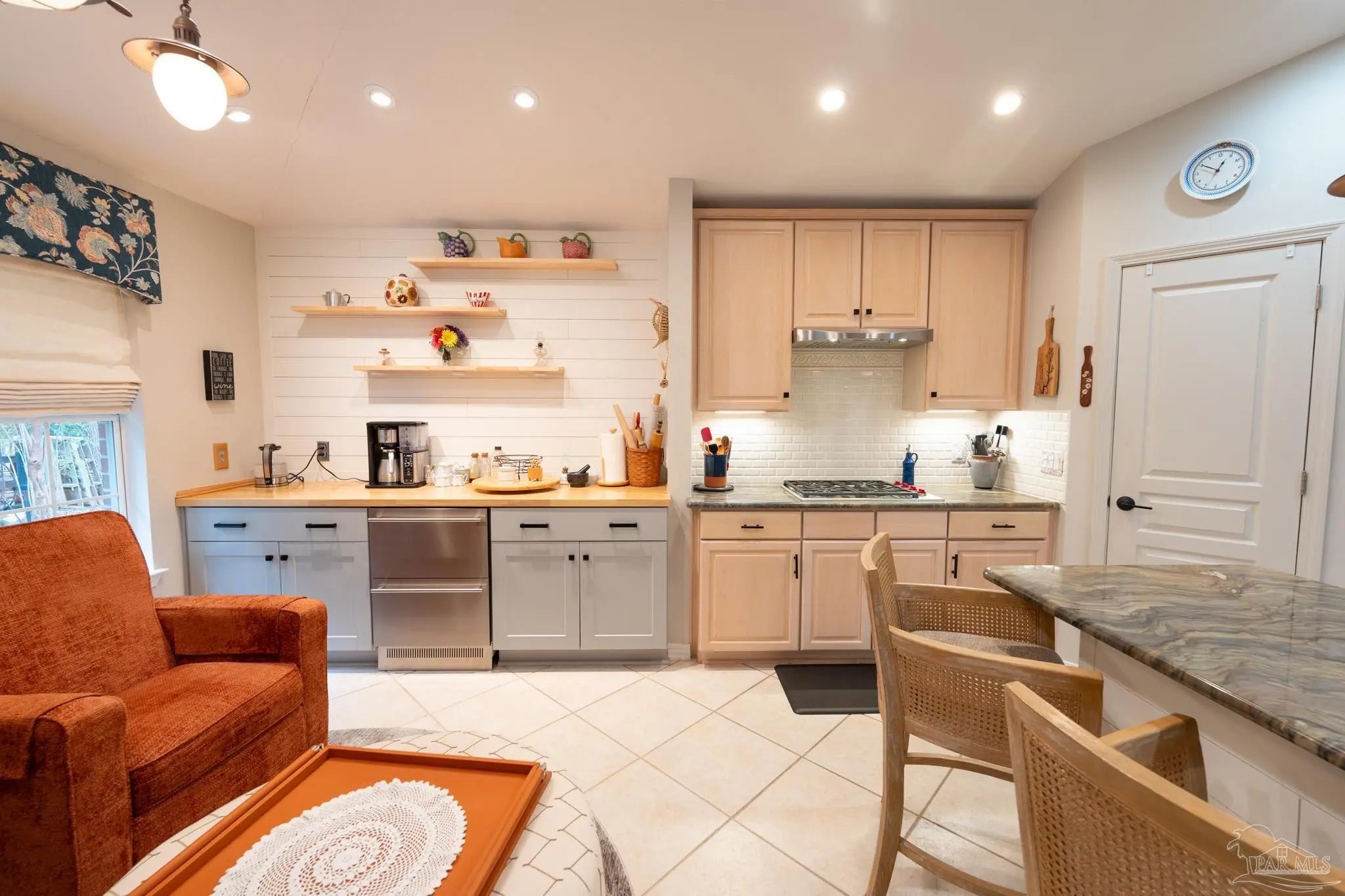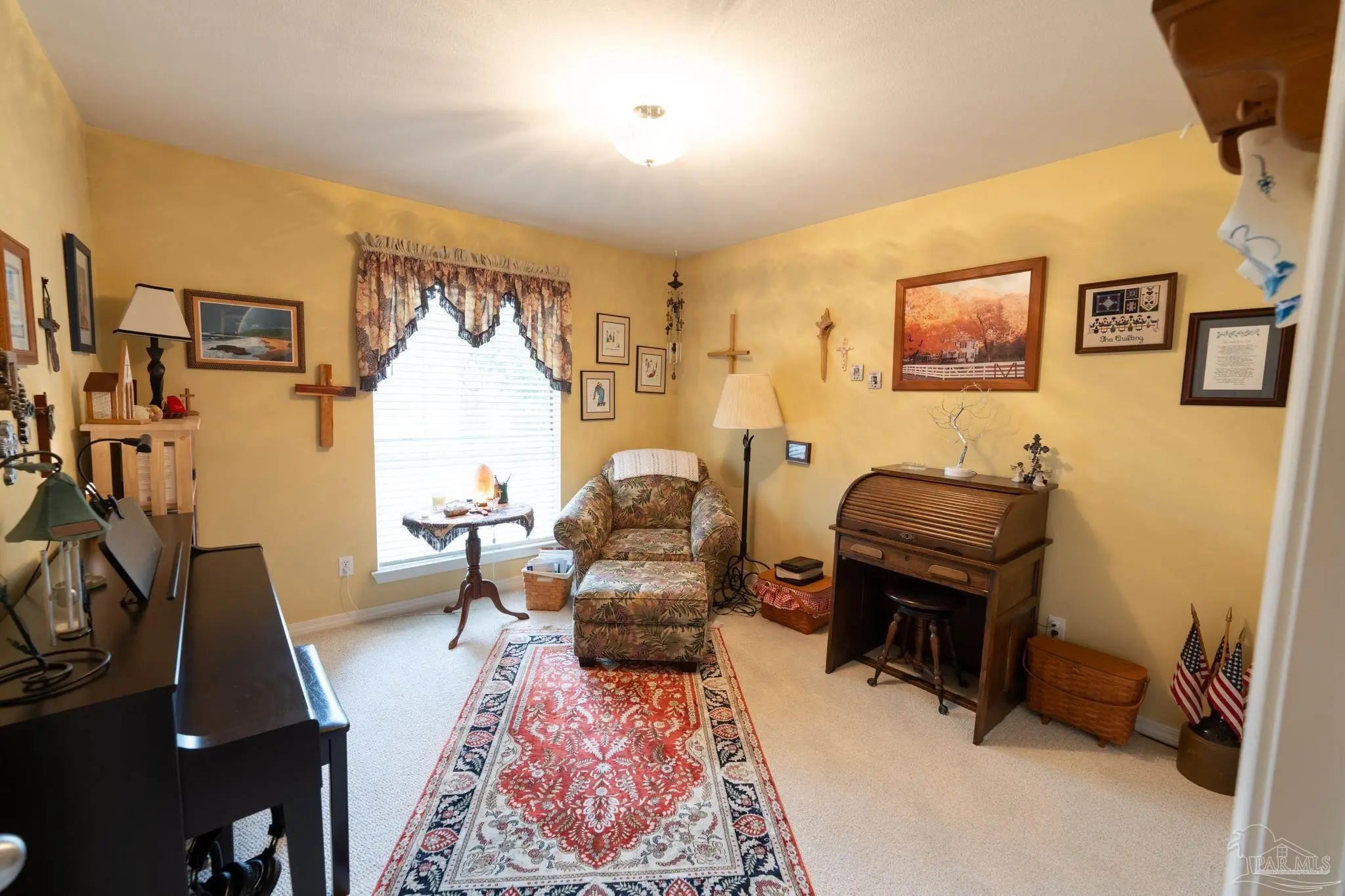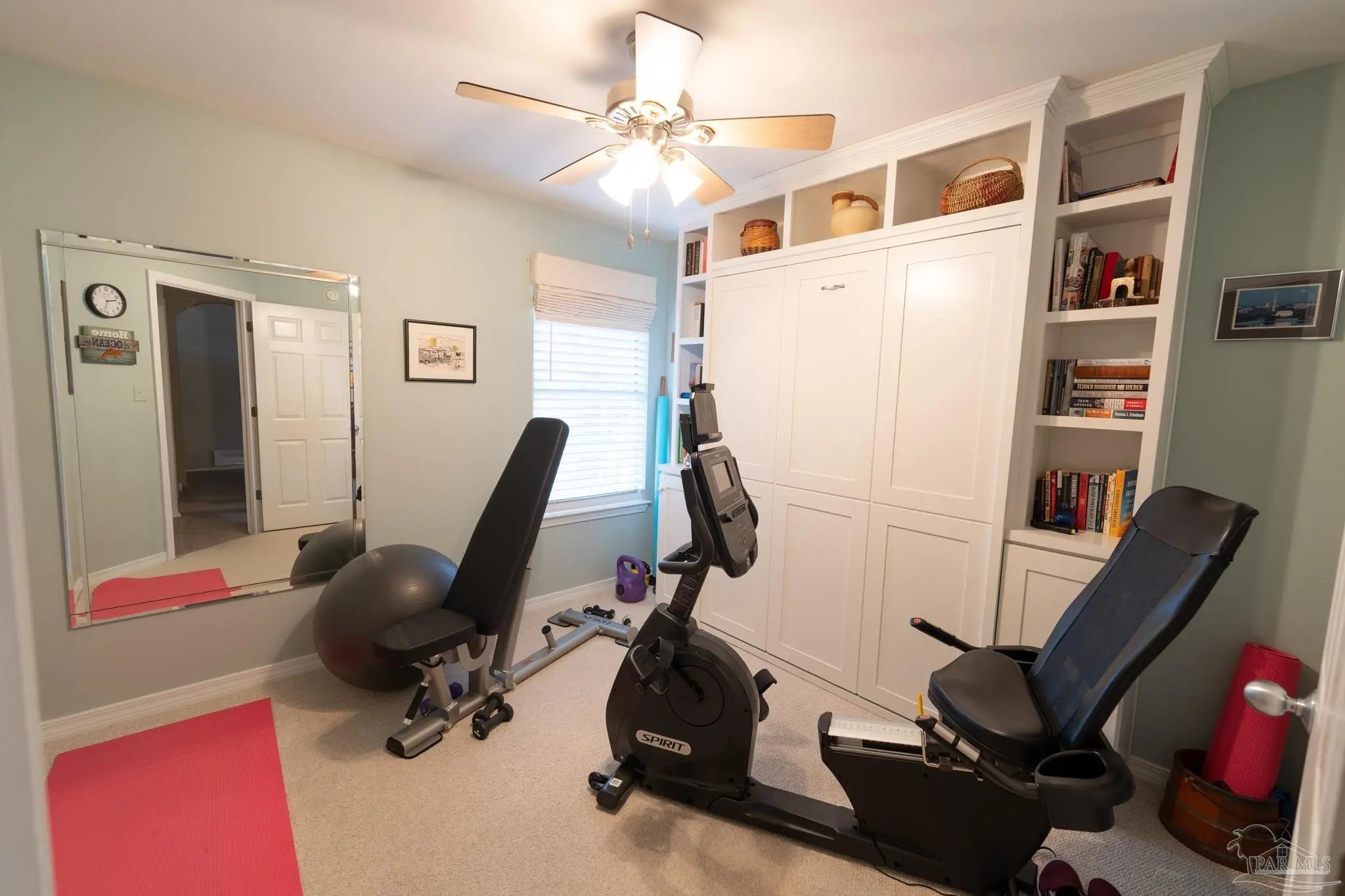 - Bookcases, Ceiling Fan(s), High Ceilings, Recessed Lighting, Sun Room