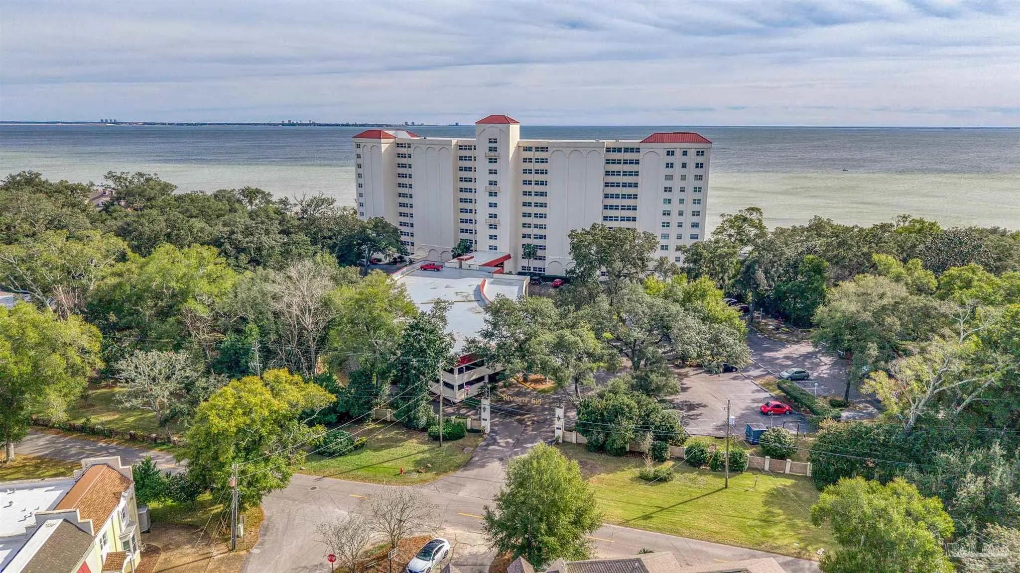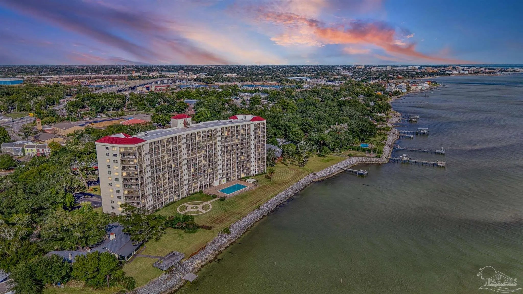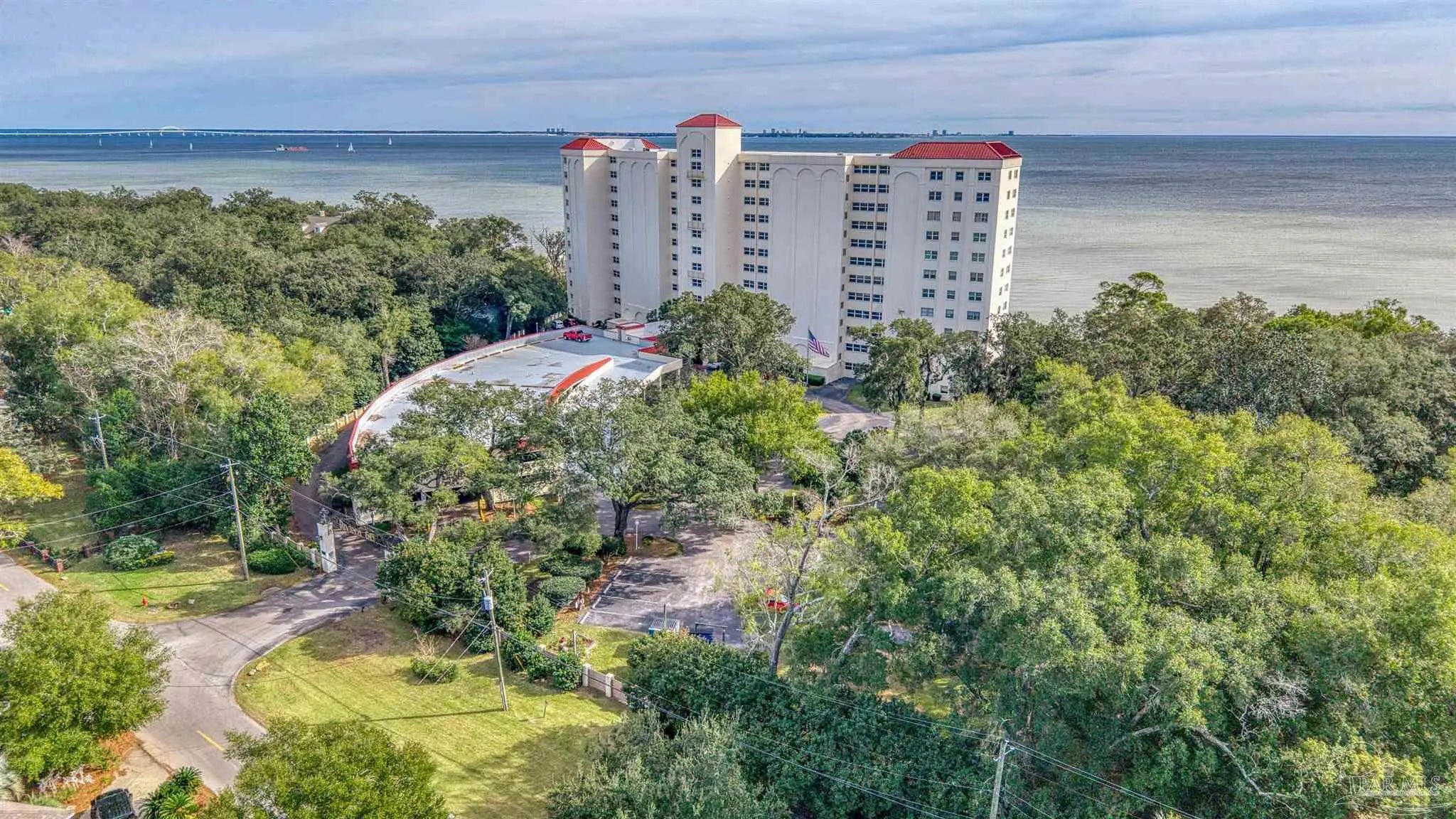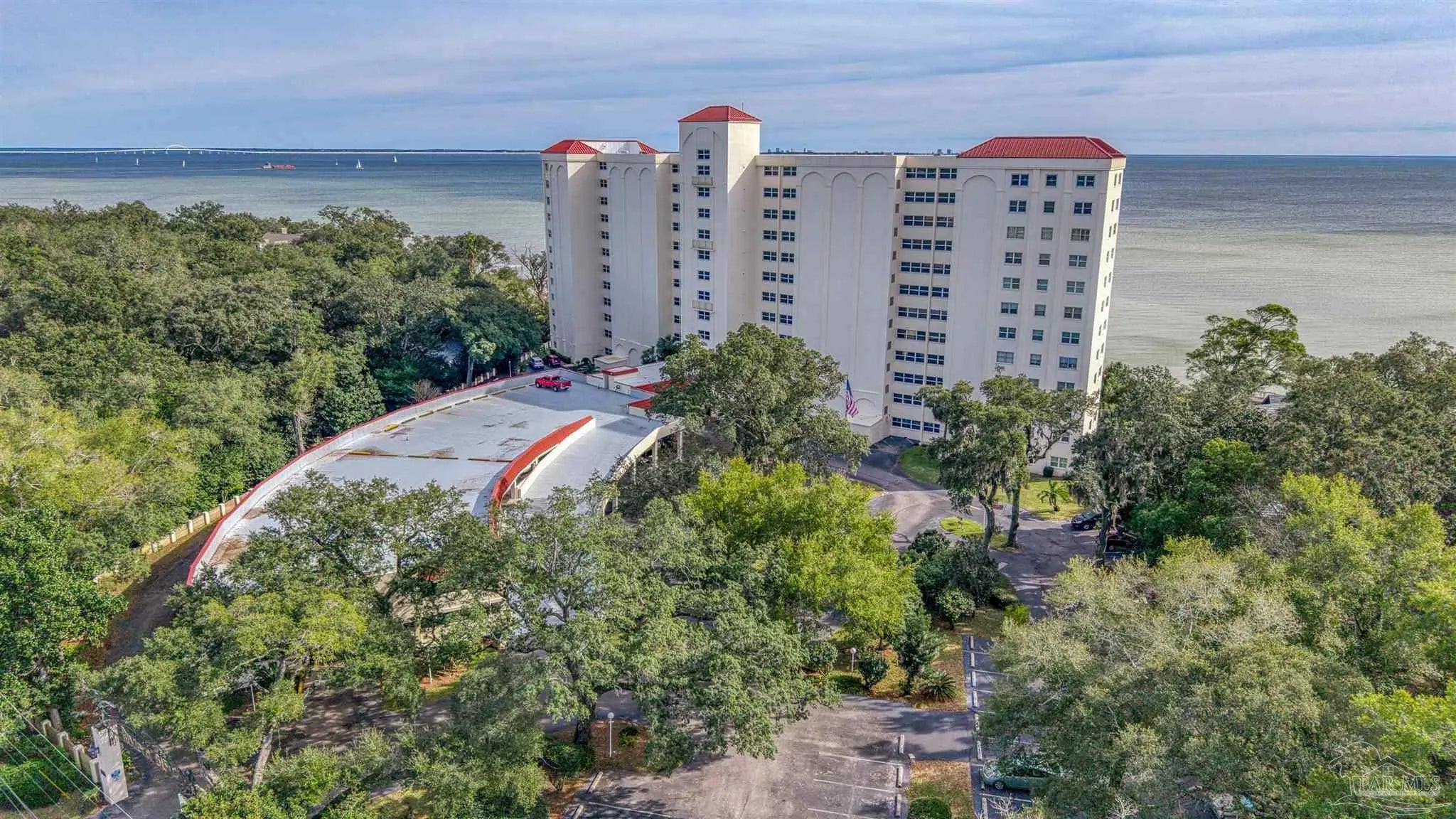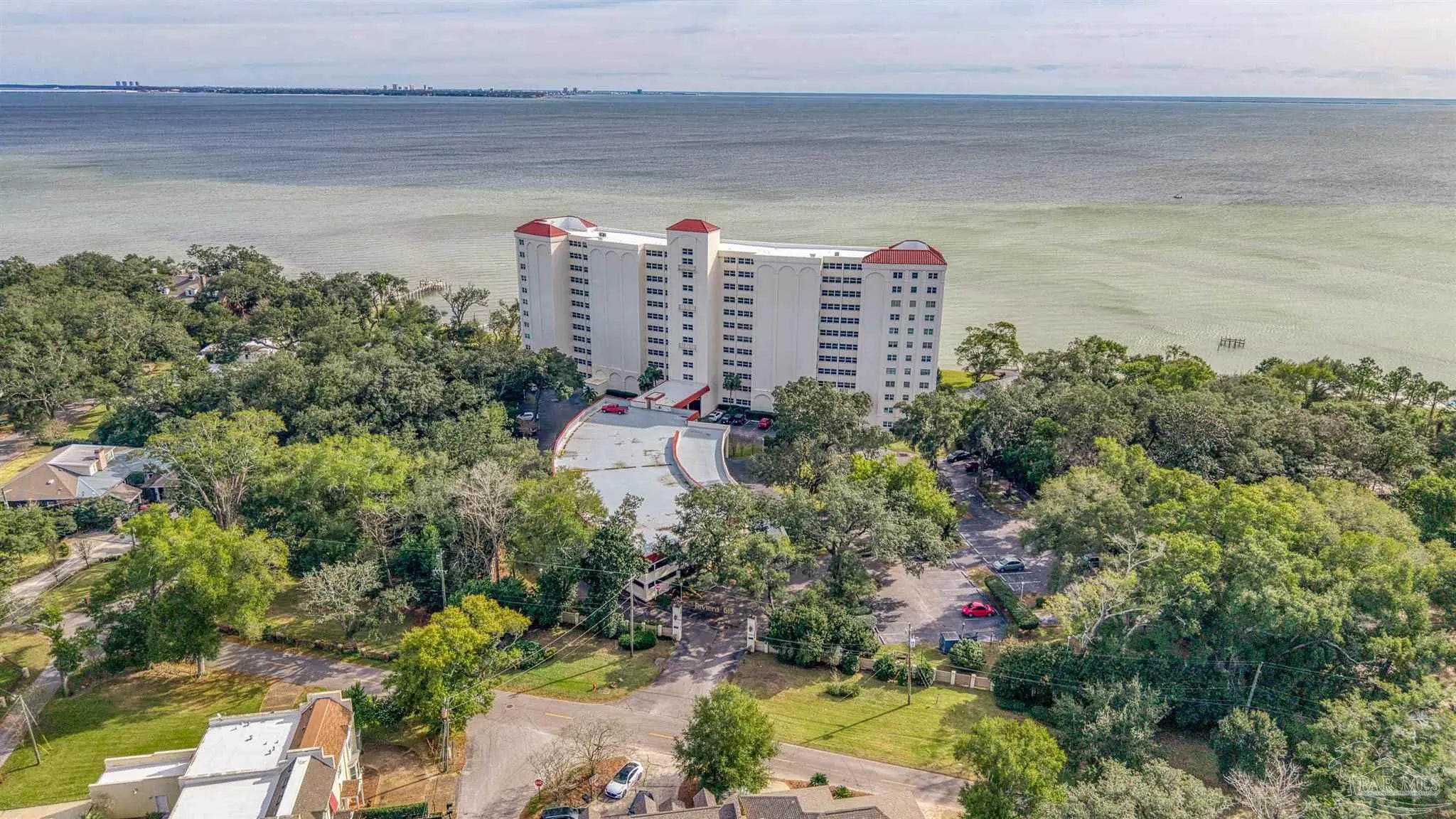 Beautiful 3rd floor Waterfront Riviera condominium with amazing views of Pensacola Bay. Enjoy the beautiful sunsets and the majestic Blue Angels practice from the 35-foot balcony with storage closet, or from the master bedroom, living room or den. The Riviera offers carefree living with 24/7 security, garage parking, car wash area, beautifully maintained grounds, and a lobby with a doorman to welcome you home. The first floor of the building includes a community room with a grand piano, library, and sitting areas. Riviera’s beautiful patio and pool overlook Pensacola Bay. This spacious unit is being sold fully furnished. The floor plan offers beautiful views from the living/dining room, bedroom, and den, each with hurricane-rated sliding glass doors and electric storm shutters. The HVAC system is less than 2 years old. The eat-in kitchen has a ceiling fan, generous cabinet storage with built-in wine rack, new dishwasher and disposal, a table, chairs, and a large pantry. The master bath has a brand-new walk-in shower and vanity sink. The master bedroom closet is very spacious and the owner used it as a combination small office/closet. The master bedroom features a ceiling fan and includes a sitting area. The seller modified the original second bedroom and created a den with a beautiful built-in bookshelf and a ceiling fan. If desired, the den can easily be converted back to a second bedroom. Just off the den is the guest bath and a hall closet set up for clothing or storage. The guest bath has a brand-new vanity and tub/shower. Also included is a large, lockable storage room across the hall from the unit. Each floor of the building has its own dedicated washers and dryers. The seller is offering a generous credit so the buyer can select new paint and flooring to match their tastes. Located minutes from the Pensacola Country Club, the Pensacola Yacht Club, downtown, shopping and our local beaches.