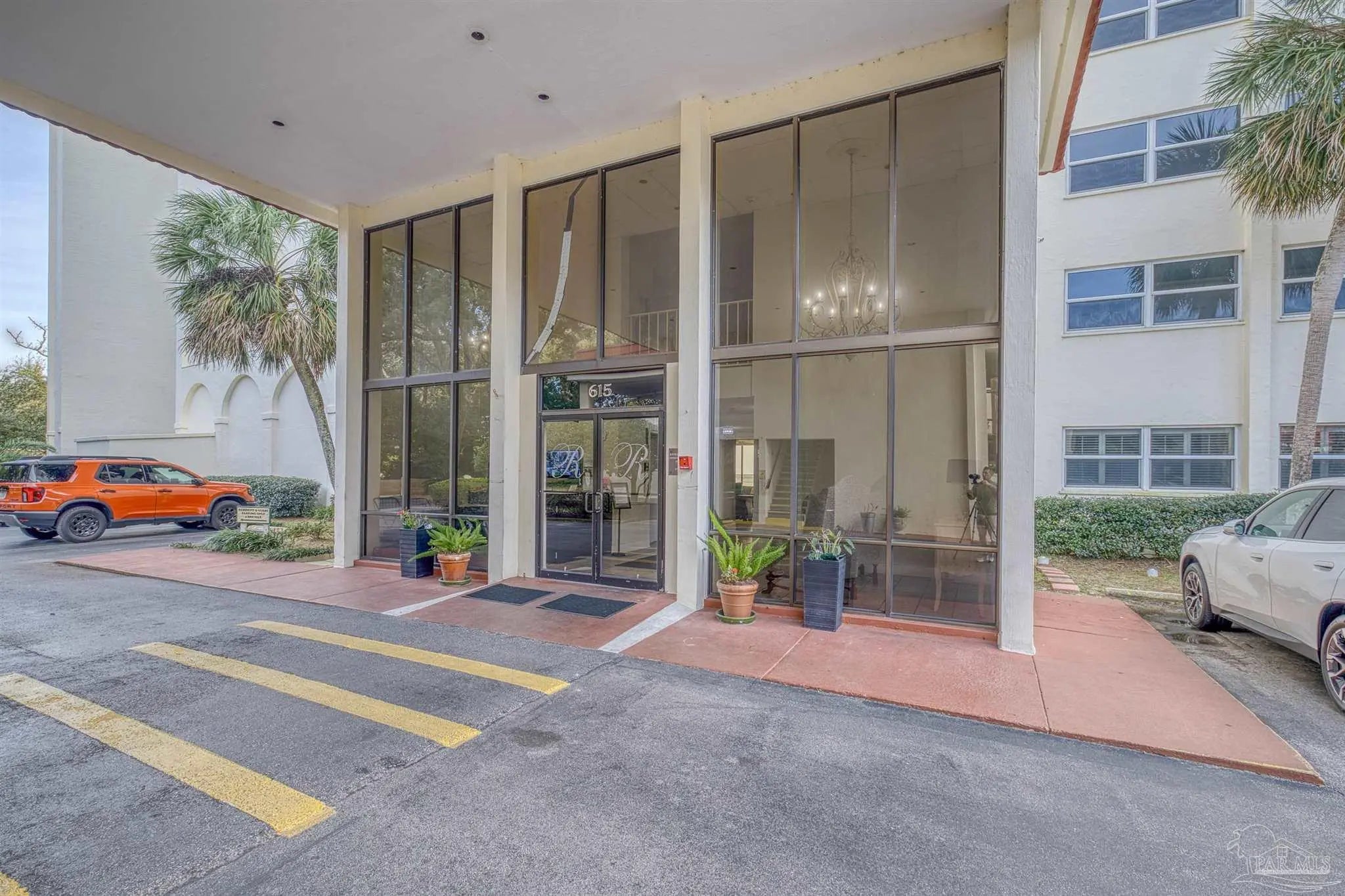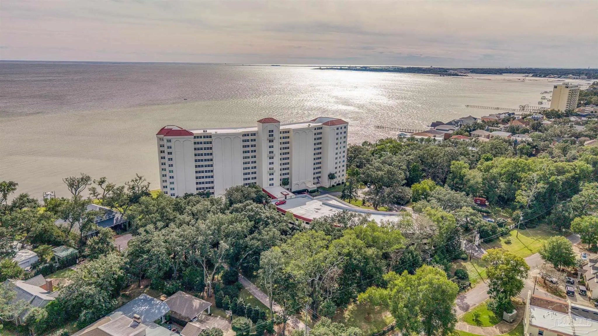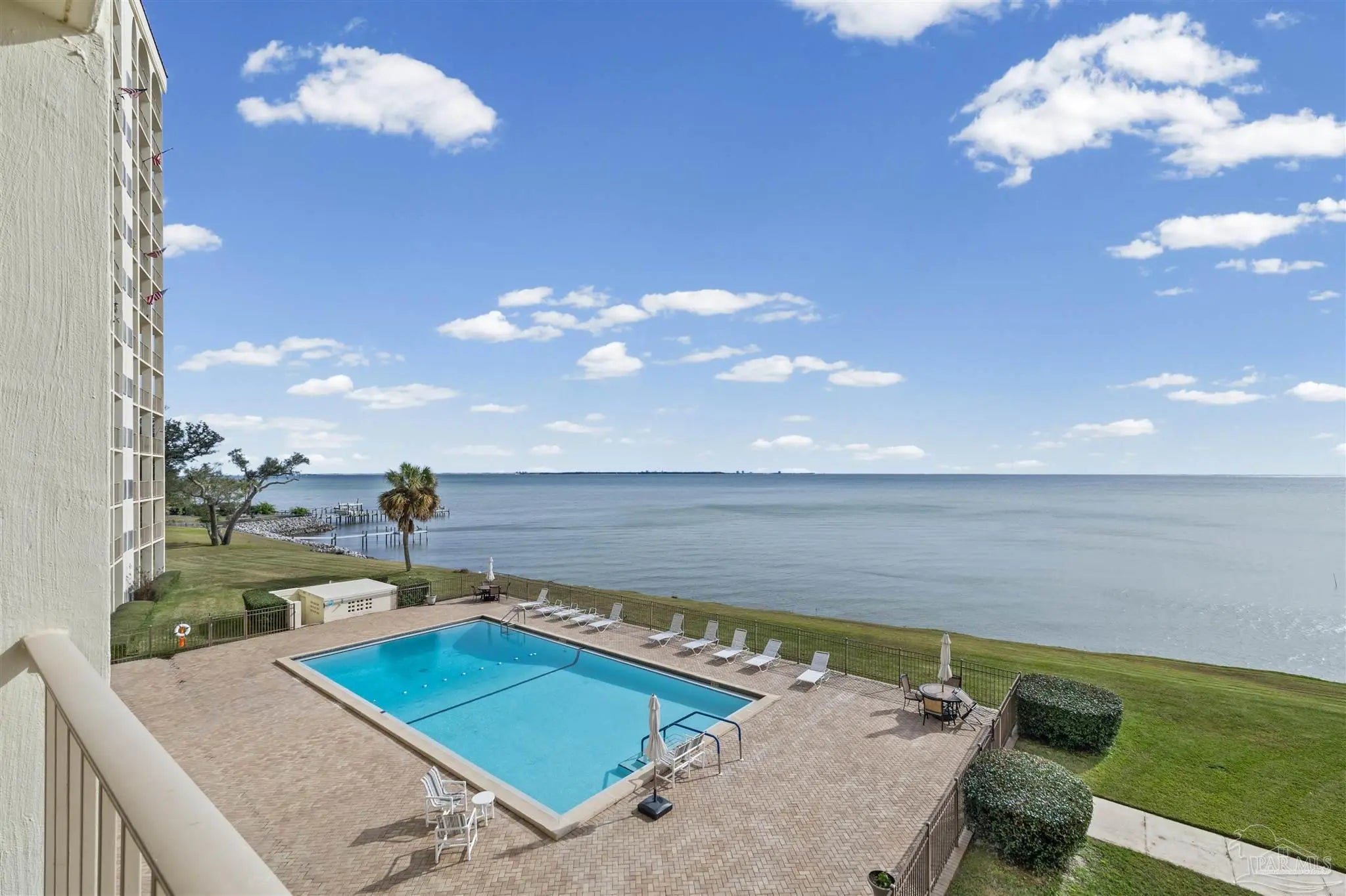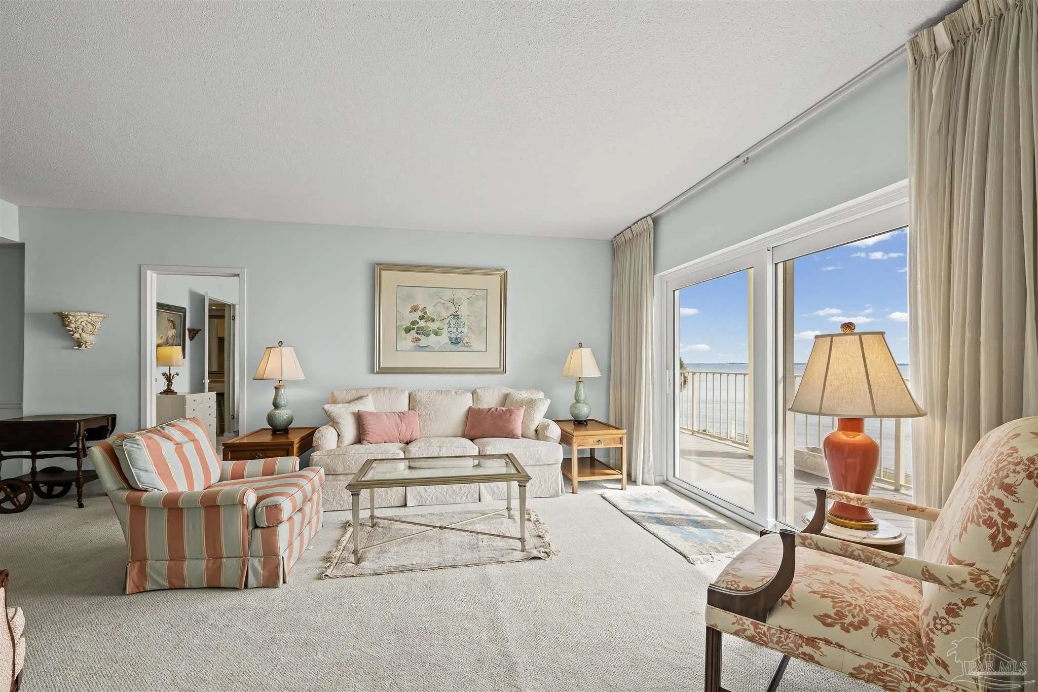Beautiful 3rd floor Waterfront Riviera condominium with amazing views of Pensacola Bay. Enjoy the beautiful sunsets and the majestic Blue Angels practice from the 35-foot balcony with storage closet, or from the master bedroom, living room or den. The Riviera offers carefree living with 24/7 security, garage parking, car wash area, beautifully maintained grounds, and a lobby with a doorman to welcome you home. The first floor of the building includes a community room with a grand piano, library, and sitting areas. Riviera’s beautiful patio and pool overlook Pensacola Bay. This spacious unit is being sold fully furnished. The floor plan offers beautiful views from the living/dining room, bedroom, and den, each with hurricane-rated sliding glass doors and electric storm shutters. The HVAC system is less than 2 years old. The eat-in kitchen has a ceiling fan, generous cabinet storage with built-in wine rack, new dishwasher and disposal, a table, chairs, and a large pantry. The master bath has a brand-new walk-in shower and vanity sink. The master bedroom closet is very spacious and the owner used it as a combination small office/closet. The master bedroom features a ceiling fan and includes a sitting area. The seller modified the original second bedroom and created a den with a beautiful built-in bookshelf and a ceiling fan. If desired, the den can easily be converted back to a second bedroom. Just off the den is the guest bath and a hall closet set up for clothing or storage. The guest bath has a brand-new vanity and tub/shower. Also included is a large, lockable storage room across the hall from the unit. Each floor of the building has its own dedicated washers and dryers. The seller is offering a generous credit so the buyer can select new paint and flooring to match their tastes. Located minutes from the Pensacola Country Club, the Pensacola Yacht Club, downtown, shopping and our local beaches.