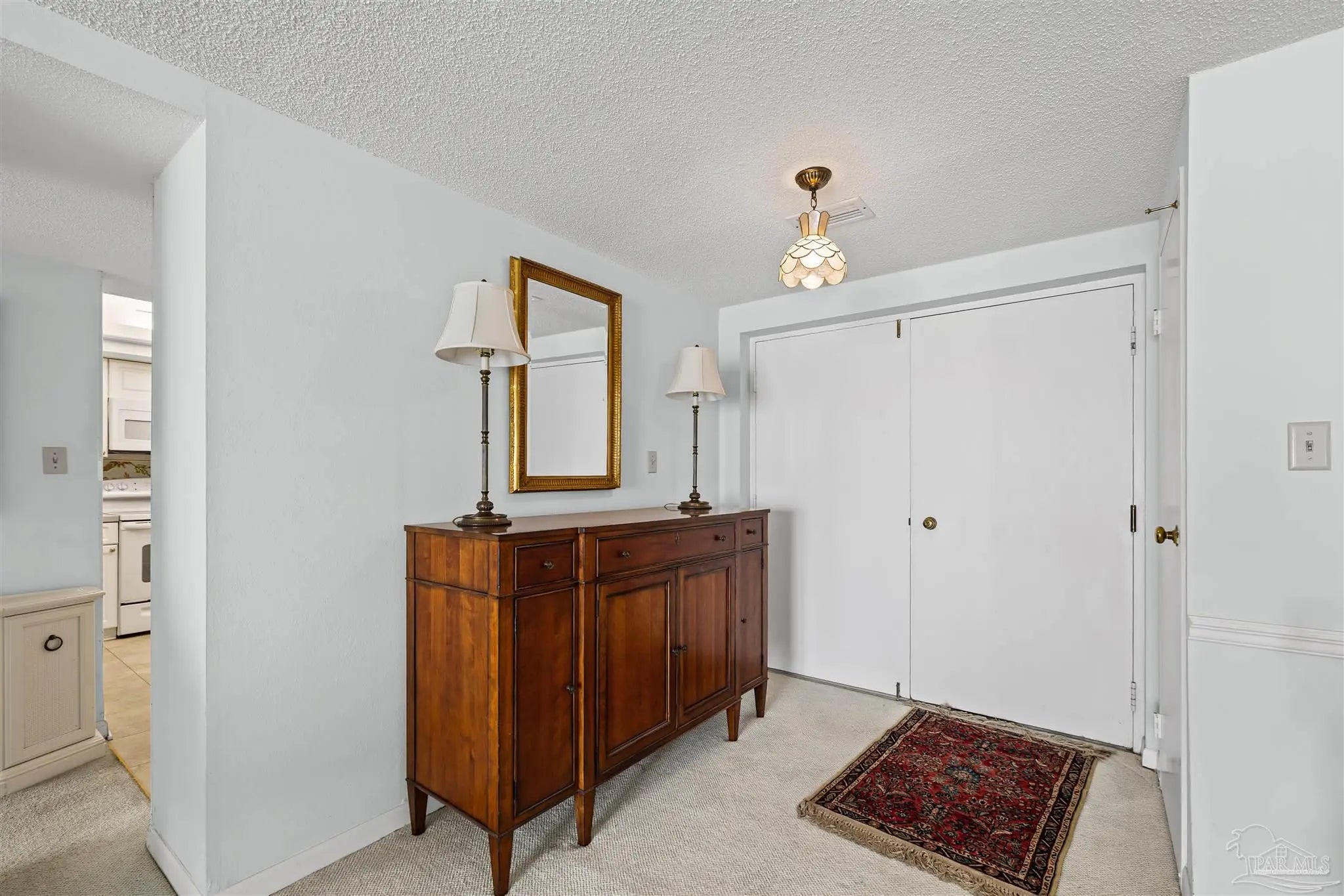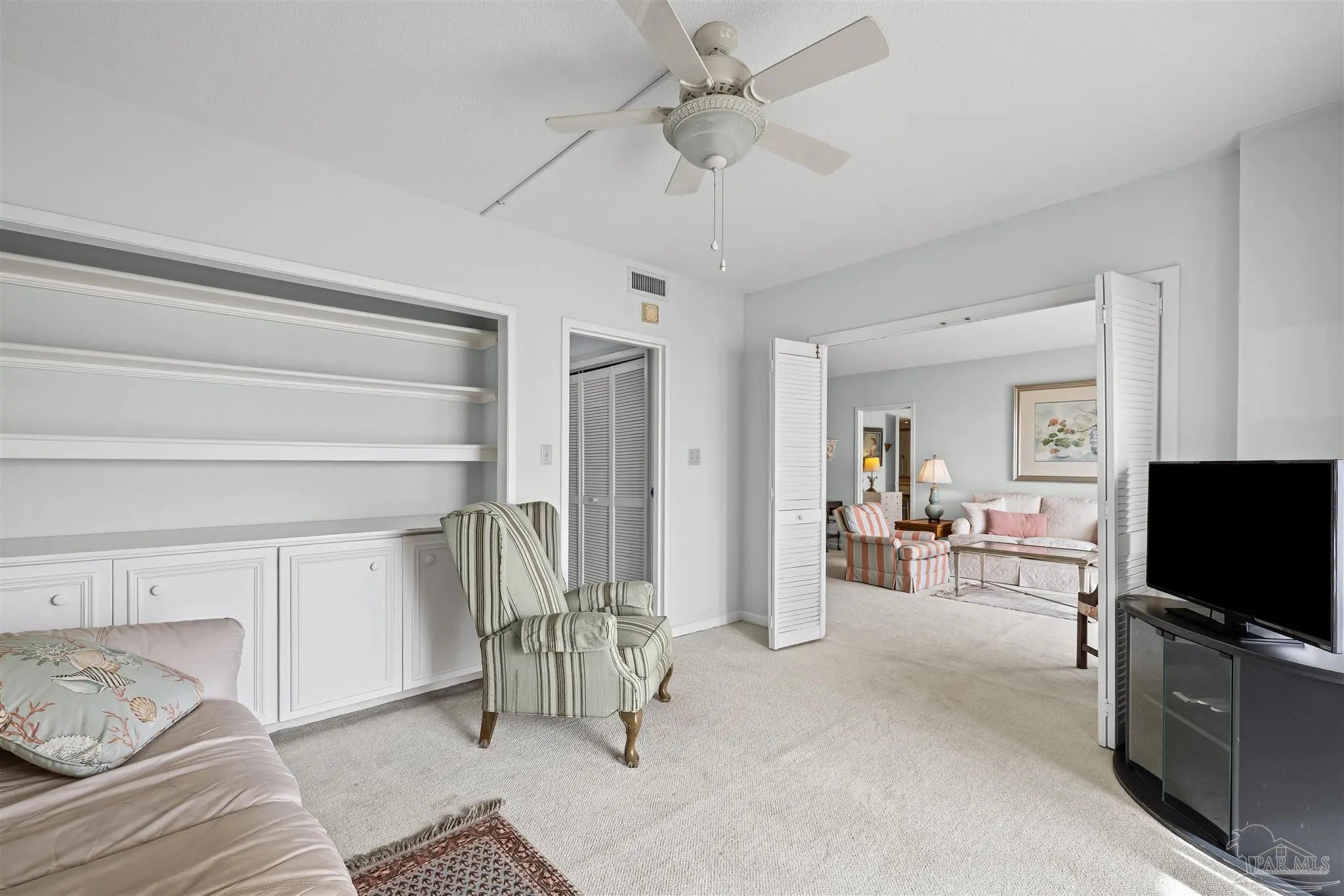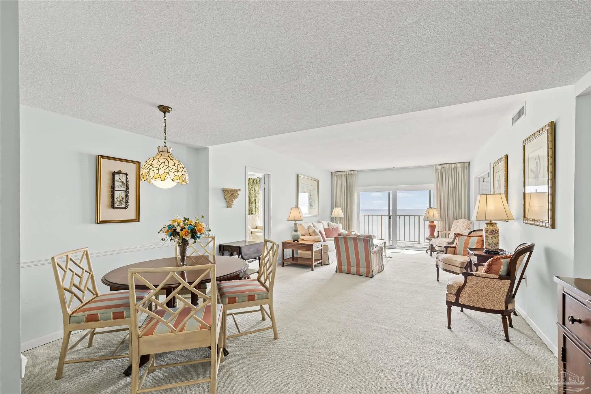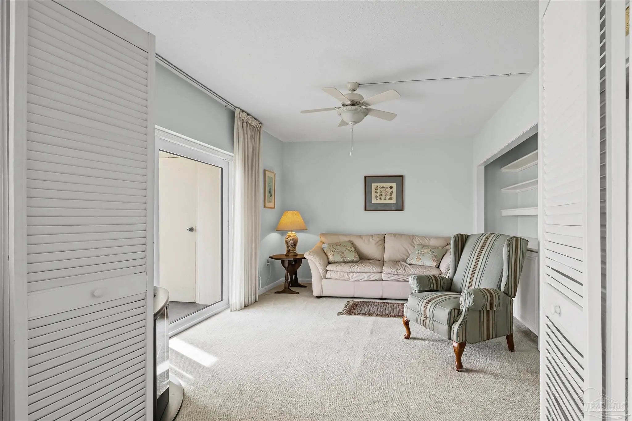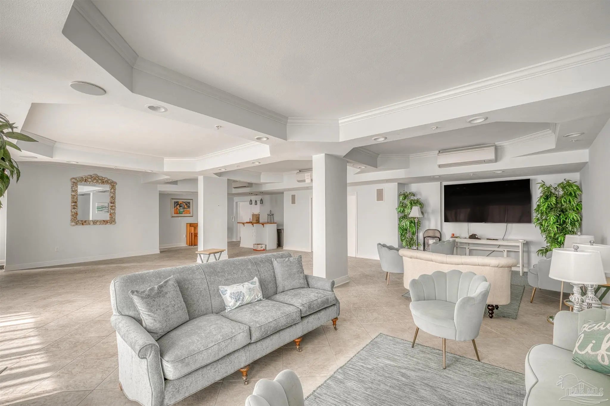 Beautiful 3rd floor Waterfront Riviera condominium with amazing views of Pensacola Bay. Enjoy the beautiful sunsets and the majestic Blue Angels practice from the 35-foot balcony with storage closet, or from the master bedroom, living room or den. The Riviera offers carefree living with 24/7 security, garage parking, car wash area, beautifully maintained grounds, and a lobby with a doorman to welcome you home. The first floor of the building includes a community room with a grand piano, library, and sitting areas. Riviera’s beautiful patio and pool overlook Pensacola Bay. This spacious unit is being sold fully furnished. The floor plan offers beautiful views from the living/dining room, bedroom, and den, each with hurricane-rated sliding glass doors and electric storm shutters. The HVAC system is less than 2 years old. The eat-in kitchen has a ceiling fan, generous cabinet storage with built-in wine rack, new dishwasher and disposal, a table, chairs, and a large pantry. The master bath has a brand-new walk-in shower and vanity sink. The master bedroom closet is very spacious and the owner used it as a combination small office/closet. The master bedroom features a ceiling fan and includes a sitting area. The seller modified the original second bedroom and created a den with a beautiful built-in bookshelf and a ceiling fan. If desired, the den can easily be converted back to a second bedroom. Just off the den is the guest bath and a hall closet set up for clothing or storage. The guest bath has a brand-new vanity and tub/shower. Also included is a large, lockable storage room across the hall from the unit. Each floor of the building has its own dedicated washers and dryers. The seller is offering a generous credit so the buyer can select new paint and flooring to match their tastes. Located minutes from the Pensacola Country Club, the Pensacola Yacht Club, downtown, shopping and our local beaches.