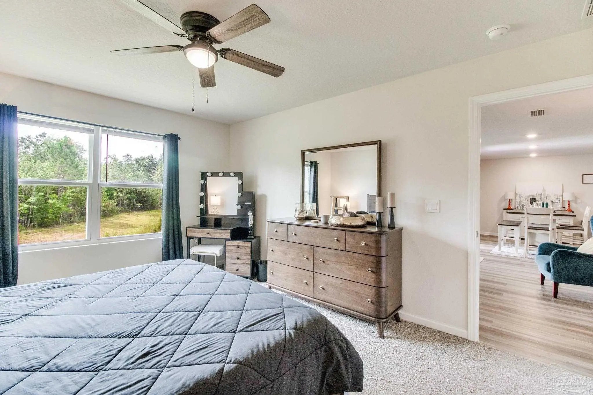 ***Open House this Saturday Jan 17 1-3pm. Door Prizes***This home comes with instant savings—solar panels to be paid off at closing, meaning virtually no power bills and an energy-efficient lifestyle from day one. For electric vehicle owners, this is a major bonus, allowing you to charge your EV at home using solar power, significantly reducing or even eliminating fuel costs while enjoying the convenience of overnight charging. This 4-bedroom, 2-bath home in Preserve at Deer Run features an open layout that makes entertaining easy. The kitchen features granite countertops, a deep undermount sink, stainless steel appliances, a large island with bar seating, and a large corner pantry for everyday convenience. The master suite is privately tucked away and includes a spacious walk-in closet and an en-suite bath with double vanities, granite counters, a walk-in shower, and ample storage. Durable, stylish vinyl flooring runs through the main living areas, while plush carpet in the bedrooms adds warmth and comfort. Smart Home features come standard, including keyless entry, video doorbell, smart lighting, and thermostat control—all easily managed through a central touch panel or your smartphone. Situated on one of the largest lots in the neighborhood, this home backs up to a peaceful pond, providing added privacy and a beautiful natural backdrop. Preserve at Deer Run also offers excellent community amenities such as a pool, grilling area, and cabana with restrooms. Energy efficiency, EV-friendly living, and thoughtful design come together in this move-in-ready home—schedule your private tour today.