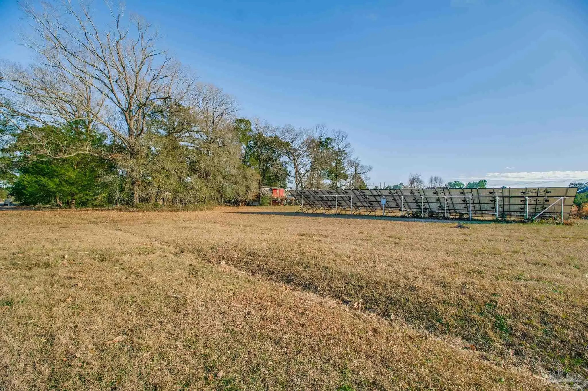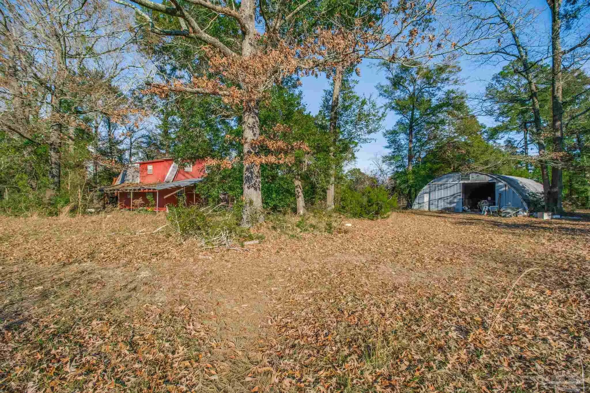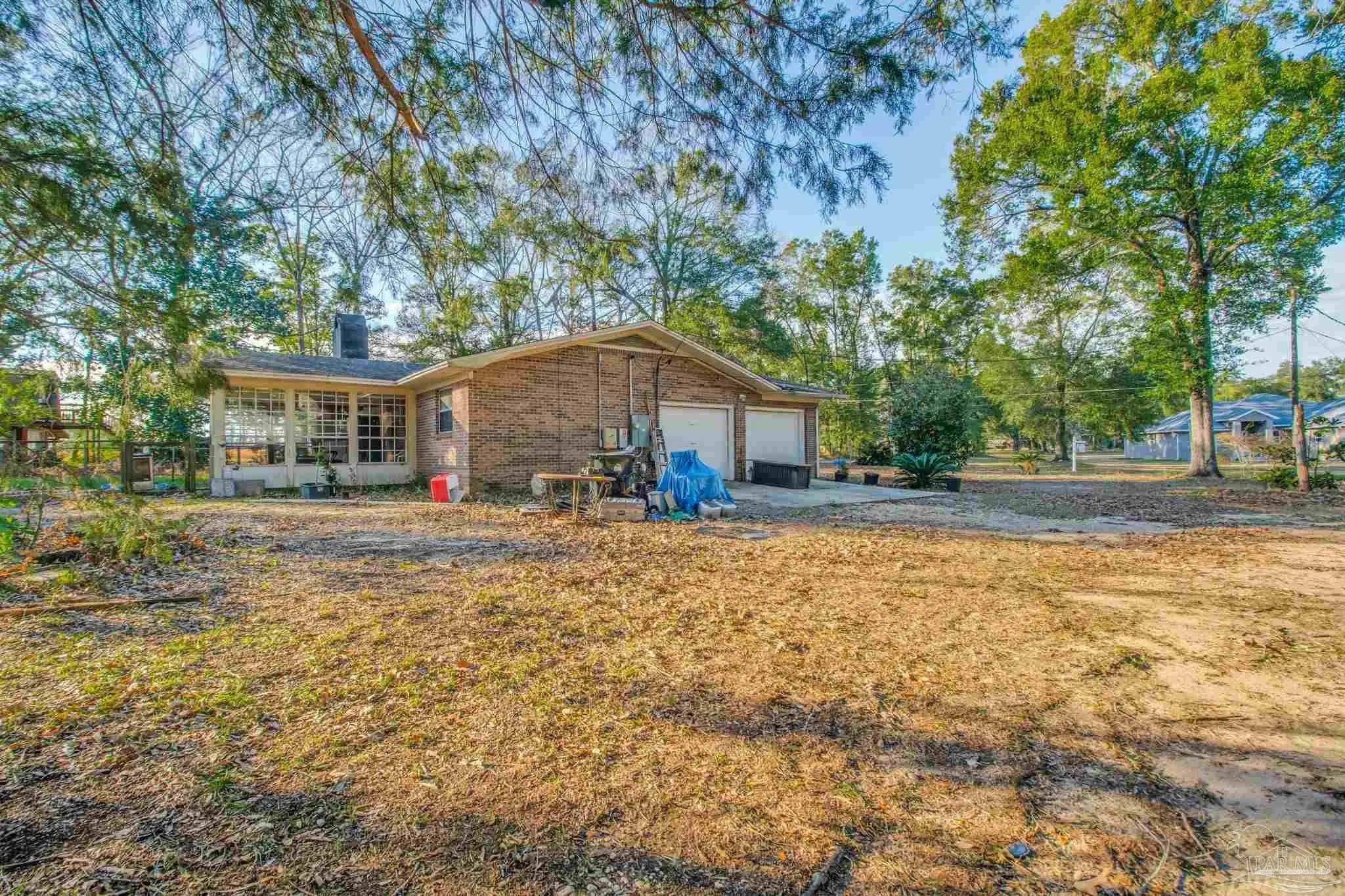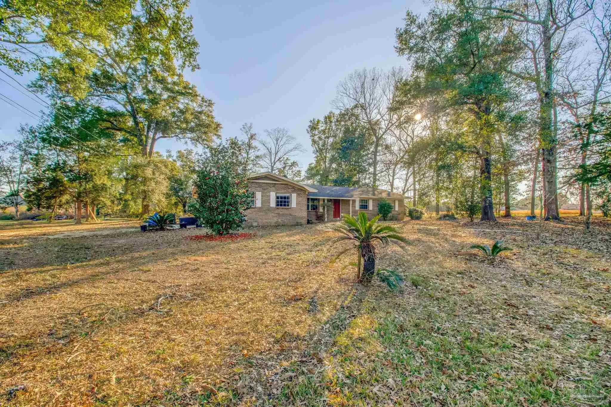 Rare opportunity. Four acres this close to the city does not come around often, and at $350,000 it is expected to move quickly. This property delivers the space and flexibility buyers are searching for right now. A solid all-brick home offers 3 bedrooms, 2 bathrooms, formal living and dining rooms, a den with fireplace, a sunroom, and an attached double garage. The layout is comfortable, functional, and ready for its next chapter. Beyond the main home, the value multiplies. A detached barn and garage has been converted to an upstairs one-bedroom, one-bath apartment currently generating approximately $750 per month including utilities, with a workshop below. A large Quonset hut provides serious storage for boats, vehicles, equipment, or hobbies. There is room for horses, livestock, and future expansion. The land itself is a standout. Mature pecan trees, young blueberry bushes, a Japanese plum tree, mandarin orange tree, and sago palms are already established, along with native vegetation like beauty berry bushes and blackberry vines. A full 50-amp RV hookup with water, power, and septic is in place, and a solar panel array powers the entire property. All of this while still being close to everyday conveniences. Located near the Navy Federal complex, less than 20 minutes to downtown Pensacola, about 30 minutes to Perdido Key, 35 minutes to Pensacola Beach, and under an hour to Gulf Shores. This is the kind of acreage buyers wait years to find, close enough to everything yet private and usable. Property is being sold as is. Schedule your showing promptly, opportunities like this do not last.