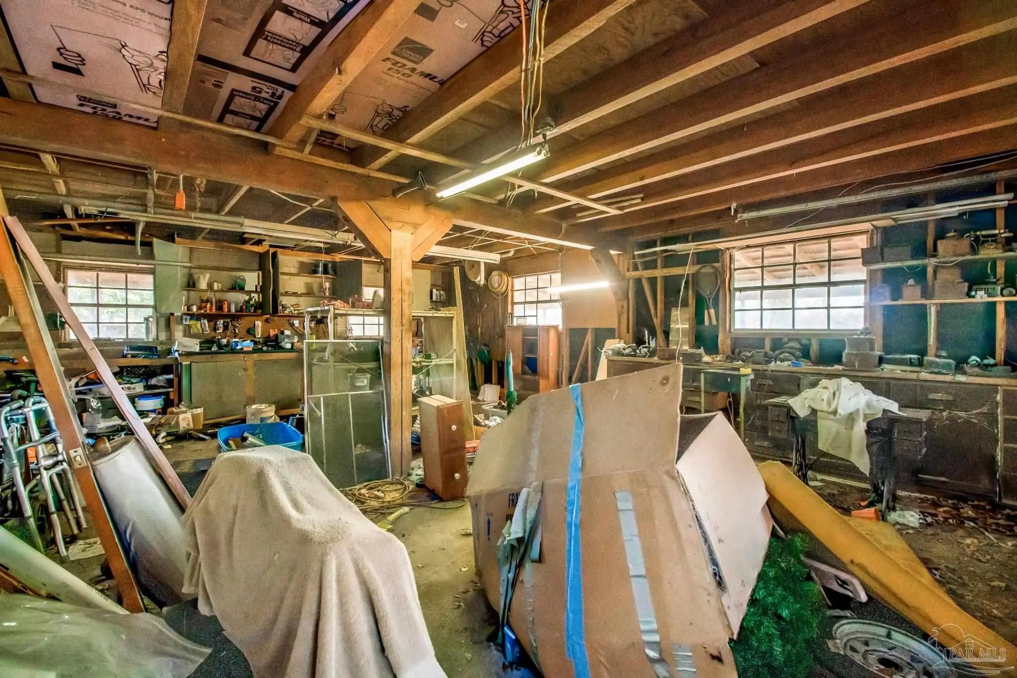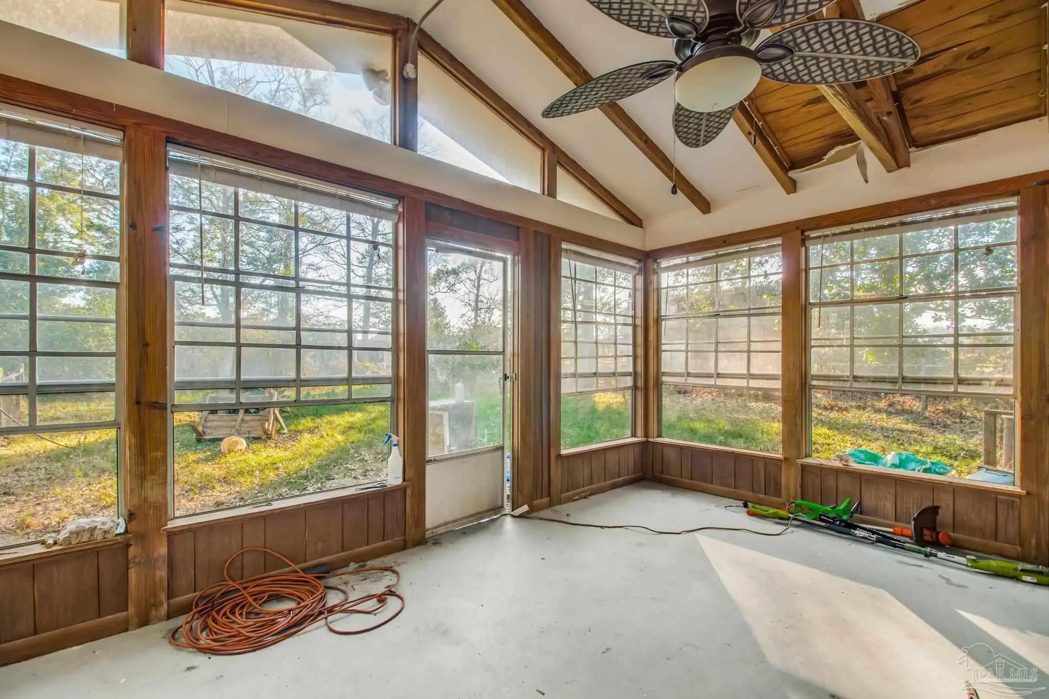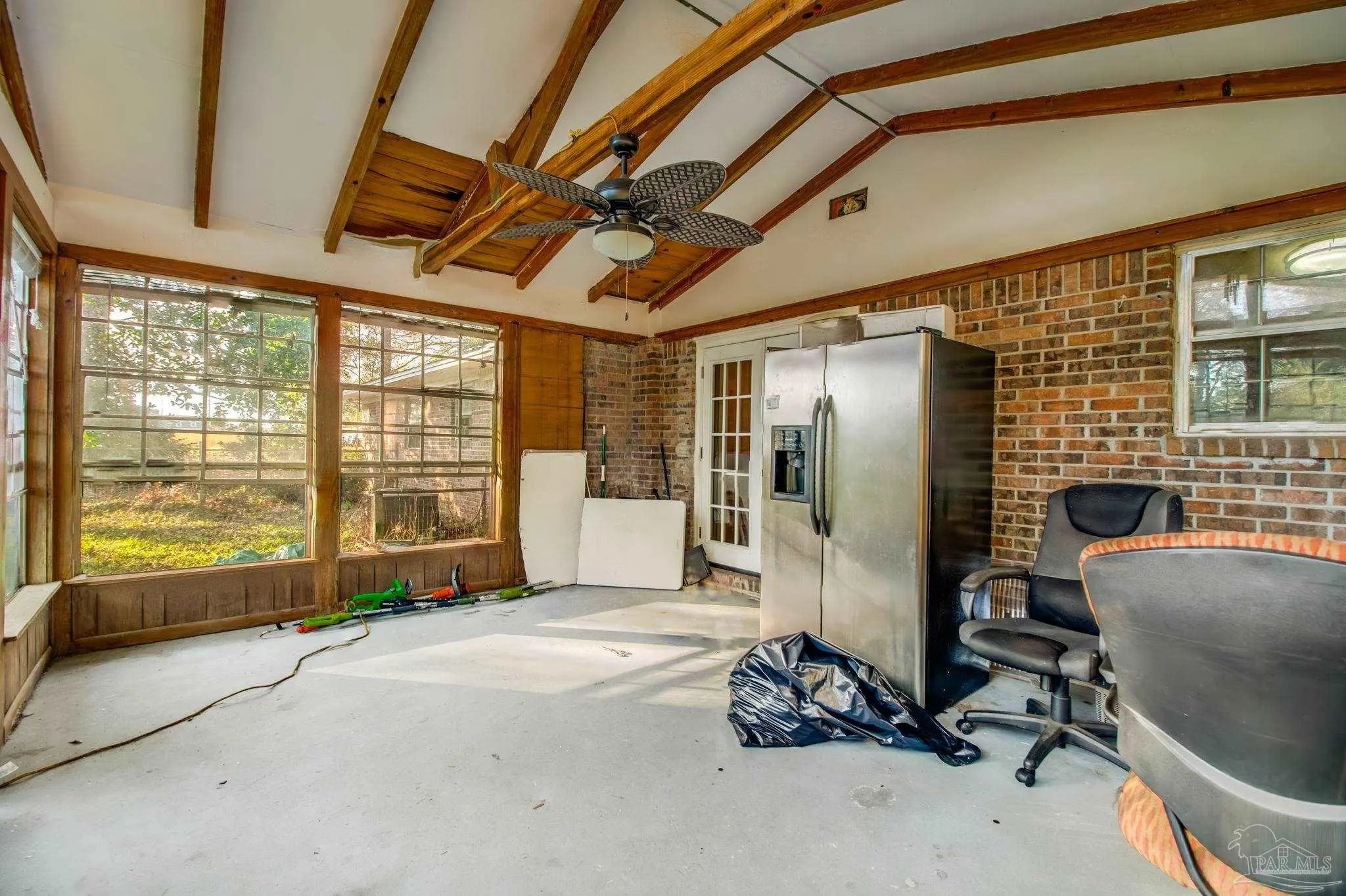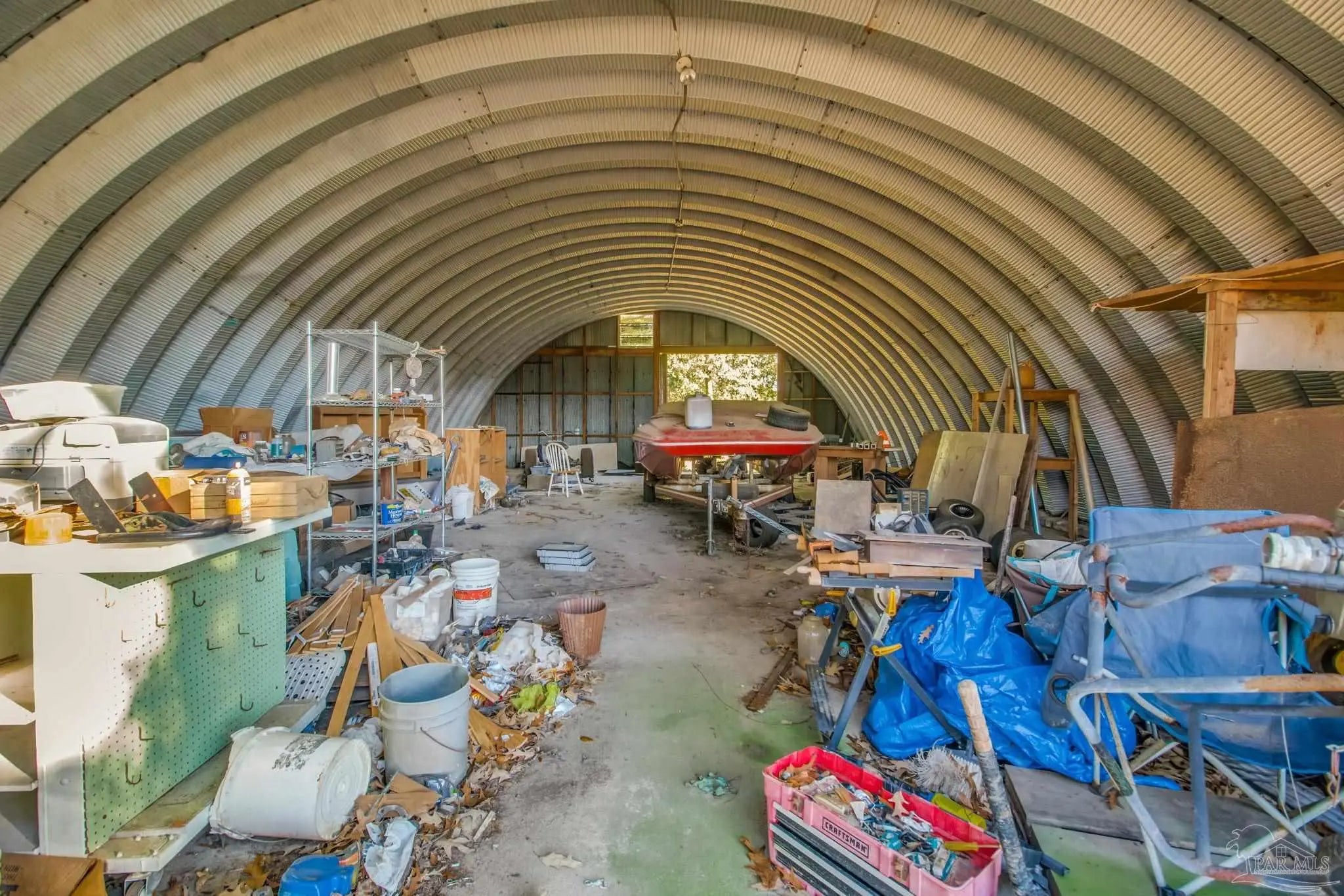 Rare opportunity. Four acres this close to the city does not come around often, and at $350,000 it is expected to move quickly. This property delivers the space and flexibility buyers are searching for right now. A solid all-brick home offers 3 bedrooms, 2 bathrooms, formal living and dining rooms, a den with fireplace, a sunroom, and an attached double garage. The layout is comfortable, functional, and ready for its next chapter. Beyond the main home, the value multiplies. A detached barn and garage has been converted to an upstairs one-bedroom, one-bath apartment currently generating approximately $750 per month including utilities, with a workshop below. A large Quonset hut provides serious storage for boats, vehicles, equipment, or hobbies. There is room for horses, livestock, and future expansion. The land itself is a standout. Mature pecan trees, young blueberry bushes, a Japanese plum tree, mandarin orange tree, and sago palms are already established, along with native vegetation like beauty berry bushes and blackberry vines. A full 50-amp RV hookup with water, power, and septic is in place, and a solar panel array powers the entire property. All of this while still being close to everyday conveniences. Located near the Navy Federal complex, less than 20 minutes to downtown Pensacola, about 30 minutes to Perdido Key, 35 minutes to Pensacola Beach, and under an hour to Gulf Shores. This is the kind of acreage buyers wait years to find, close enough to everything yet private and usable. Property is being sold as is. Schedule your showing promptly, opportunities like this do not last.