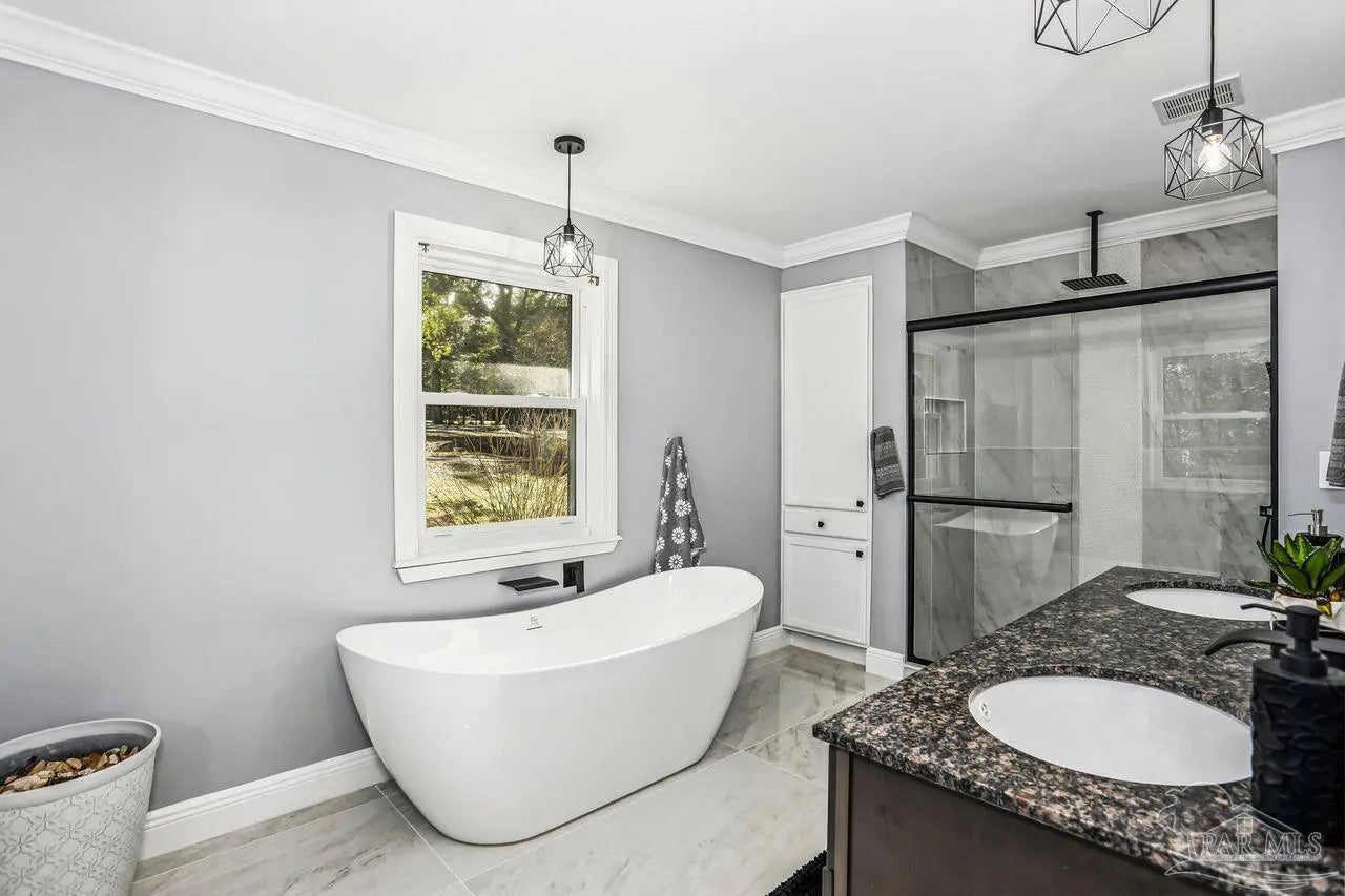 Welcome to this thoughtfully renovated 3 bedroom 3 bath home offering 2,112 square feet of comfortable living space, perfectly set on 1.7 acres along Pond Creek. This property blends modern updates with peaceful natural surroundings, creating an ideal retreat for everyday living. Inside you'll find spacious light-filled living areas designed for both relaxation and entertaining. The updated kitchen features tasteful finishes, while the well-proportioned bedrooms provide comfort and privacy for family and guests. With 3 full baths, the layout is both functional and flexible. Step outside to the large covered screened porch and oversized deck to enjoy the serene creek frontage and expansive acreage. This setting offers a rare combination of privacy and natural beauty, all while being move-in ready. If your seeking tranquility or charming country living but close to amenities, this renovated home delivers space, style and comes in one exceptional package. Located close to I-10, schools, shopping, restaurants and military bases.