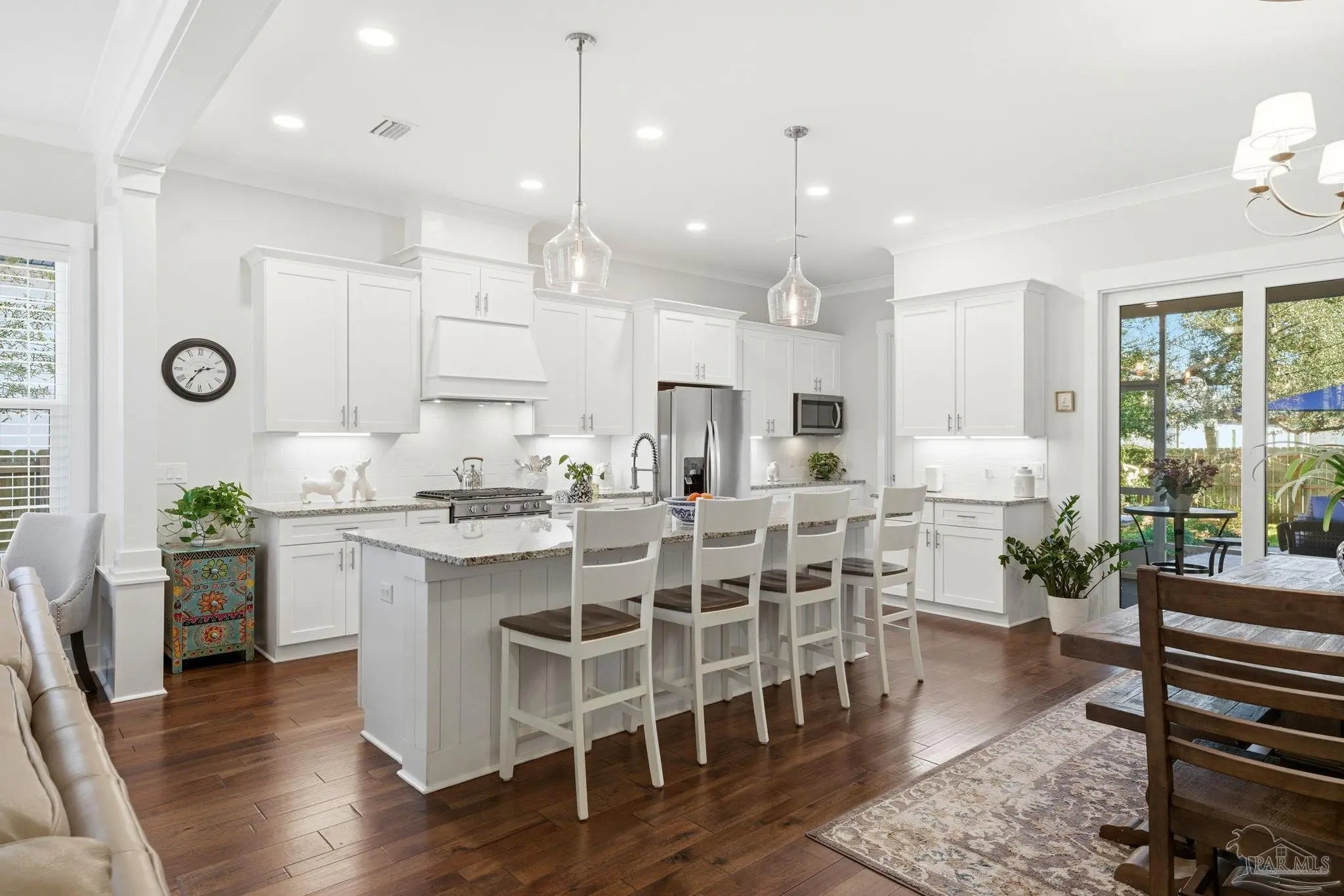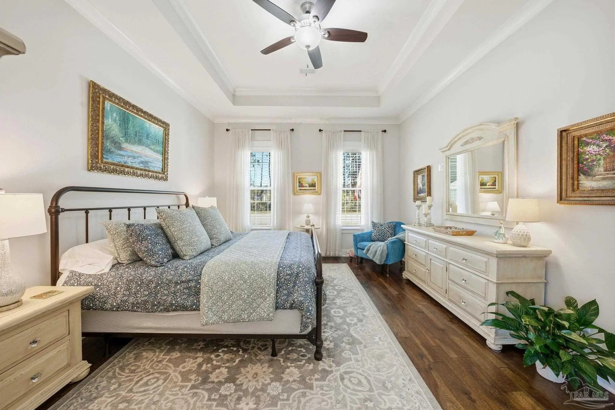 Open House Saturday 1/24 from 11:00-1:00. Welcome to this beautiful 2023 built home offering 2,738 sq ft of well-designed living space with 4 bedrooms, 3 bathrooms, a 2-car garage, and screened-in porch, all in a prime location, near Eglin AFB and Destin beaches. The covered front porch is a perfect place to relax with unobstructed views of the community park across the street. As you enter, you are greeted by an open floor plan with custom moldings and 10 ft ceilings. The kitchen is both stylish and highly functional, featuring a large walk-in pantry, gas stove and generous workspace—perfect for everyday living and hosting gatherings. Off the dining area, a 12ft sliding glass door leads to the screened in porch which is already plumbed for an outdoor kitchen. The backyard has been transformed into a Zen-like oasis with custom paver patio and elegant landscaping. The first-floor primary suite serves as a private sanctuary, highlighted by a spacious spa-like bathroom with a soaking tub and curb less shower, along with a large walk-in closet offering ample storage. Upstairs, a loft perfectly suited for a playroom or second living space has access to two generously sized bedrooms and a full bath. Ideally located just down the street from a community pool and scenic nature trail, this exceptional home blends modern construction, upscale upgrades, and a prime location near beaches, military bases, shopping, and dining. Move-in ready and designed for comfort and style, it’s a rare opportunity not to be missed.